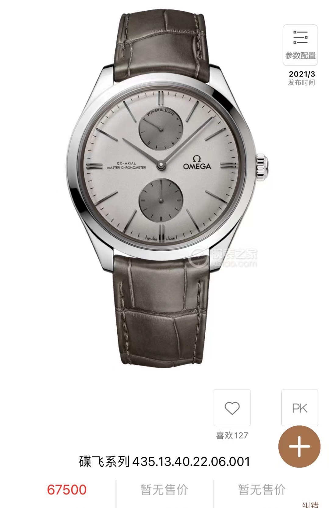 全套欧米茄/碟飞系列435.13.40.22.06.001男士手动机械腕表 新款蝶飞 白色表盘 背透机芯 搭配针扣 表径40mm 动力储备72小时 瑞士天文台认证 采用精钢材质打造 公价67500 现货好价
