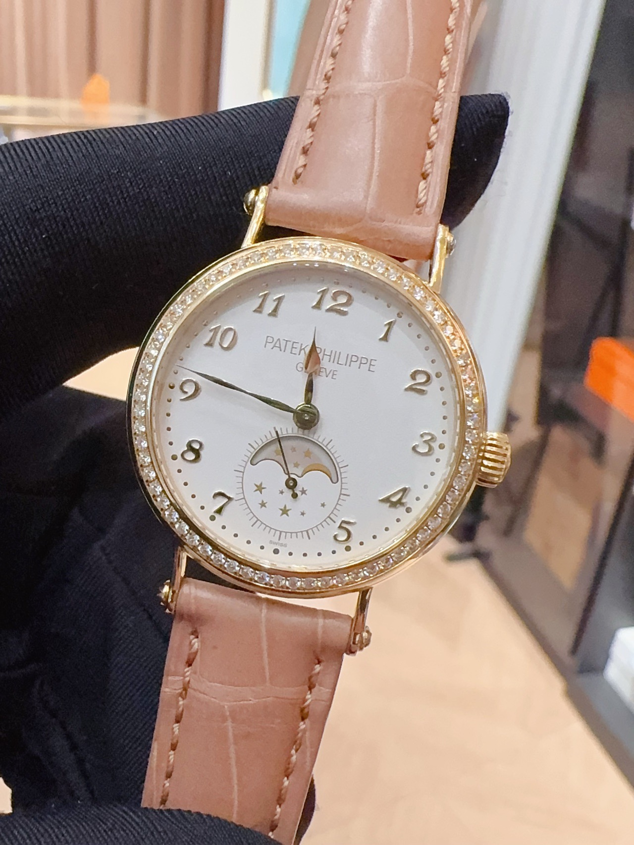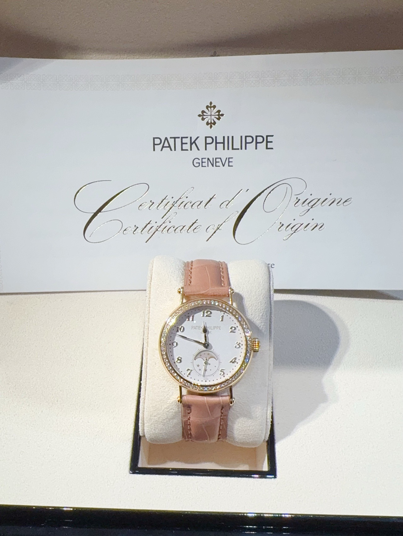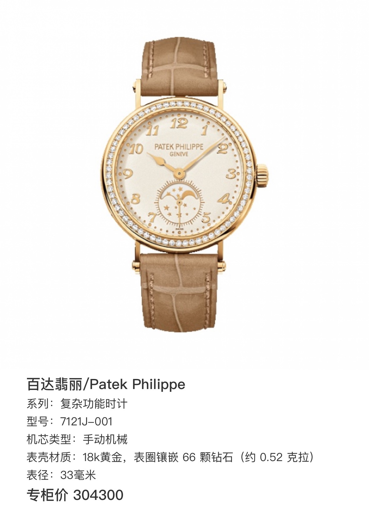 百达翡丽复杂功能时计7121J-001,33mm手动机械,18k黄金材质,表圈镶嵌66颗钻石,全套完美品相,专柜价304300,