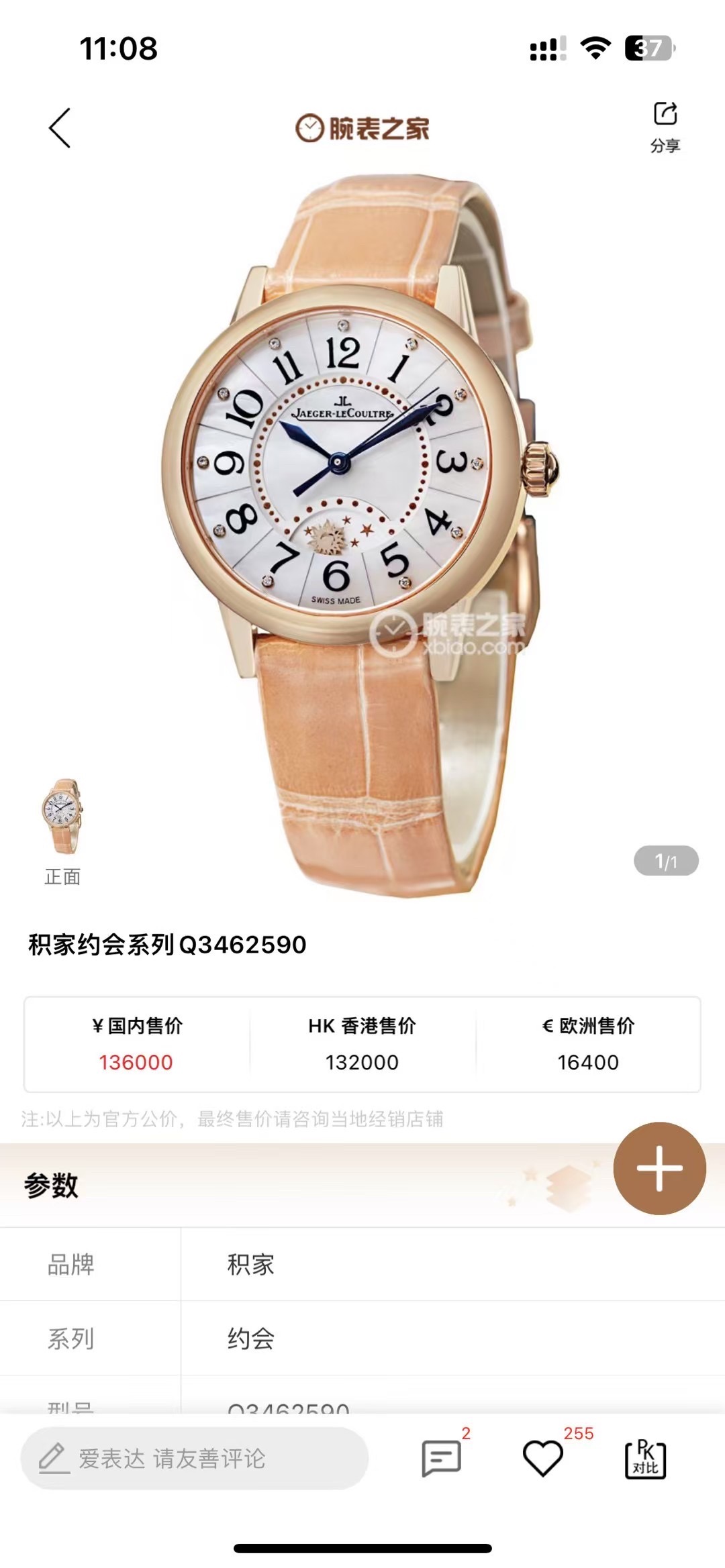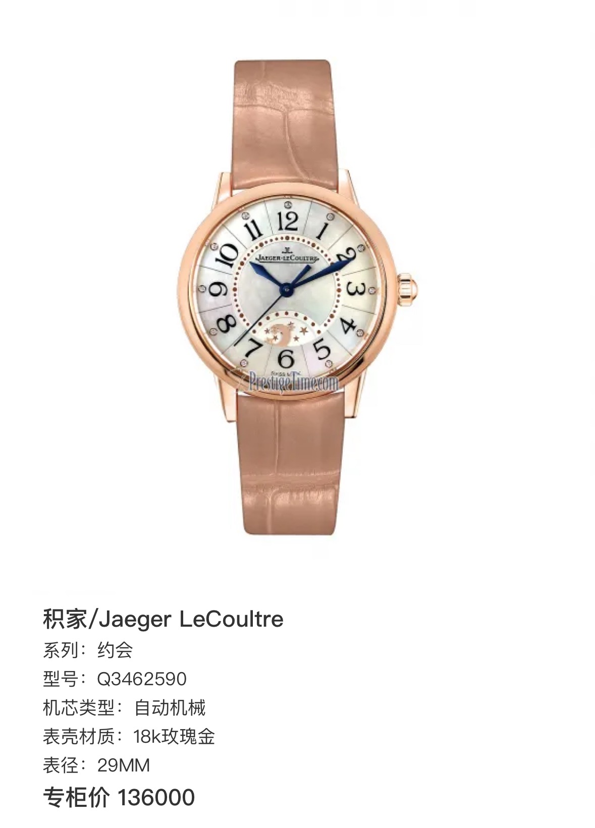 积家/Jaeger LeCoultre 约会 Q3462590 自动机械 18k玫瑰金 29MM 专柜价136000~