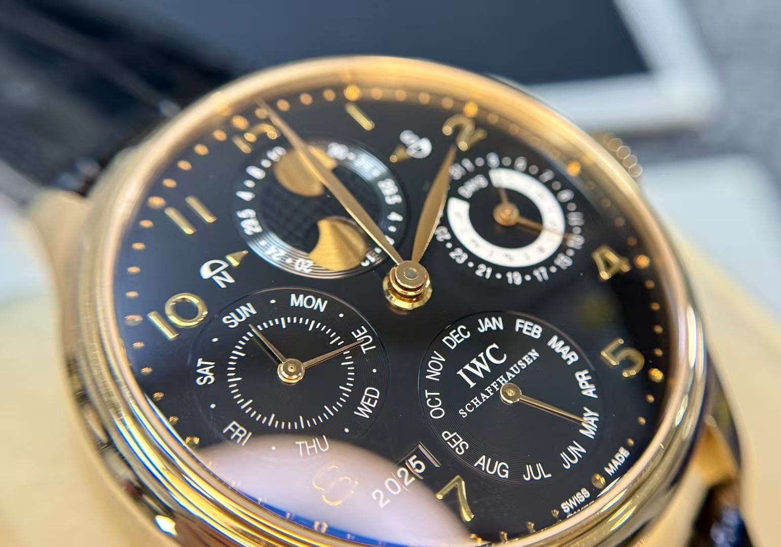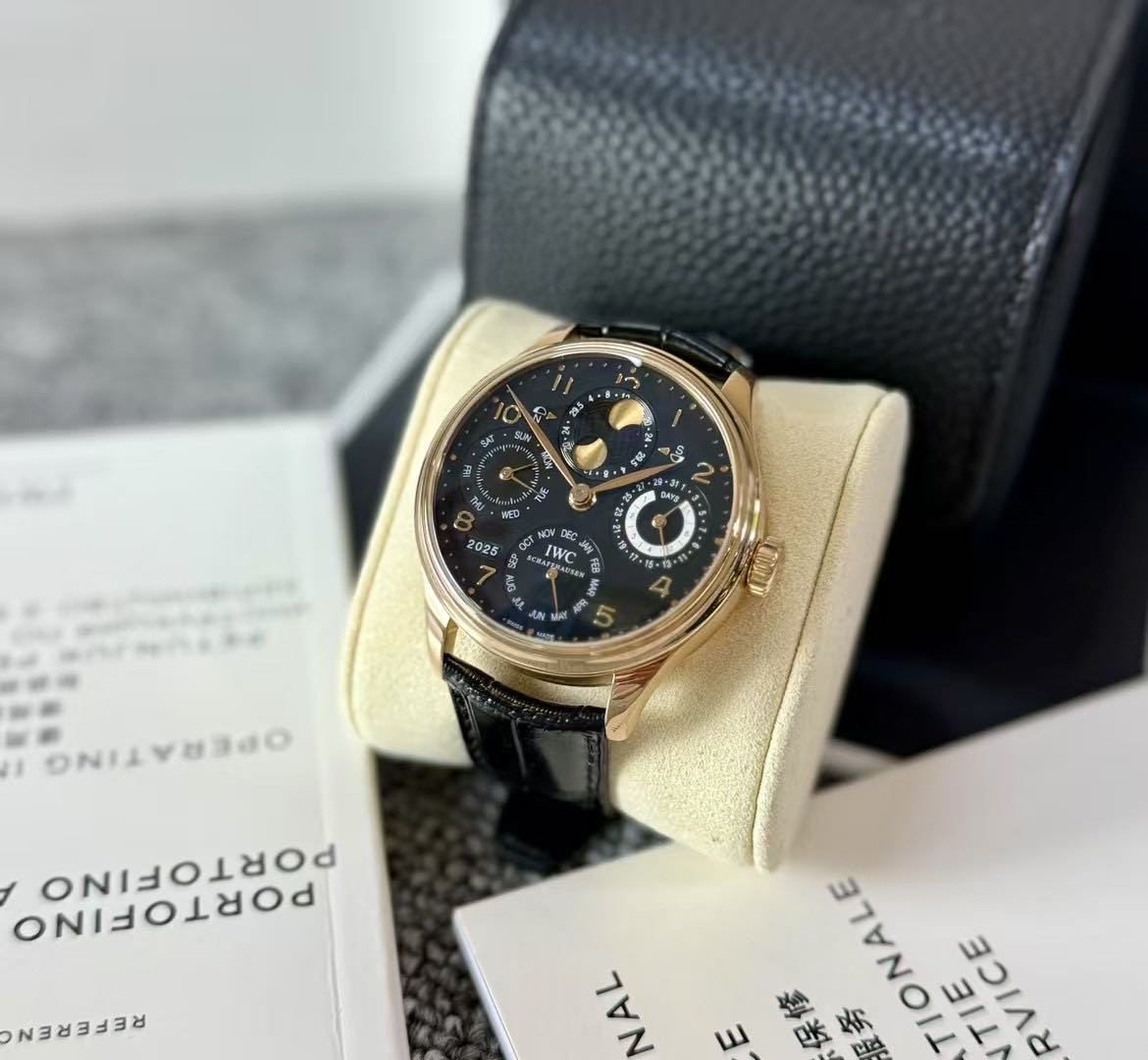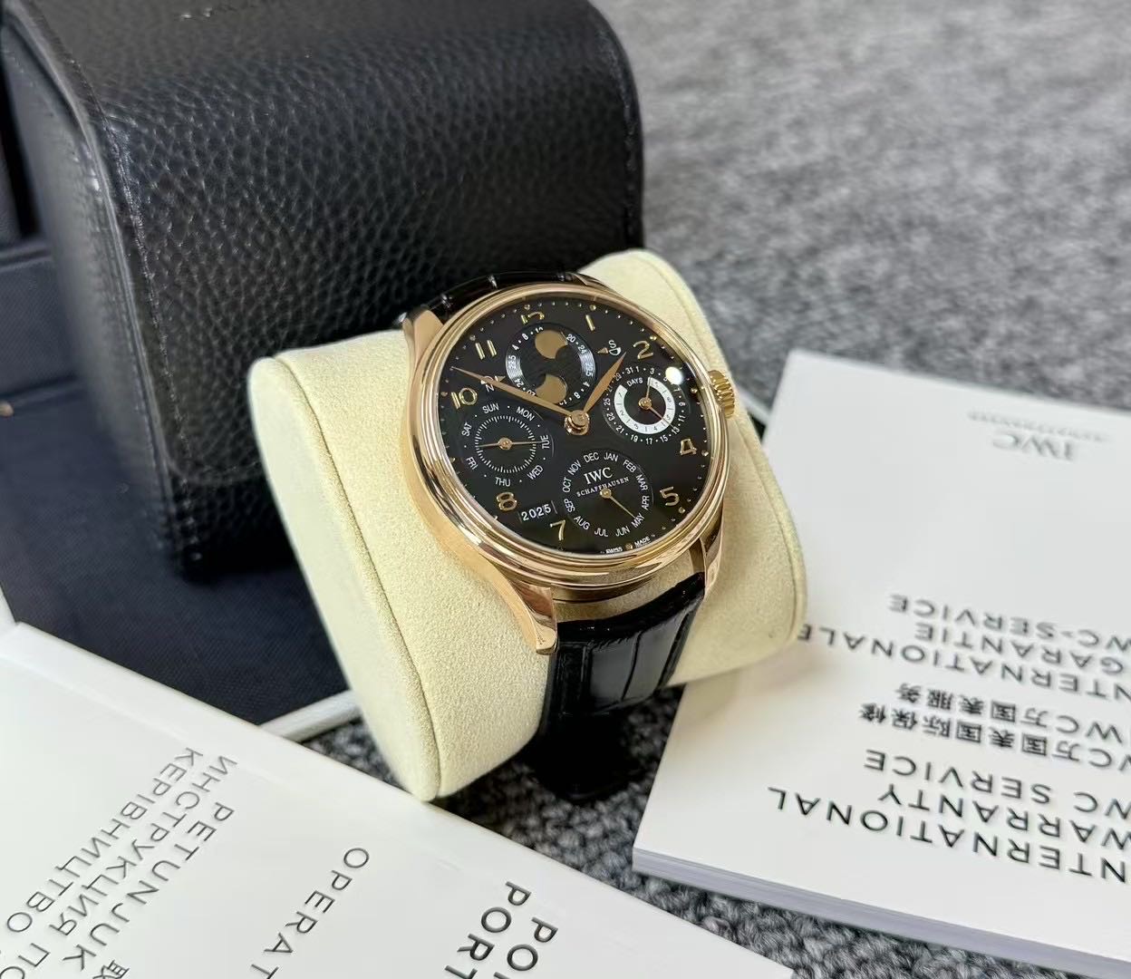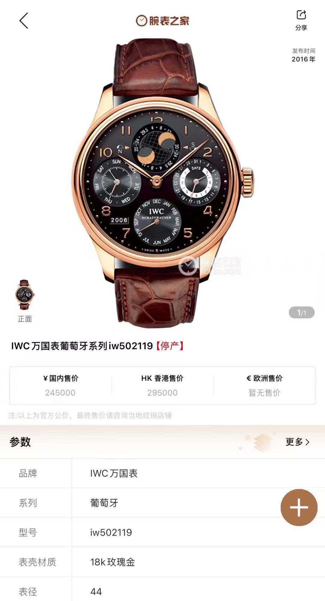 公价24.5万,表径44mm,单表,18K玫瑰金材质表壳 整体重量159g,顶级自产51614机芯 日历 星期 月份 年历 万年历 动储显示功能。