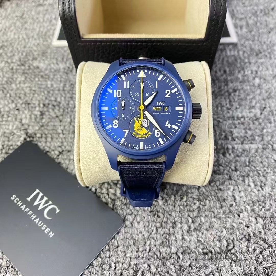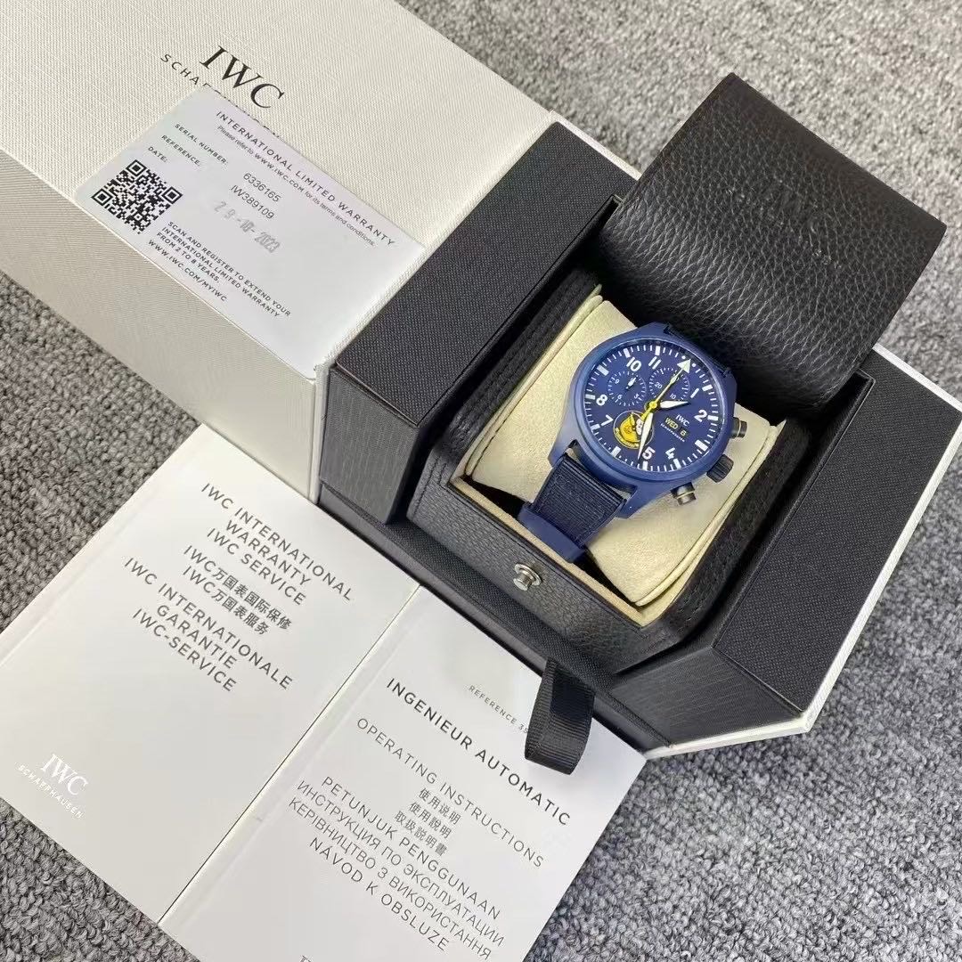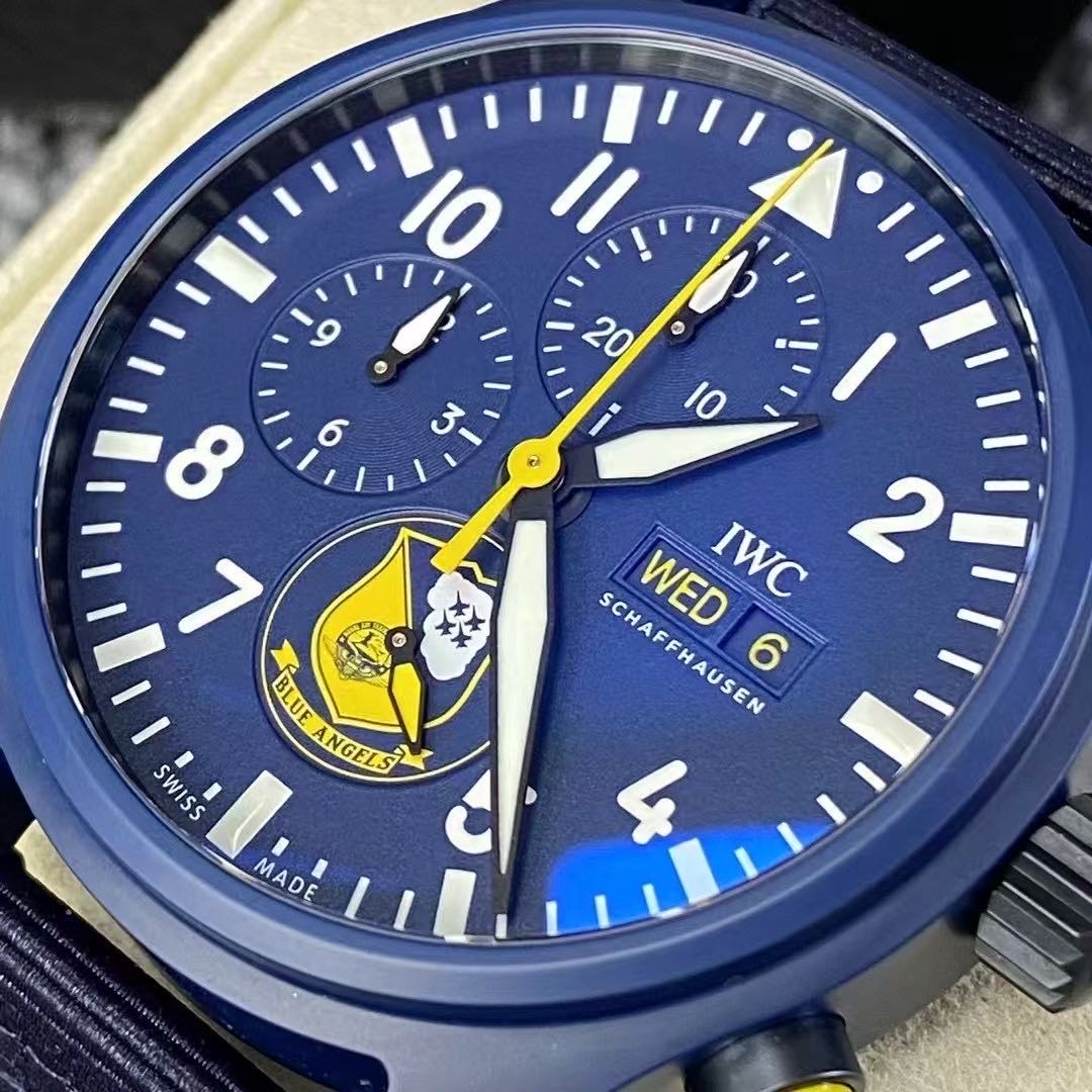公价9.16万,表径44.5mm,全套在保(2022年购买)蓝陶瓷材质表壳,表款盘面同样使用蓝色陶瓷制作,并加以黄色元素点缀,经典驾驶舱仪表设计,秒针盘飞行中队徽章设计,5级钛金属底盖上镌刻有4机编队及蓝天使花体标识,搭载万国自产69380机芯。