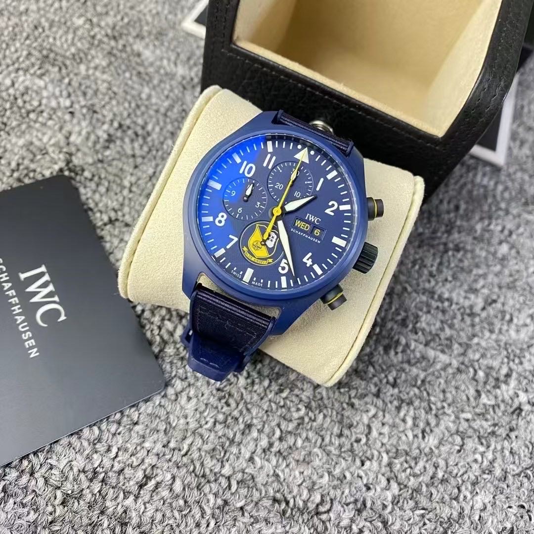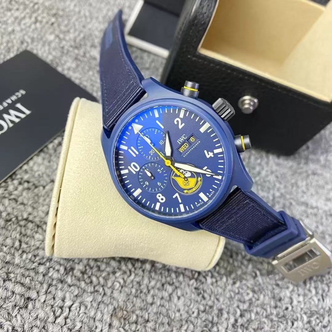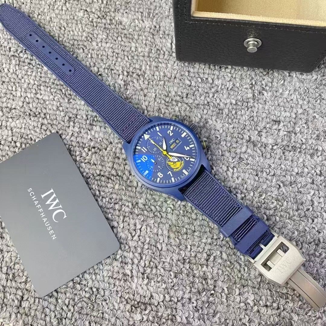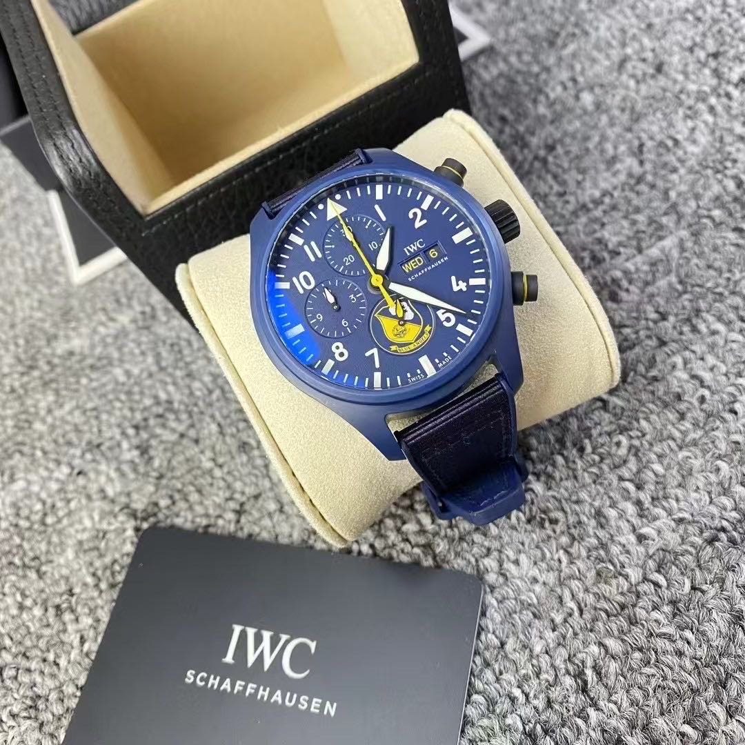 公价9.16万,表径44.5mm,全套在保(2022年购买)蓝陶瓷材质表壳,表款盘面同样使用蓝色陶瓷制作,并加以黄色元素点缀,经典驾驶舱仪表设计,秒针盘飞行中队徽章设计,5级钛金属底盖上镌刻有4机编队及蓝天使花体标识,搭载万国自产69380机芯。