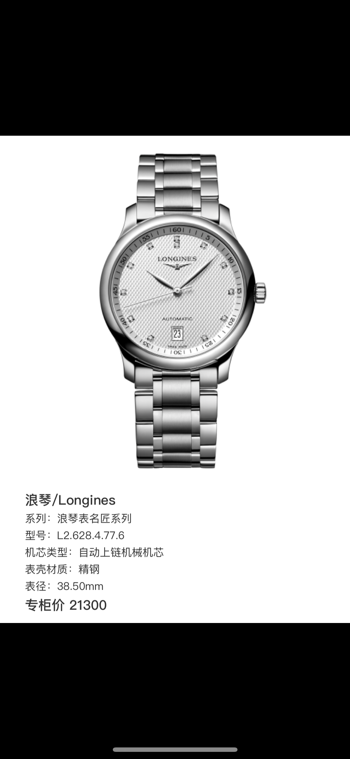 全套99成色浪琴/Longines系列:浪琴表名匠系列型号:L2.628.4.77.6