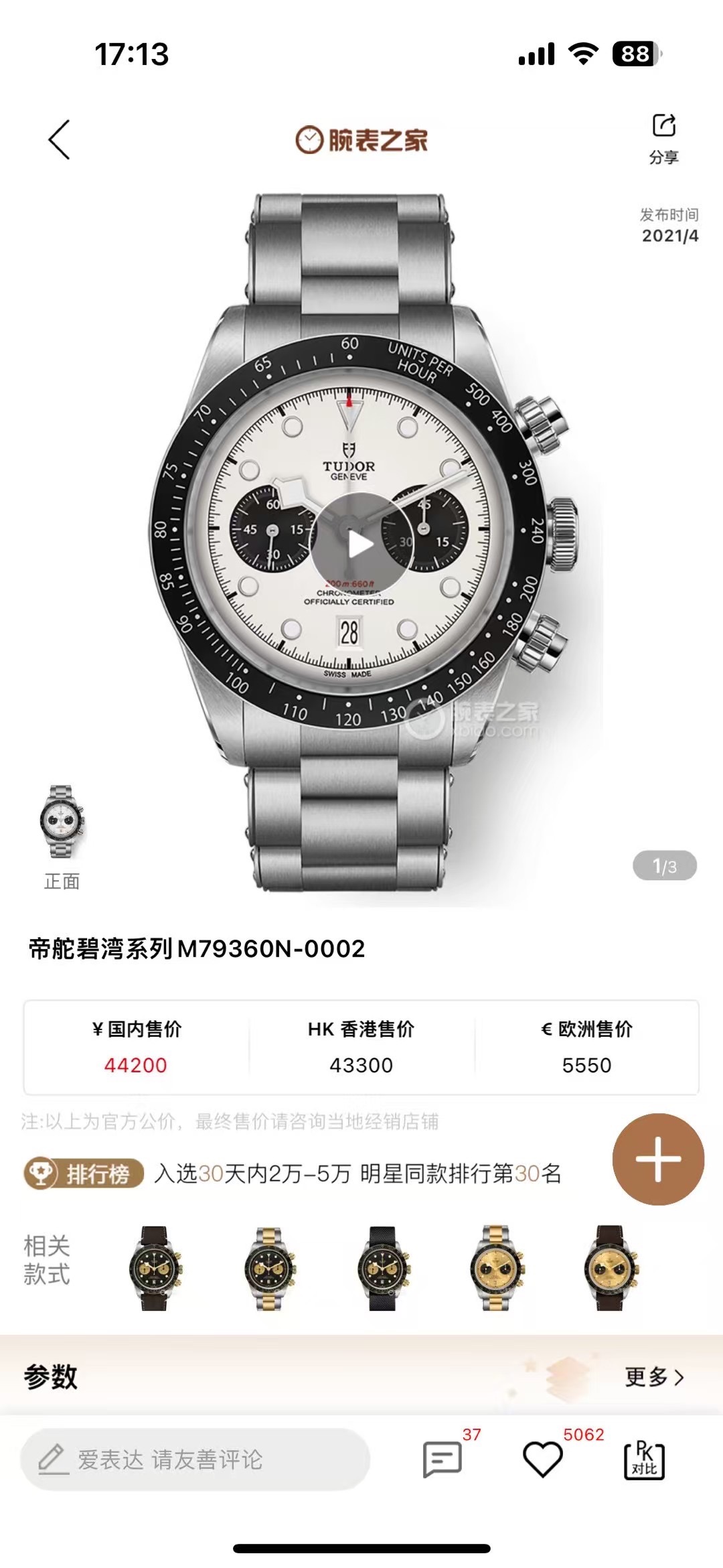 帝舵/Tudor 碧湾计时型 m79360n-0002 自动上链 钢表壳 41毫米 2025年全套未使用品,专柜价 44200,深圳现货秒发,专柜少一分不卖,我这折扣美丽~