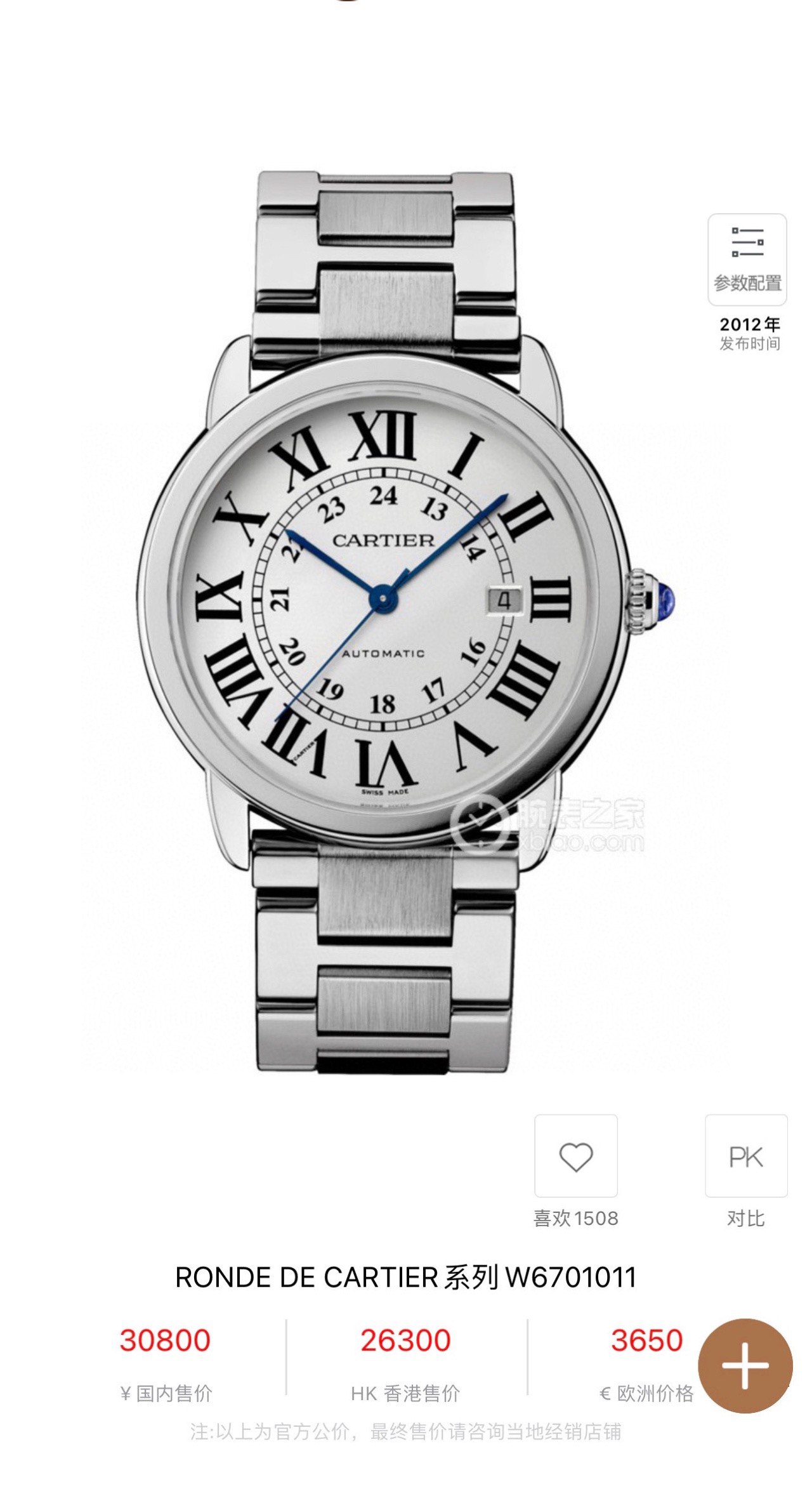 卡地亚RONDE SOLOW6701011机械男性