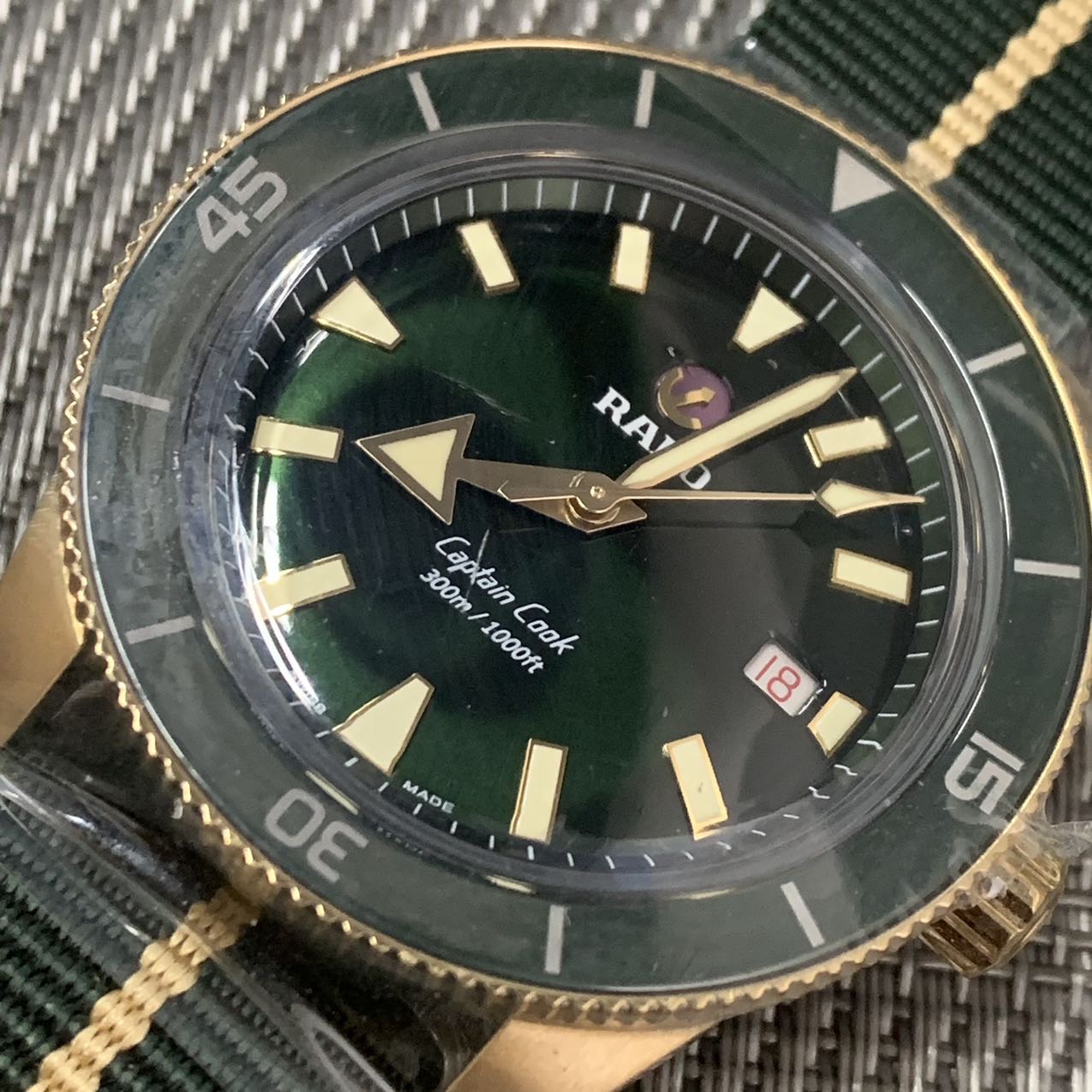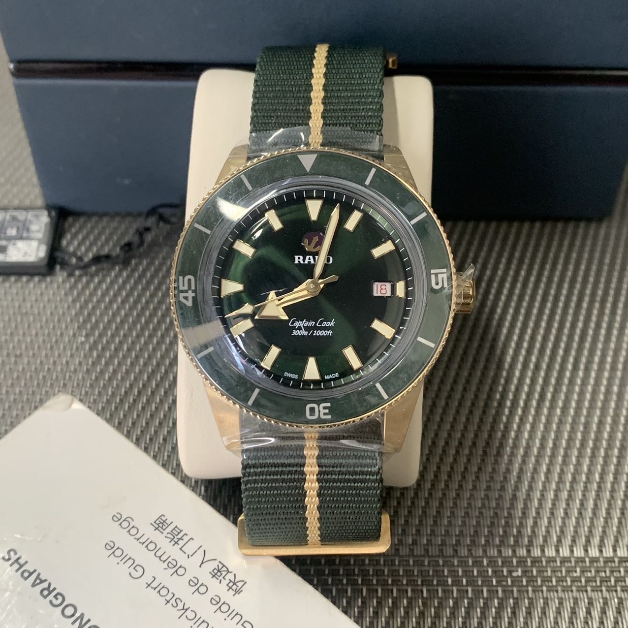 雷达传承系列-库克船长,公价2.33万,表径42mm,国行全新全套未使用品,青铜材质表壳,绿色表盘,旋转陶瓷表圈,动态logo船锚,外圈与泡泡蓝宝石表镜陷入式设计,最佳热门款,结合所有热门亮点于一身,潜水、复古、外观帅气时尚。