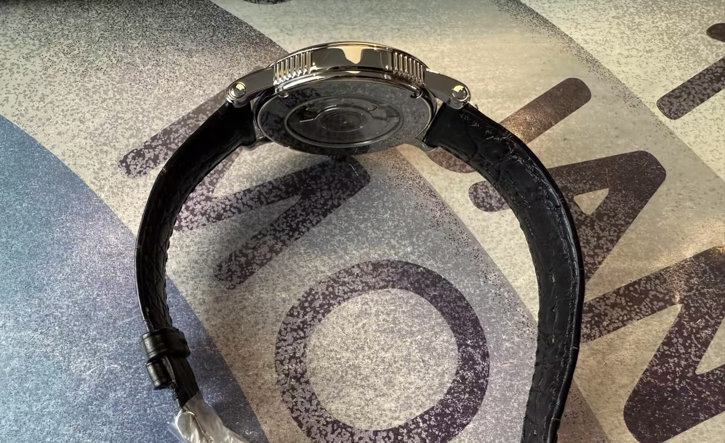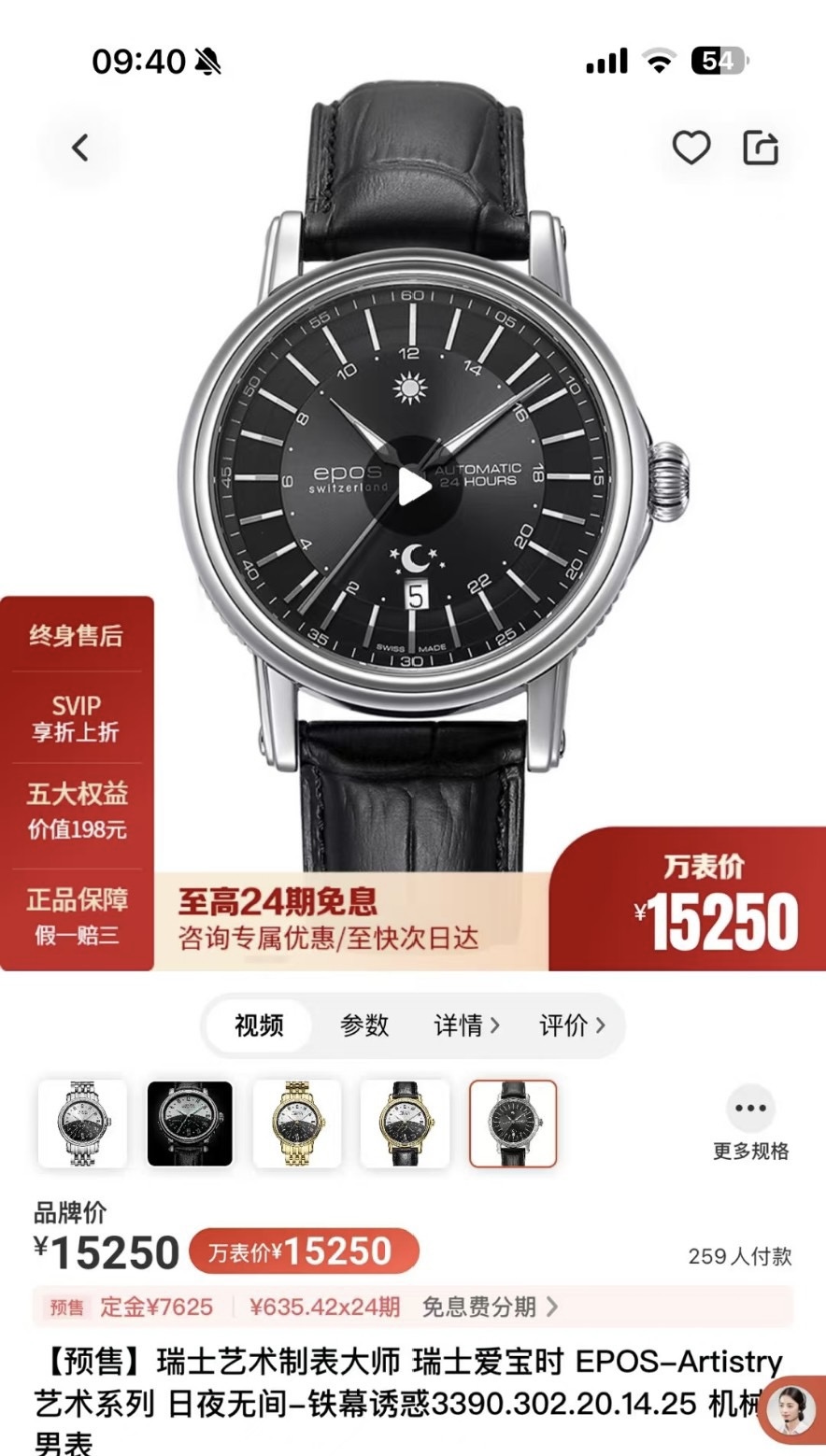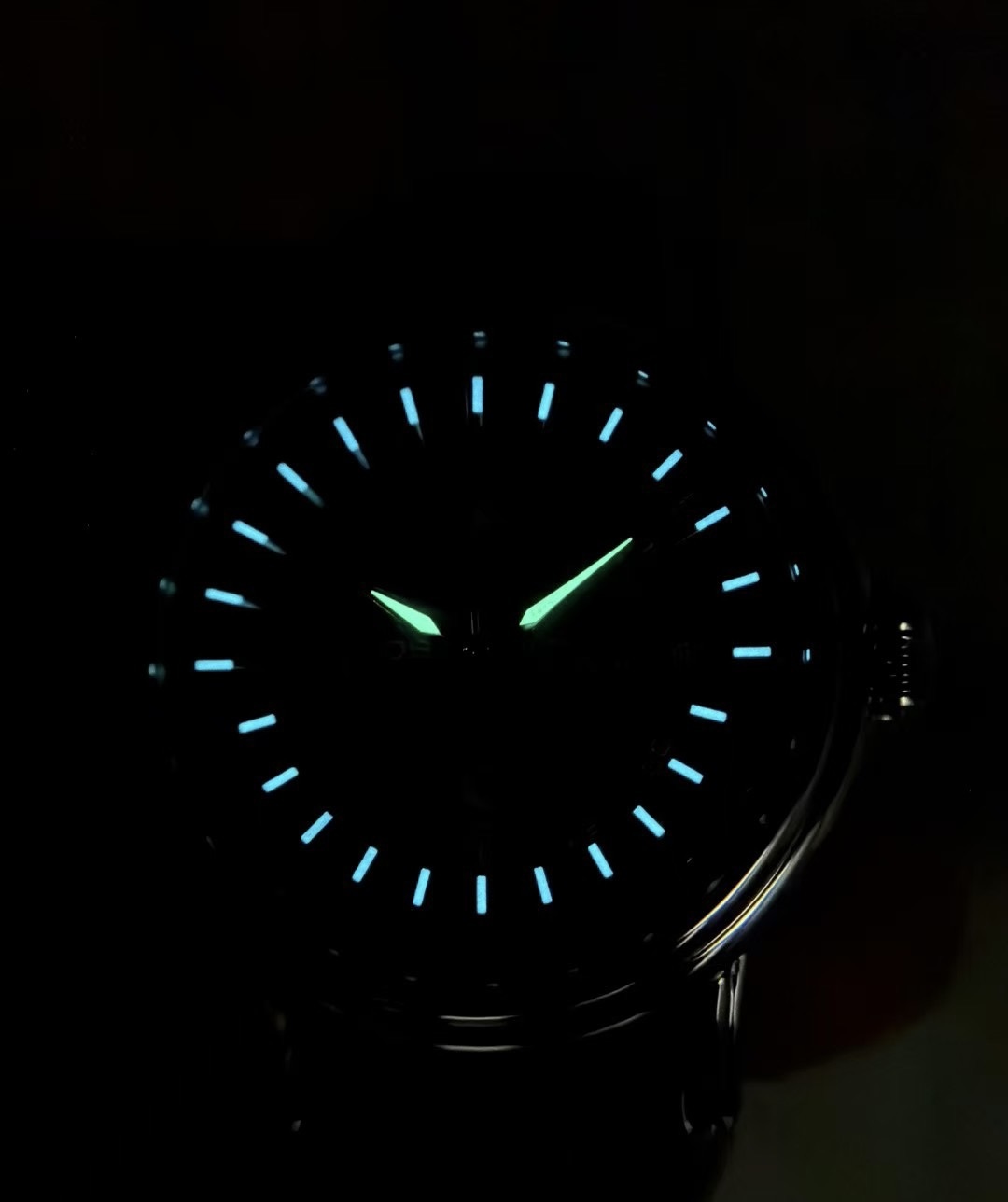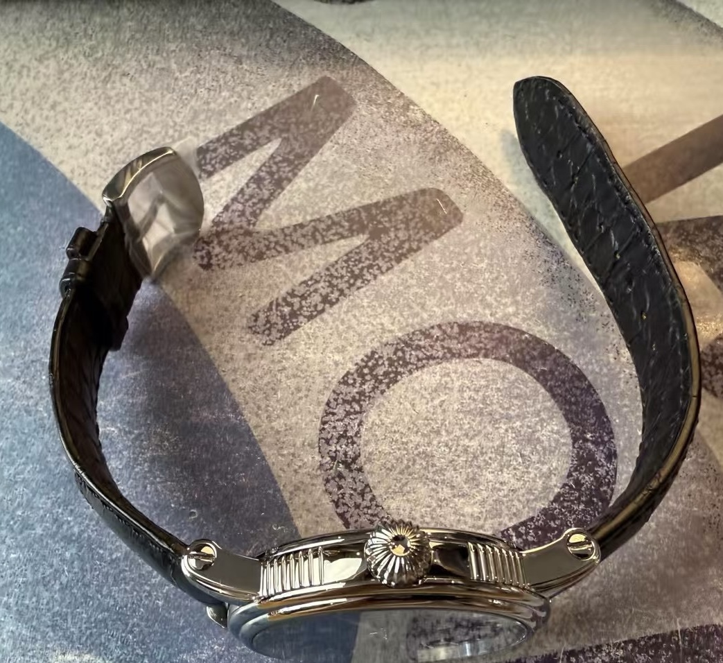 爱宝时日夜无间铁幕机械腕表,表径41毫米,厚9毫米,防眩光平面蓝宝石镜面,深灰色太阳纹盘面,24小时昼夜同显设计,条形刻度,宝剑式太妃指针,下方日历,推拉式洋葱表冠,搭载eta2892-a2机芯,走时天文台级别,近新成色,单表