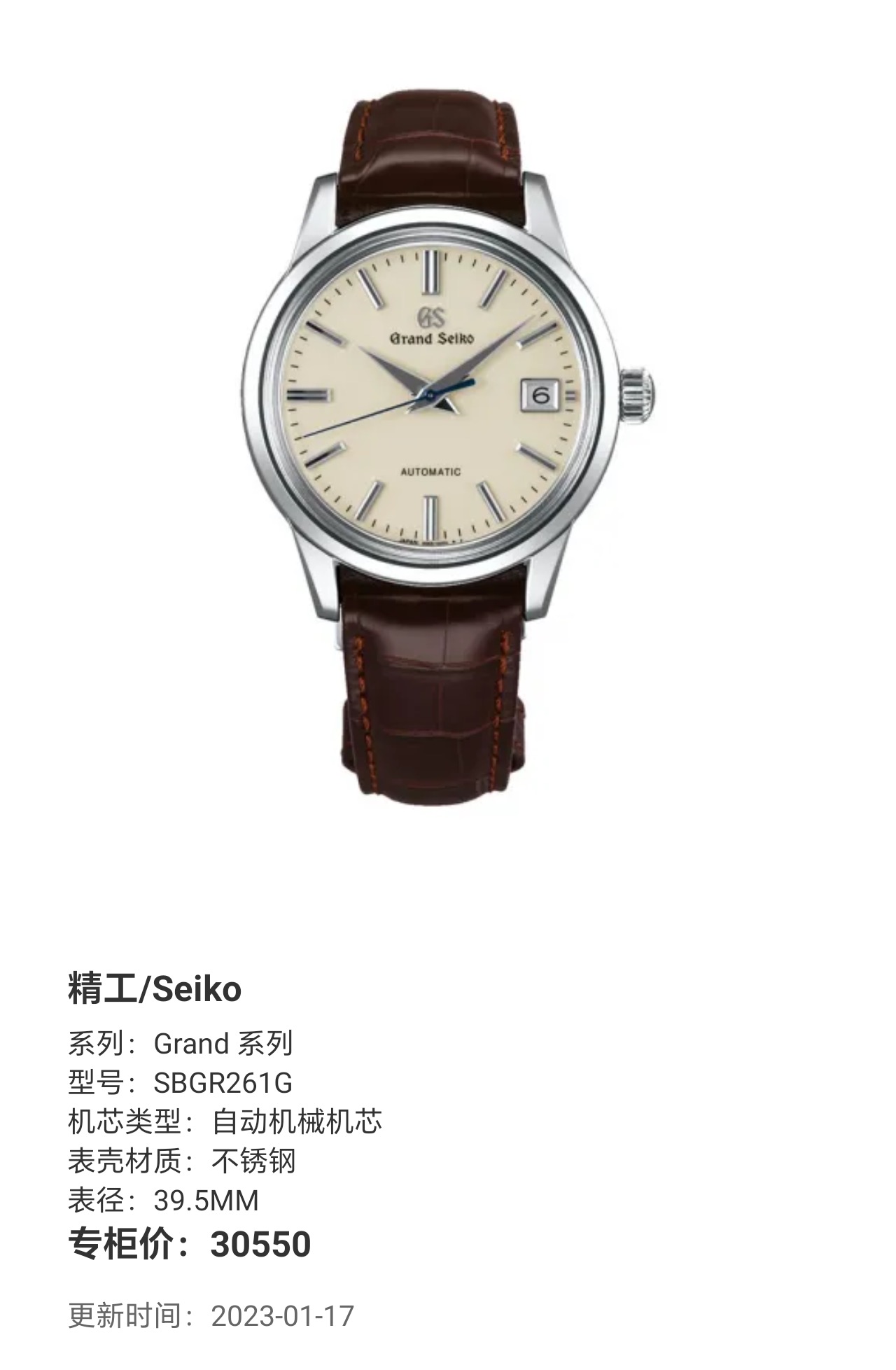 精工/Seiko Grand 系列 SBGR261G 自动机械机芯 不锈钢 39.5MM 专柜价30550,现货22年全套好价~