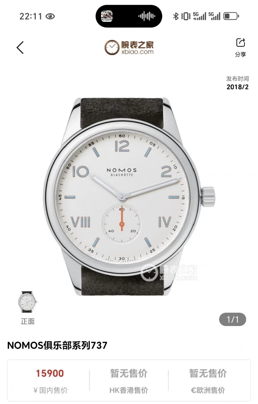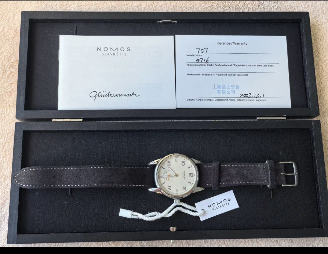 nomos club737系列机械男表,38.5mm表径,背透,手动机械,国行全套,22年12月保卡,工价15900