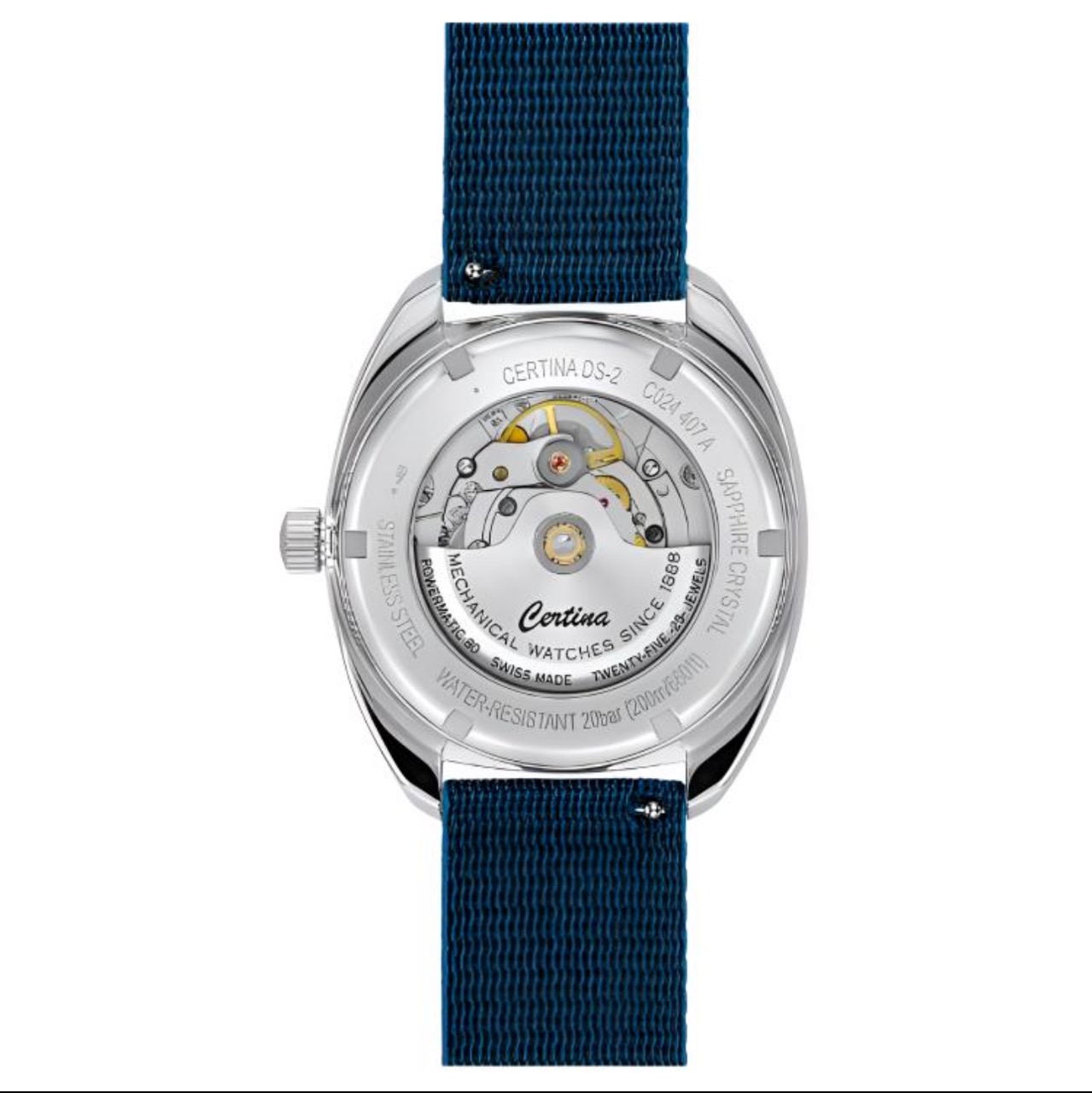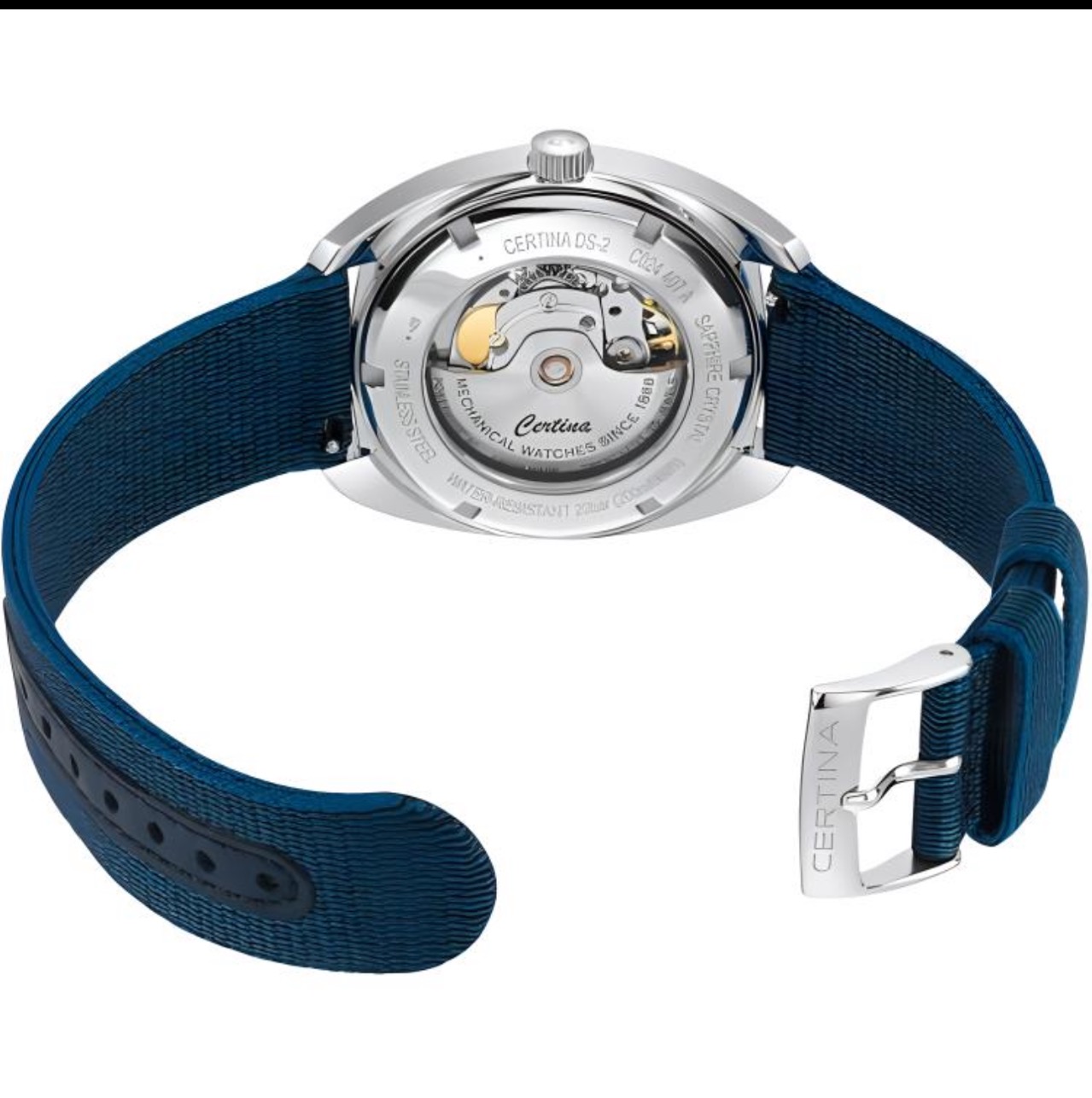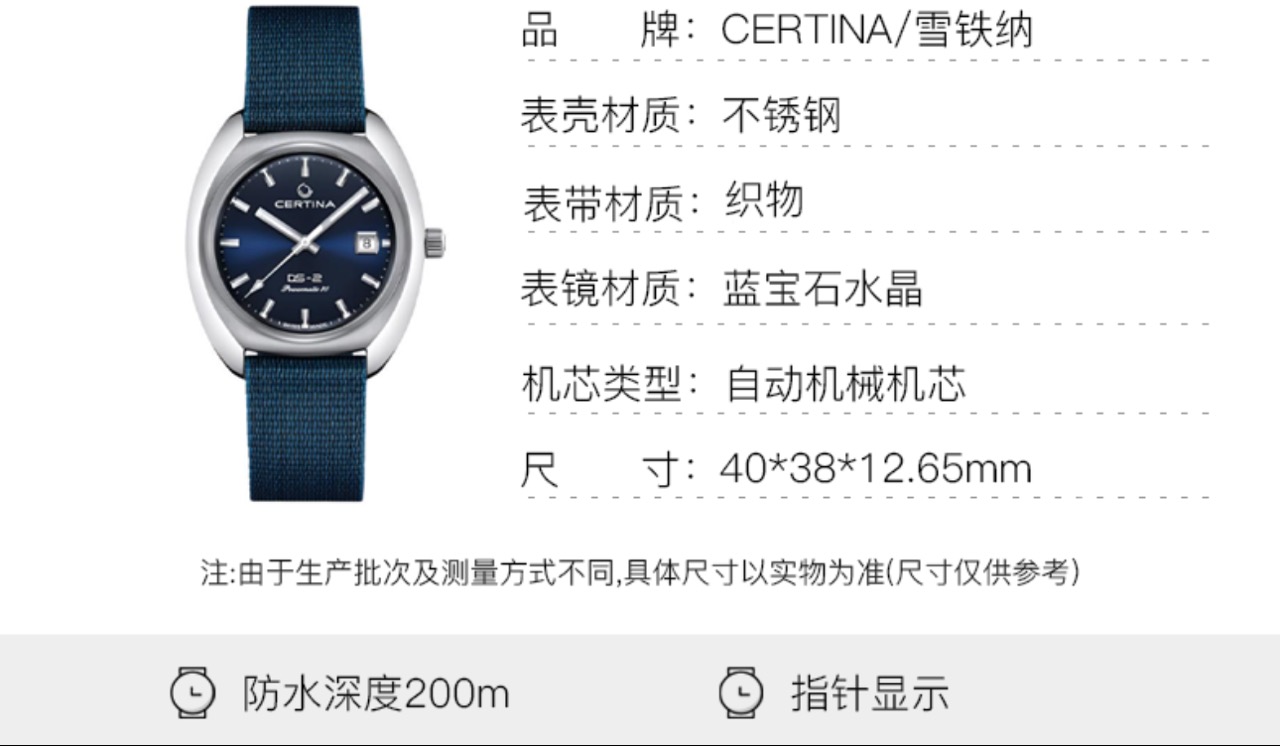 CERTINA雪铁纳DS2极速系列 C024.407.18.041.00自动机械机芯 防水200米 男表 瑞表 40*38mm 蓝色表盘 精钢表壳 织物表带 专柜售价7250 全新全套全国联保近期保卡