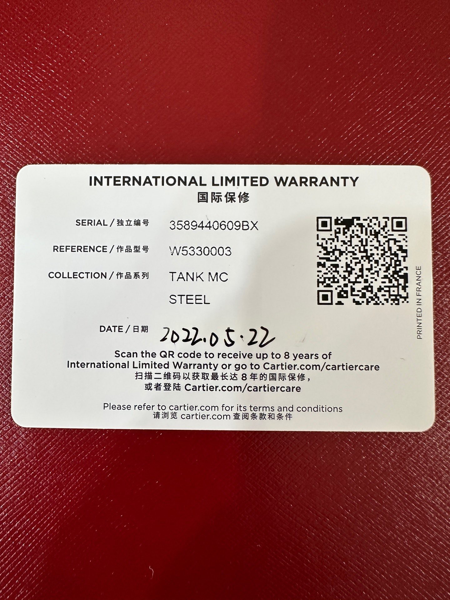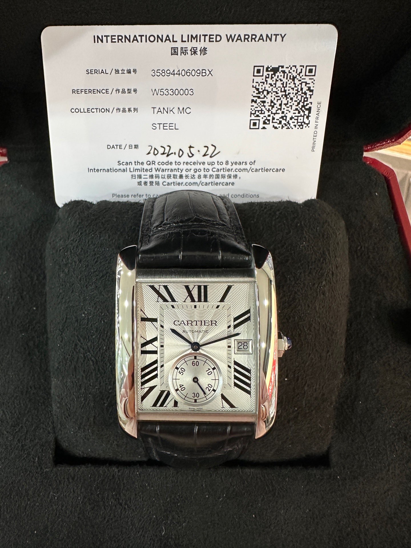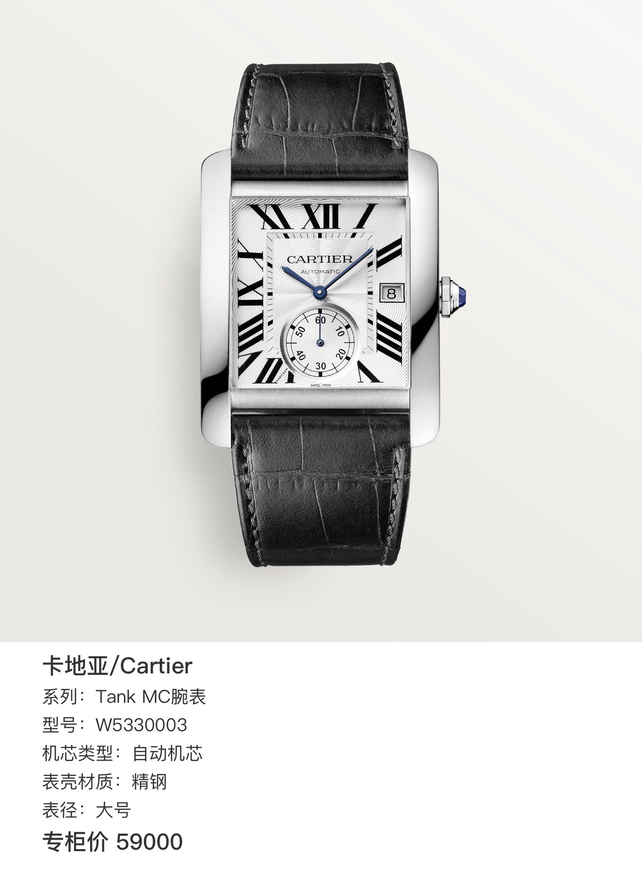 卡地亚/Cartier Tank MC腕表 W5330003 自动机芯 精钢 大号 专柜价59000 2022年全套 带专柜购物票据 现货好价!