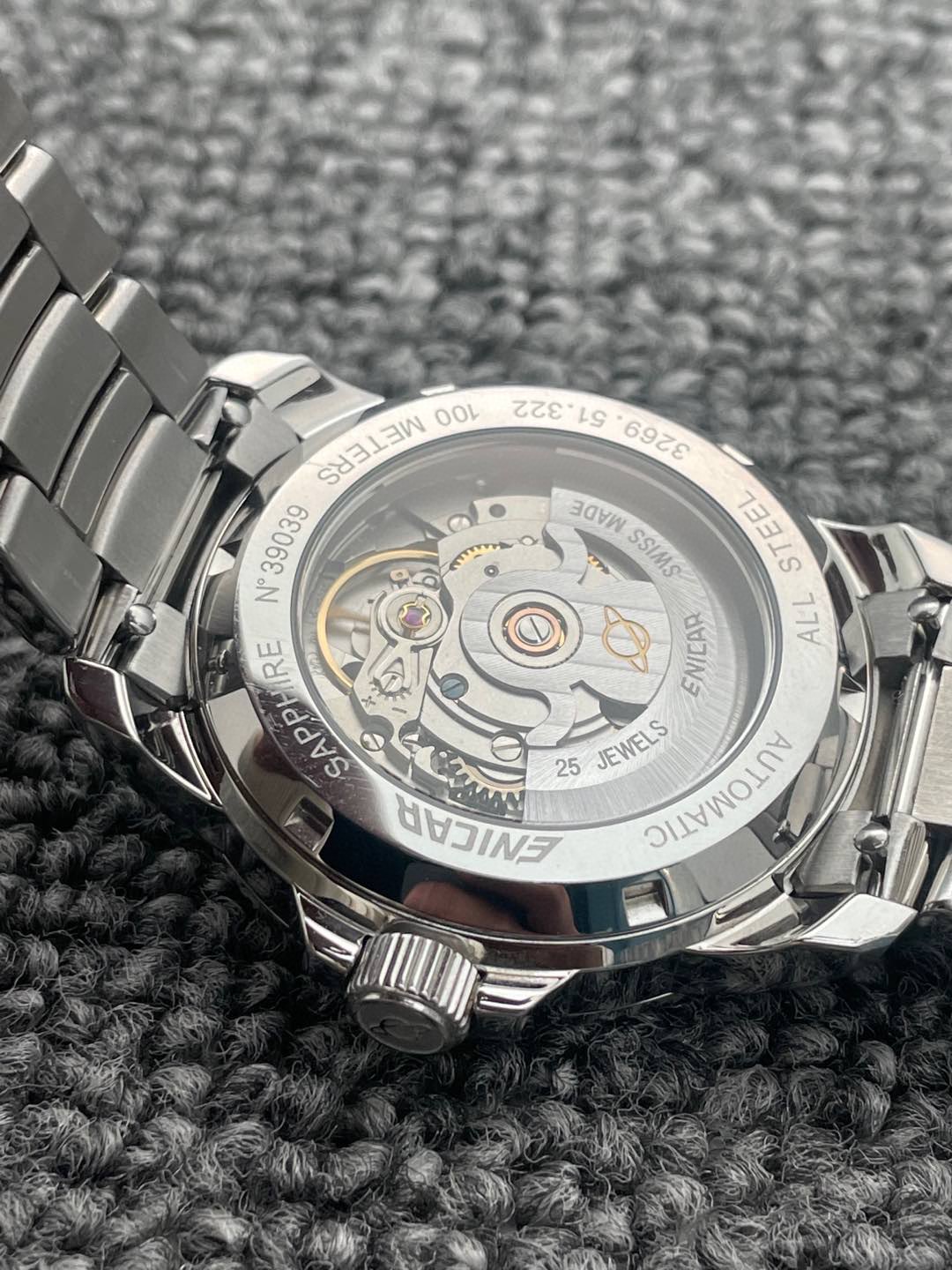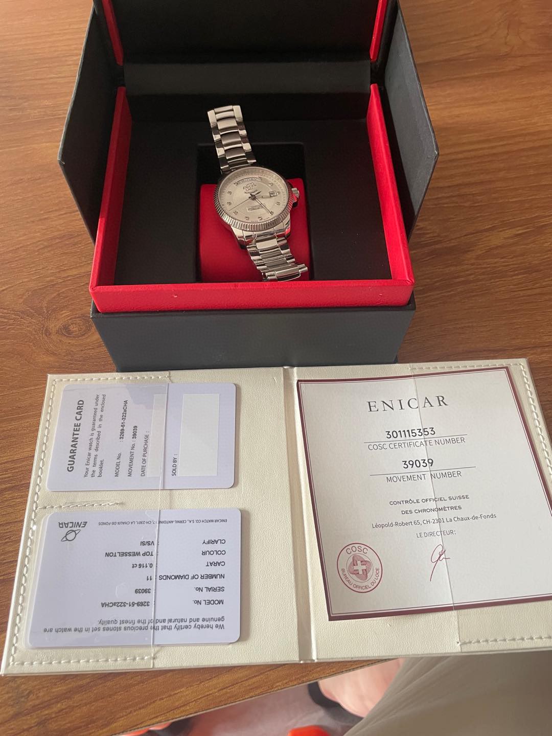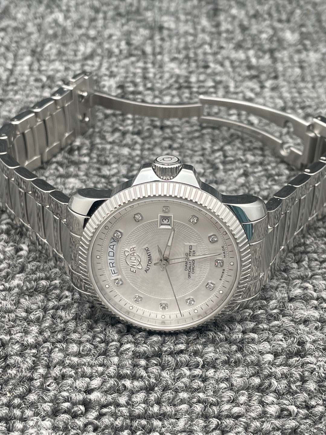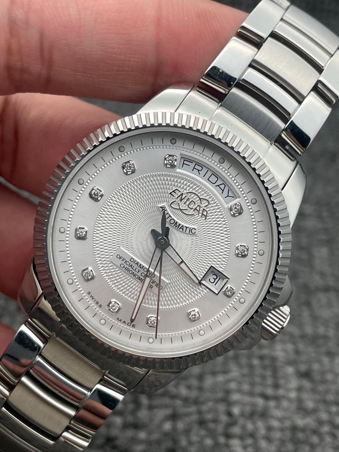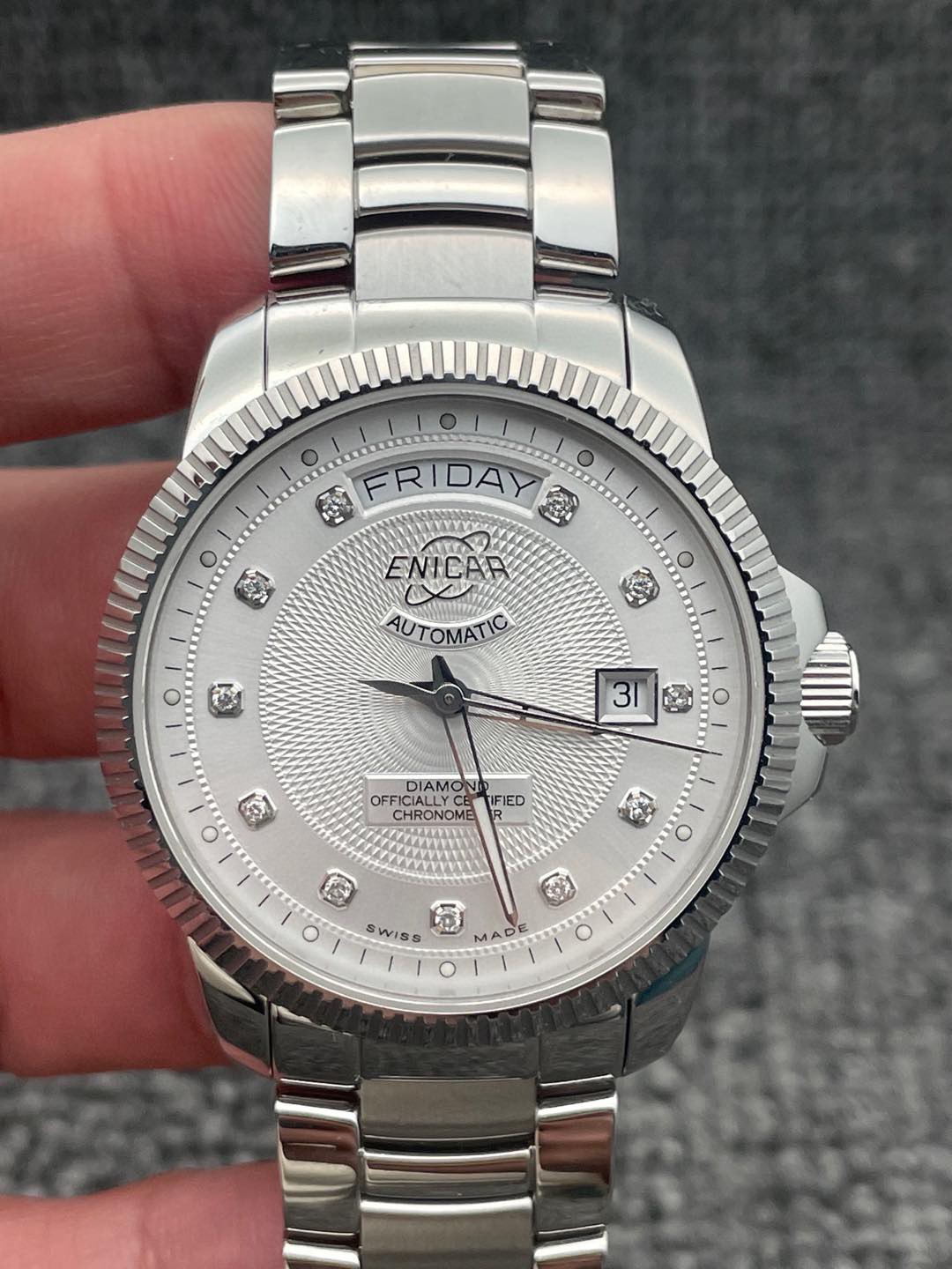 英纳格男士机械表。钻石刻度,天文台认证机芯。表径40附件盒子保卡。 品相97新。原价19450