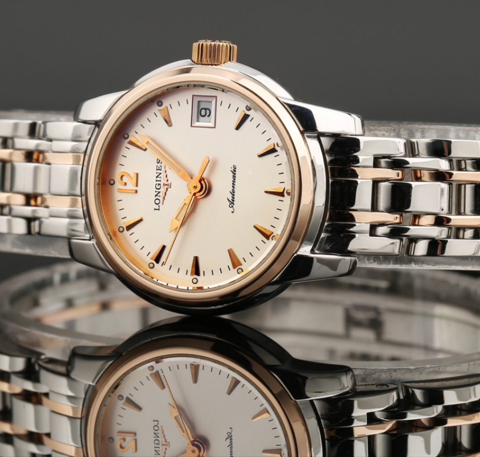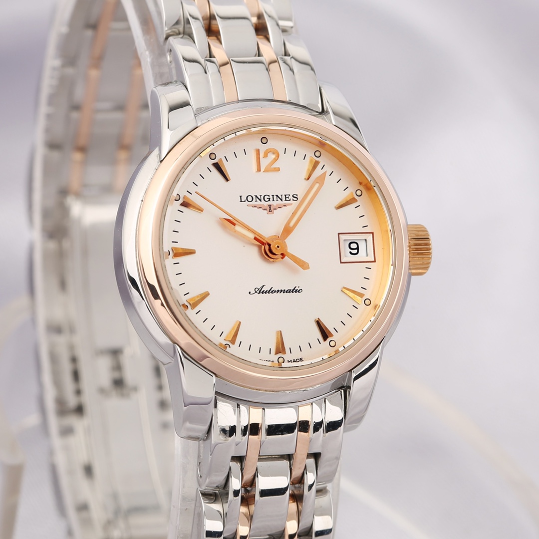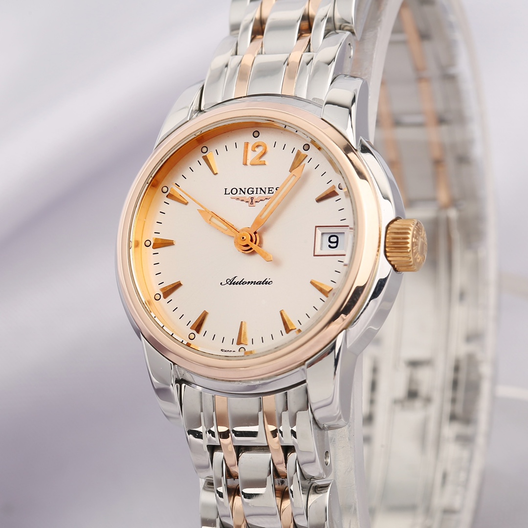 浪琴制表传统系列L2.263.5.72.7 自动机械女士腕表,精钢间金材质,26mm表径,日期显示功能,公价19100,现好价