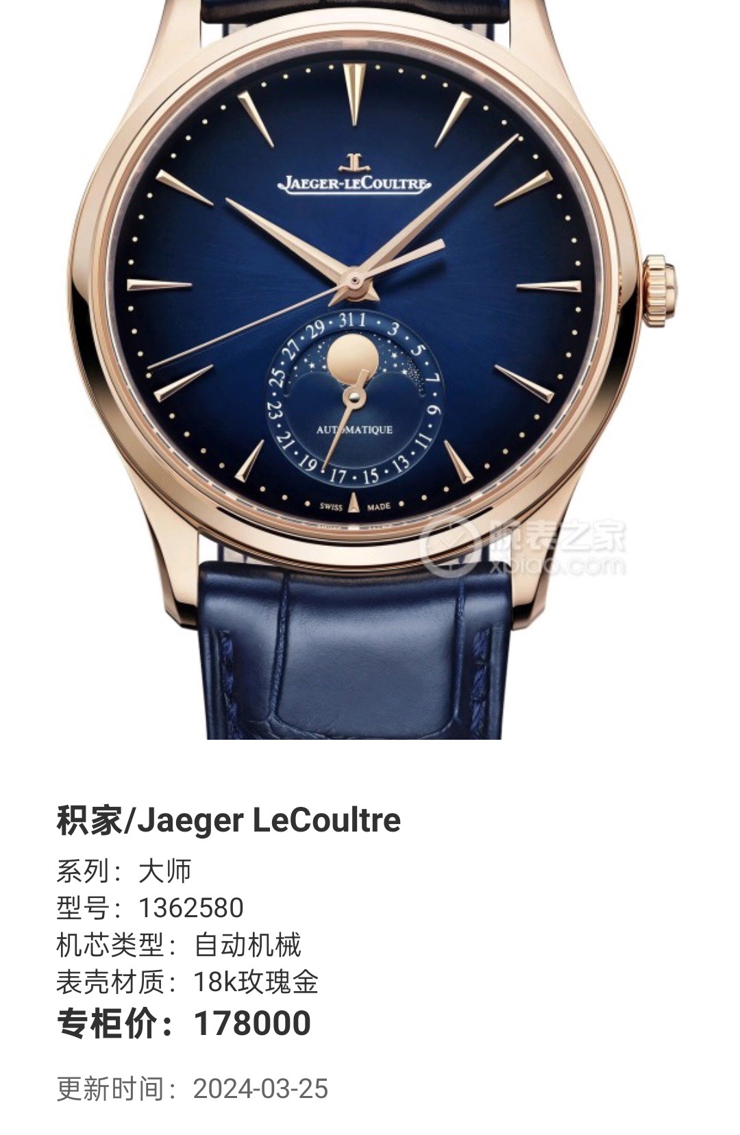 积家/Jaeger LeCoultre 大师 1362580 自动机械 18k玫瑰金 专柜价178000~