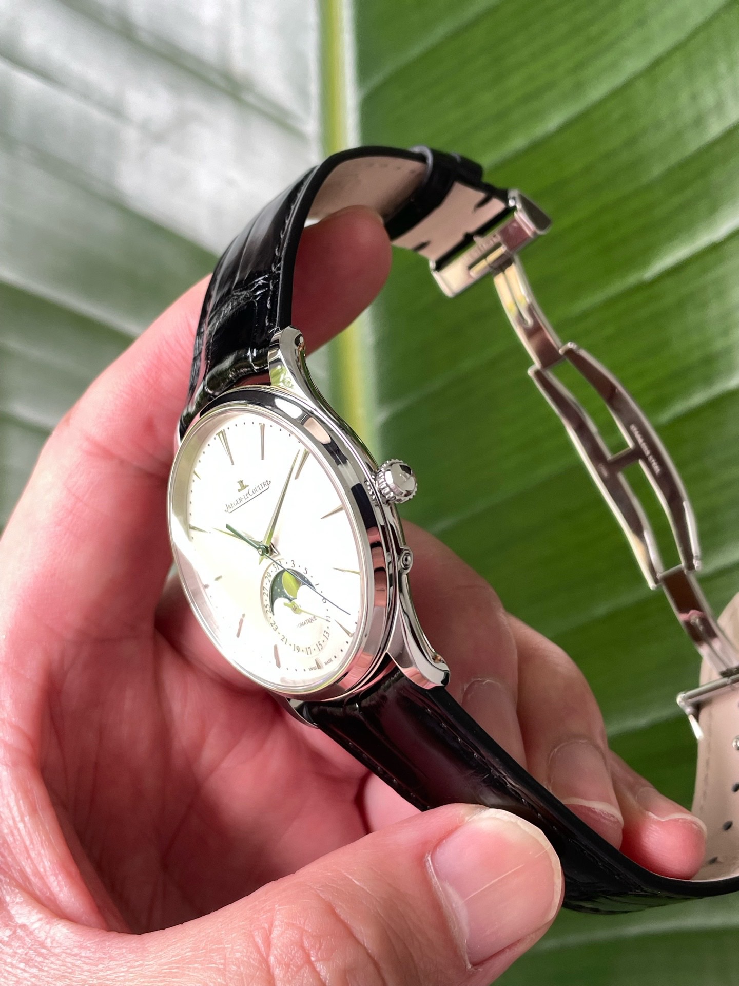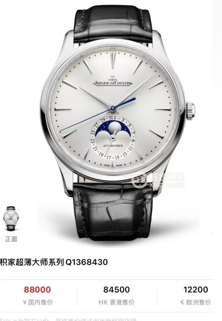 积家大师系列1368430男士机械腕表,最新款月相,整表近新表径39白面满天星月相,大热门款原价88000