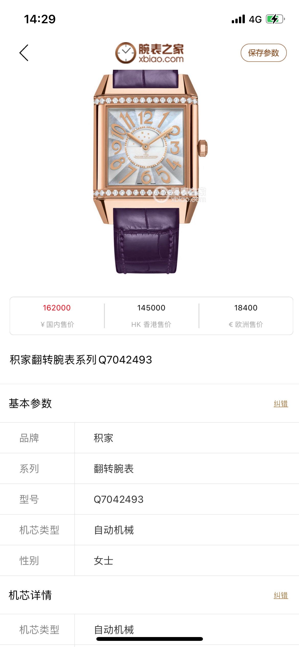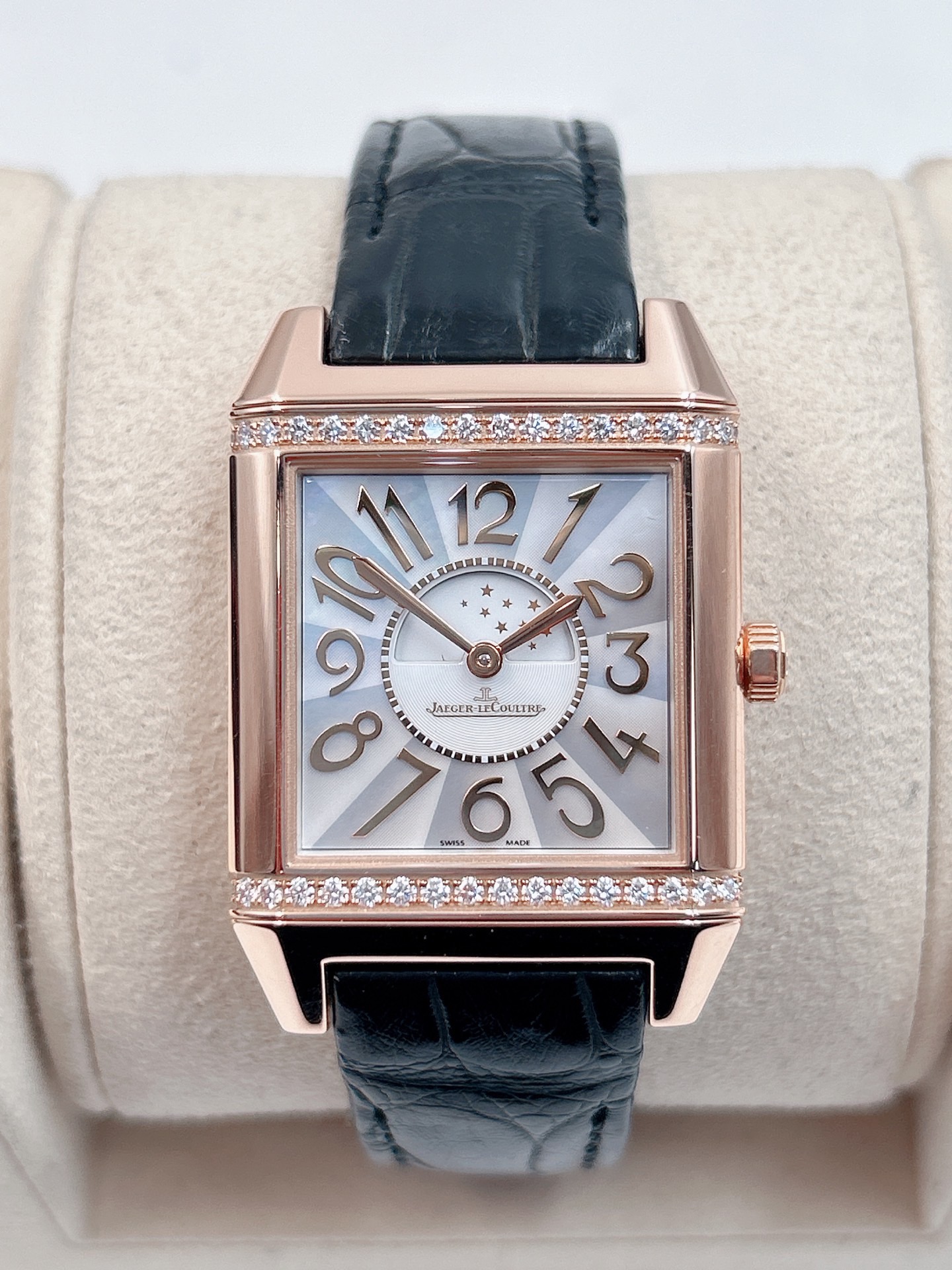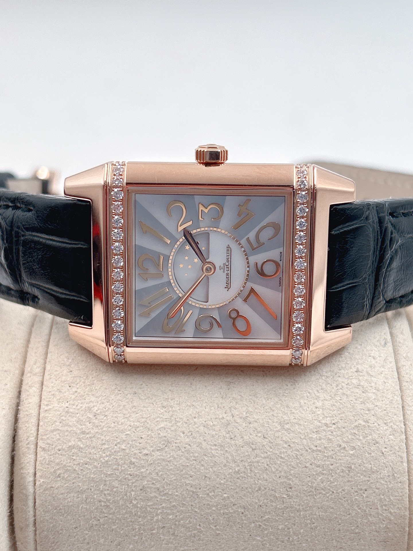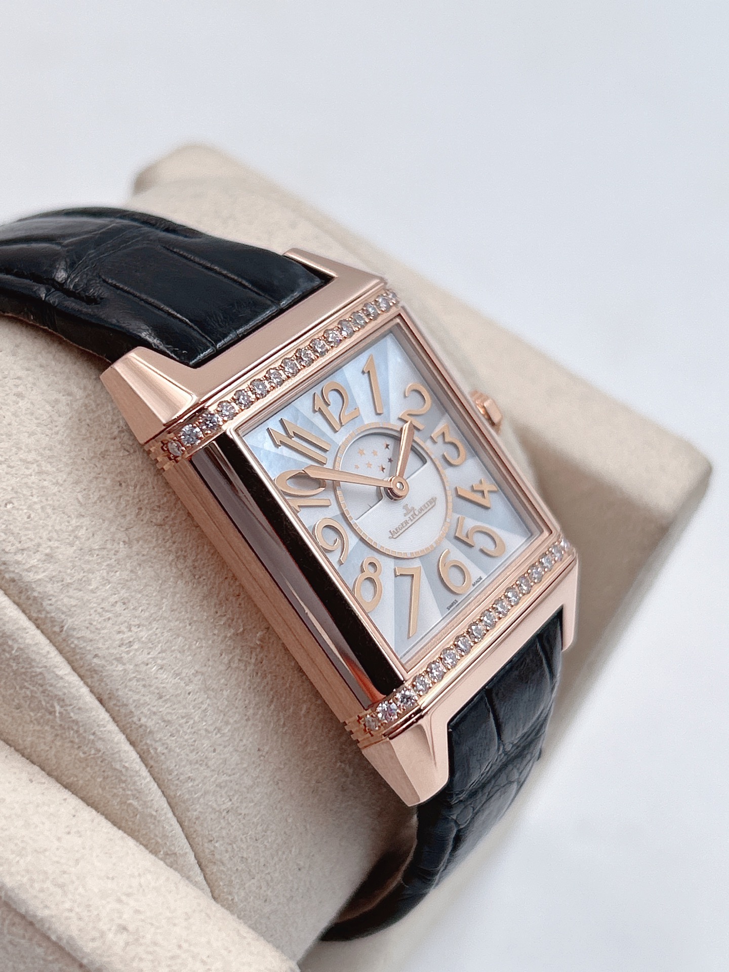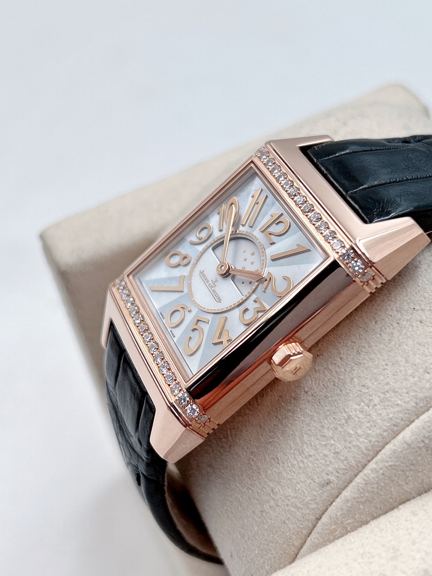 积家翻转系列 Q7042493自动机械女表,尺寸29x42mm 18k玫瑰金材质 原镶钻,大折叠表扣 昼夜显示功能 公价162000 高品质的一款腕表整表95新 现货好价