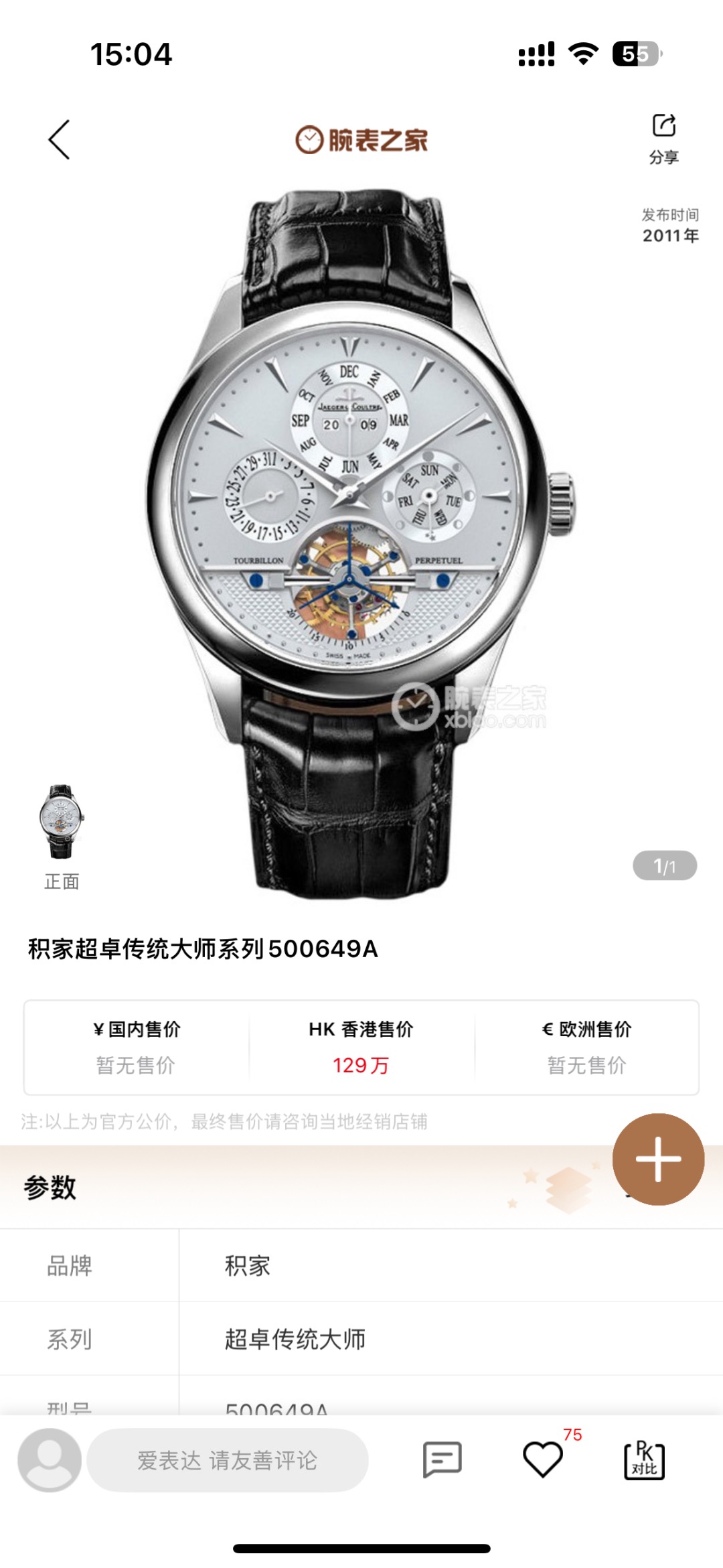 积家500649A,超卓传统大师系列,946型腕表,超复杂旗舰Cal.987机芯,同时搭在陀飞轮、公价142万,现货单表好价2xxxxx即可戴出百万质感