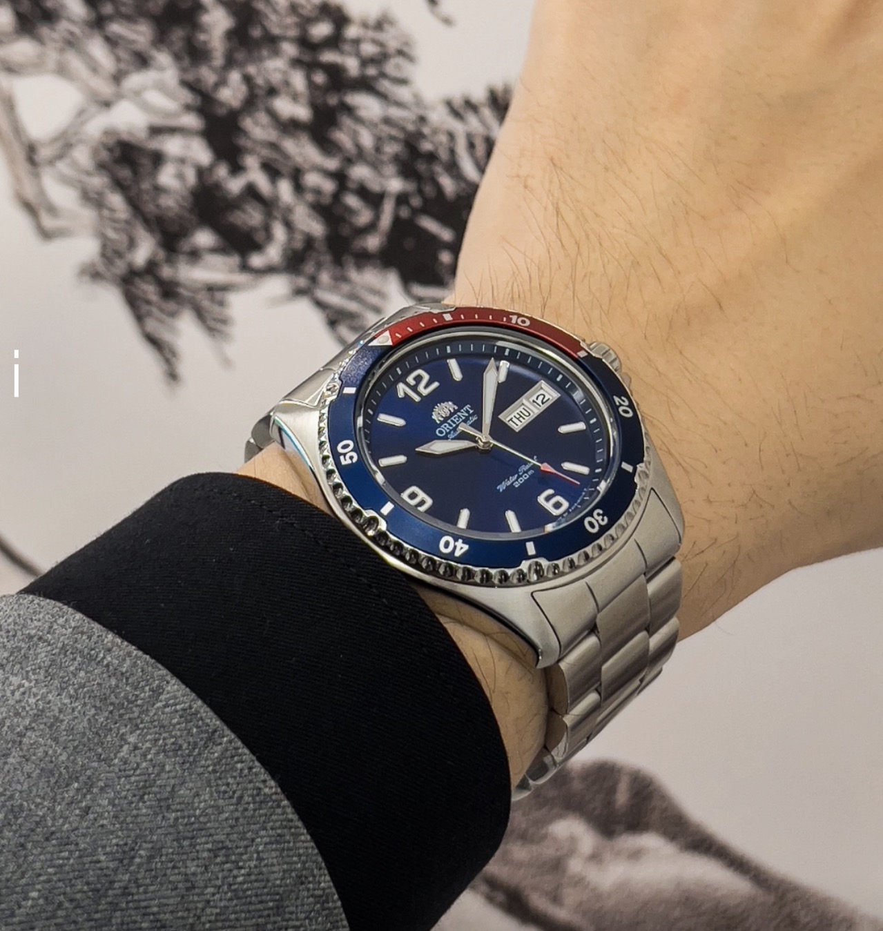 ORIENT东方双狮 运动潜水 自动机械机芯 精钢表带 日韩表 41.5mm 男表 蓝色表盘 FAA02009D9 专柜售价2930全新全套全国联保近期保卡