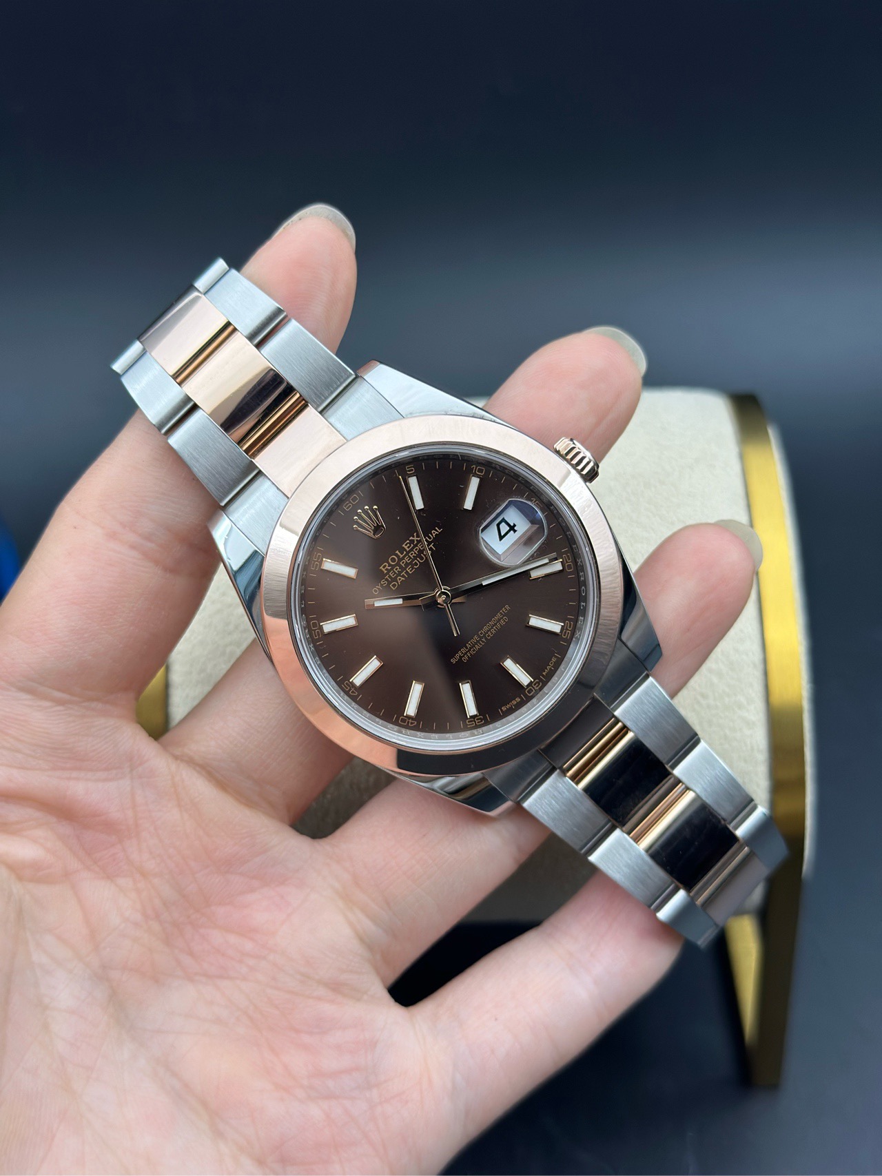 劳力士/Rolex 日志型 41 M126301-0001 自动机械机芯 永恒玫瑰金钢(蚝式钢与18ct永恒玫瑰金的组合) 41毫米 质感咖色盘面 极品成色乱码单表 专柜价 128200,现货特价