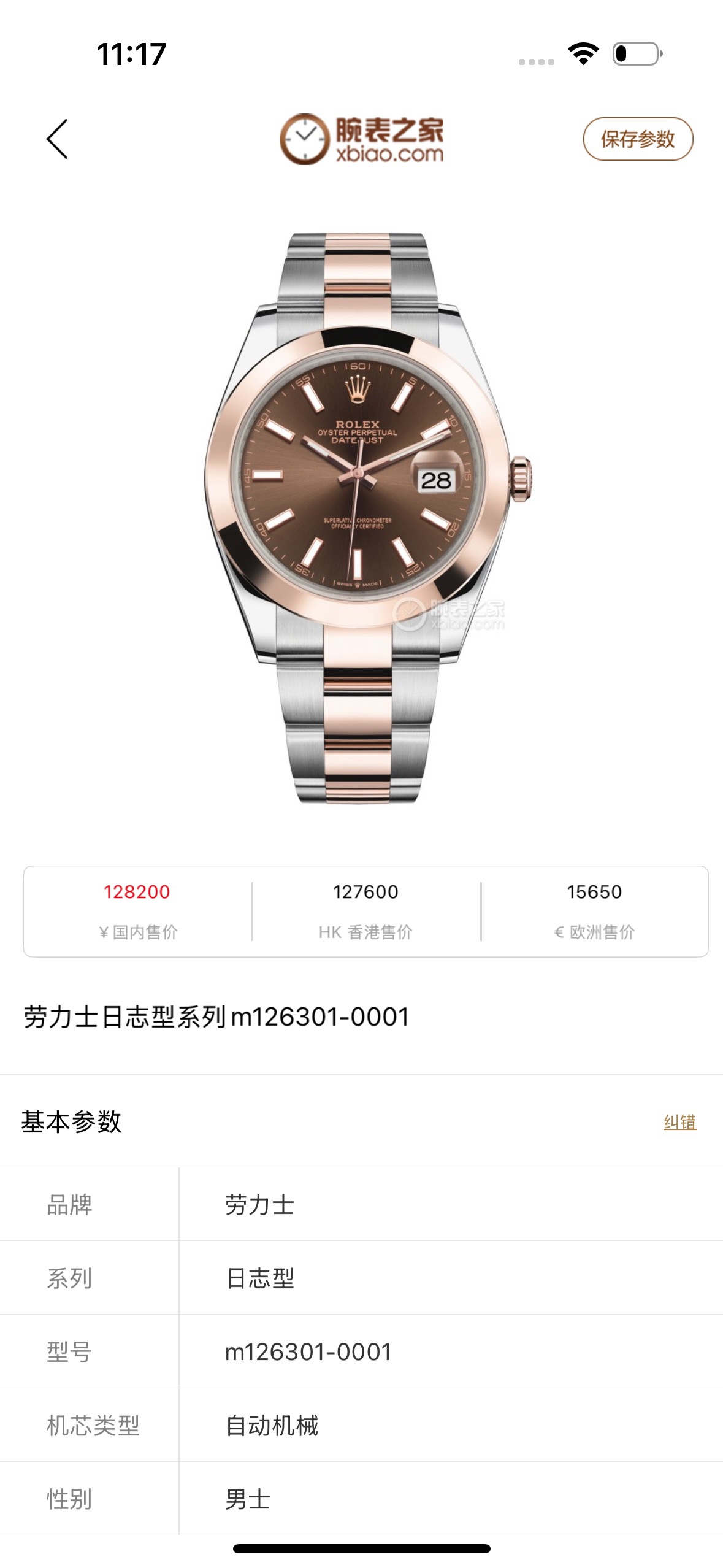 劳力士日志型M126301-0001机械男性