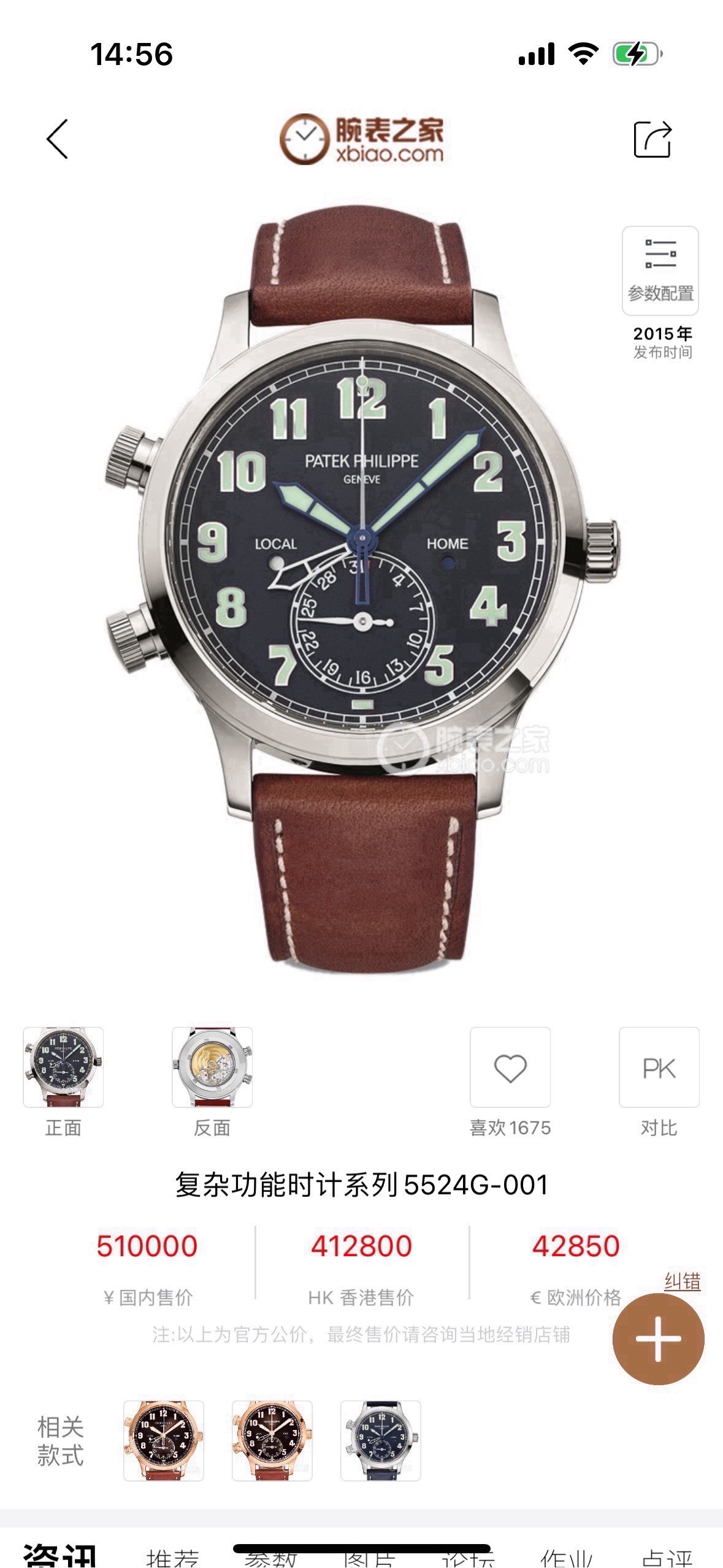 百达翡丽复杂功能计时腕表5524G-001机械男性