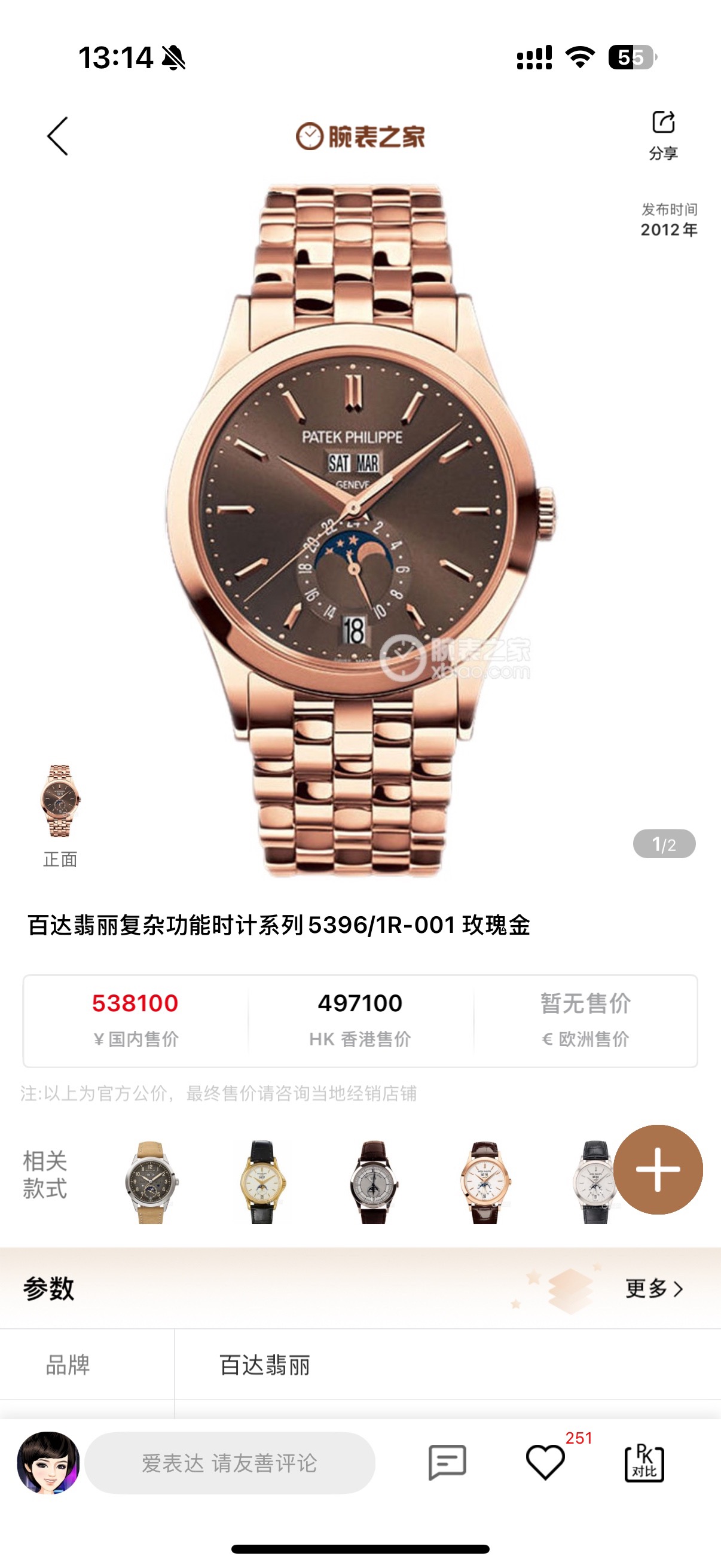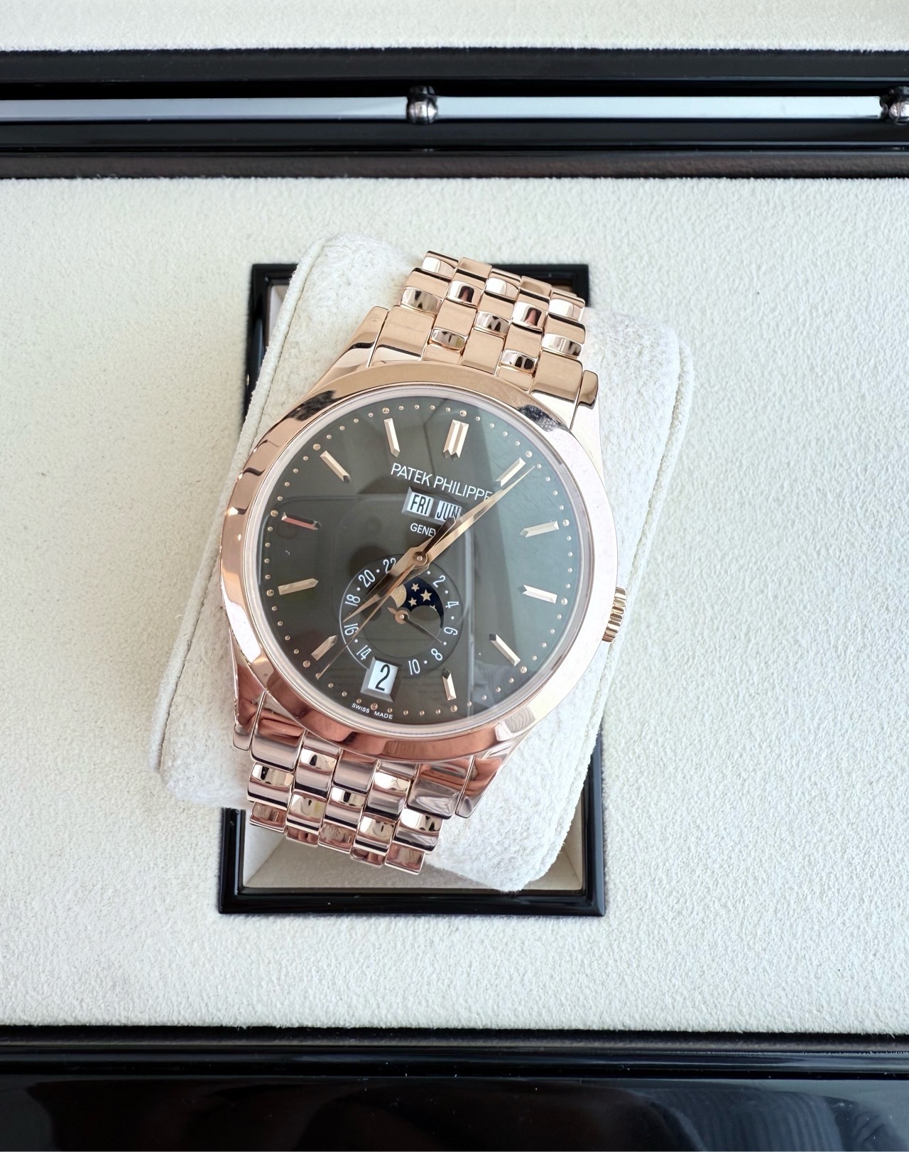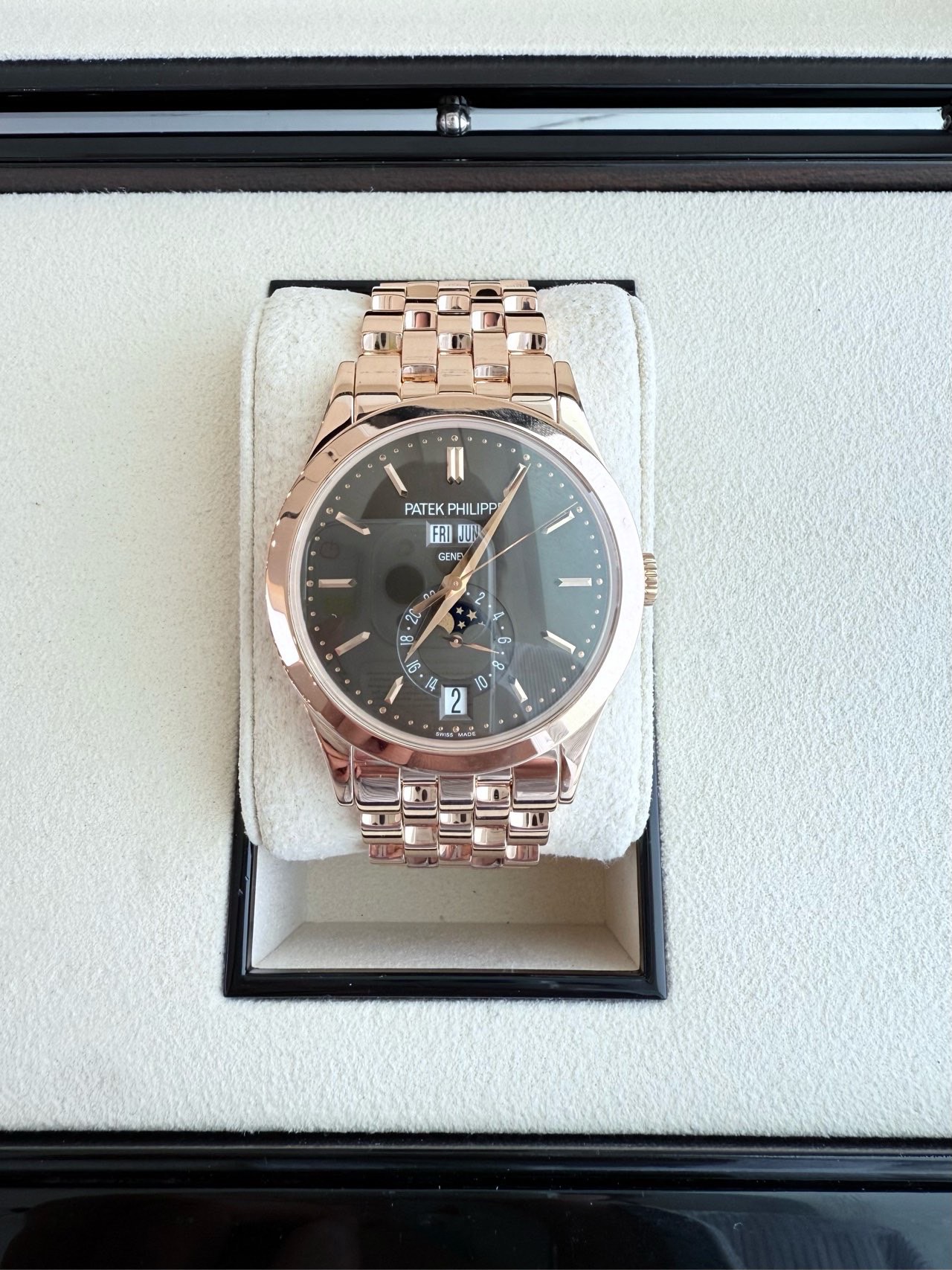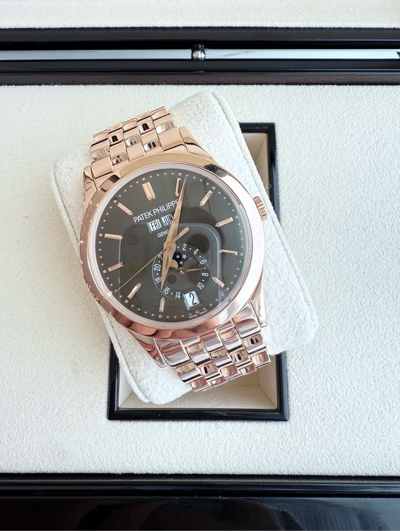百达翡丽复杂功能时计5396/1R-001咖啡盘,自动机械,整体18k玫瑰金材质,表径38mm,专柜价538100,现货好价~