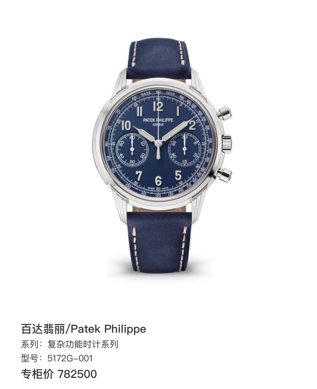 百达翡丽5172G-001白金蓝盘 41mm表径 手动机械 附件 极品全套