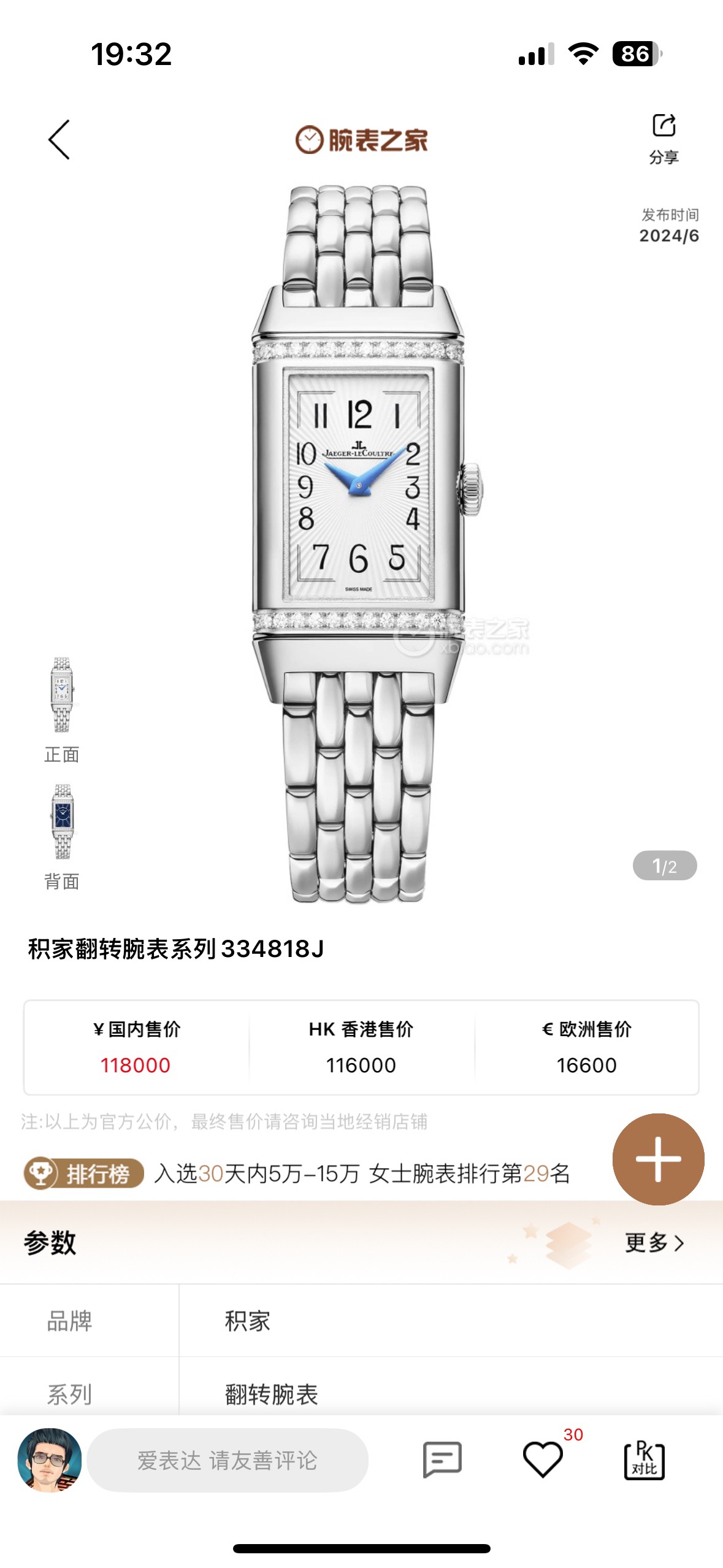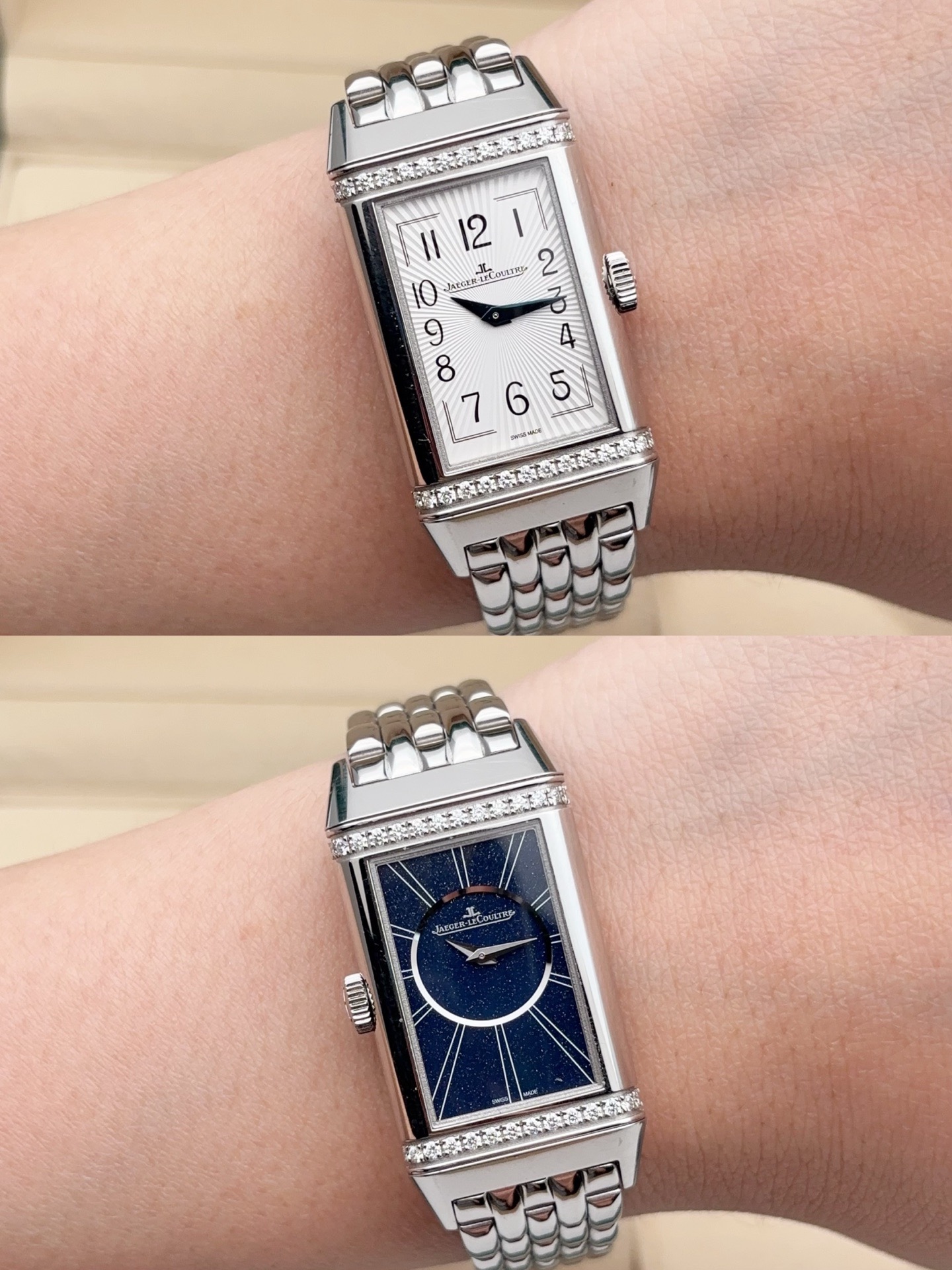 积家翻转系列334818J女士手动机械腕表,40.1*2毫米表径,精钢材质,全套,公价118000,现好价