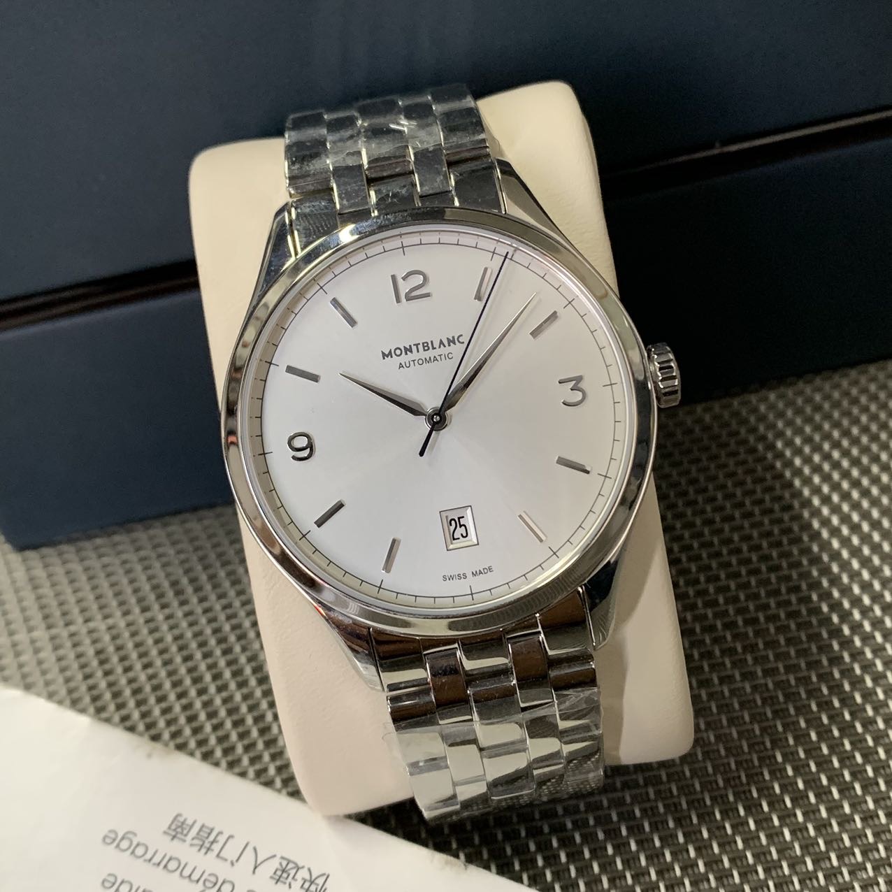 万宝龙传承系列象征着优雅精致的品牌精神,有态度的传承就是这一个系列的设计灵感,力争每一款都在设计上能够别具匠心。轻薄的精钢表壳,上手非常舒适,设计简约大方,大三针的设计,秒针采用蓝色,更加醒目的同时也给银色的表盘增添了些许色彩搭配。银白色放射纹路表盘,在不同角度看都有不同的帅气!阿拉伯数字时标搭配条形时标,经典耐看,6点位日期显示设置,与众不同。搭载自产机芯,动力储备可达42小时。性能强大,外观帅气,任何场合轻松驾驭。