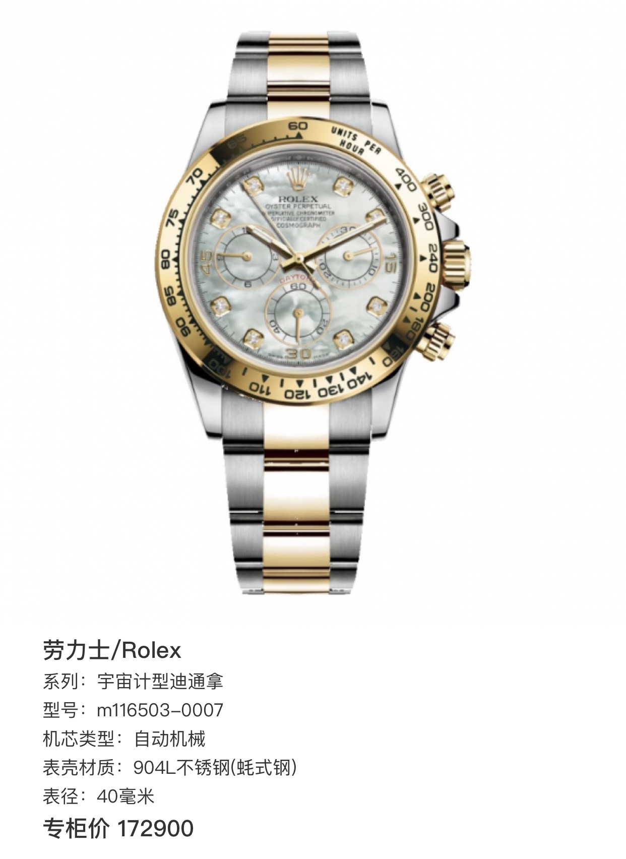 劳力士迪通拿116503-0007贝母盘