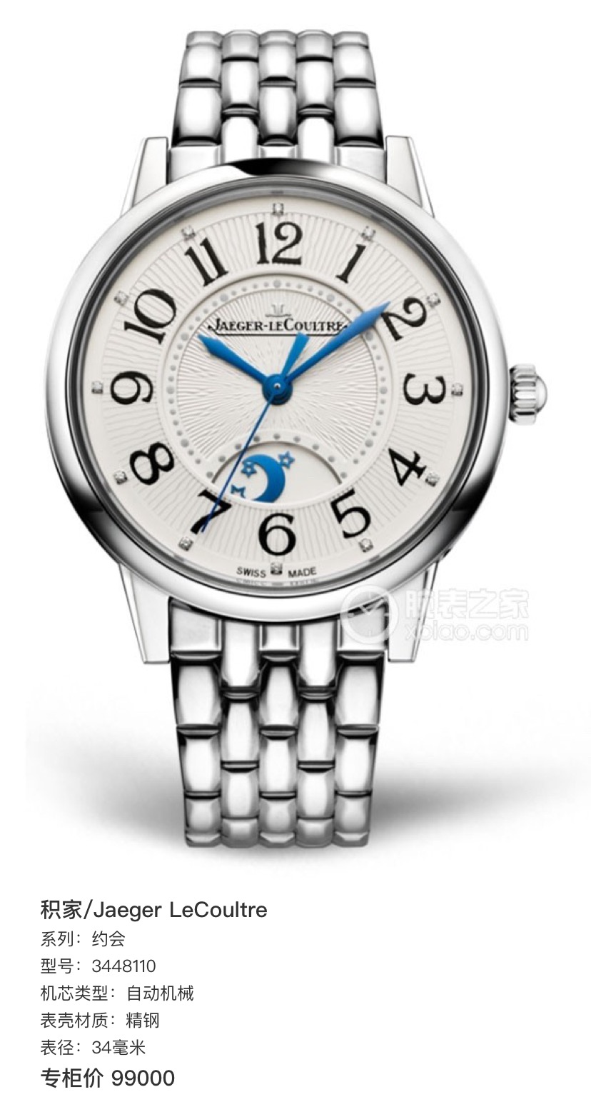 积家/Jaeger LeCoultre 约会 3448110 自动机械 精钢 34毫米 专柜价99000~
