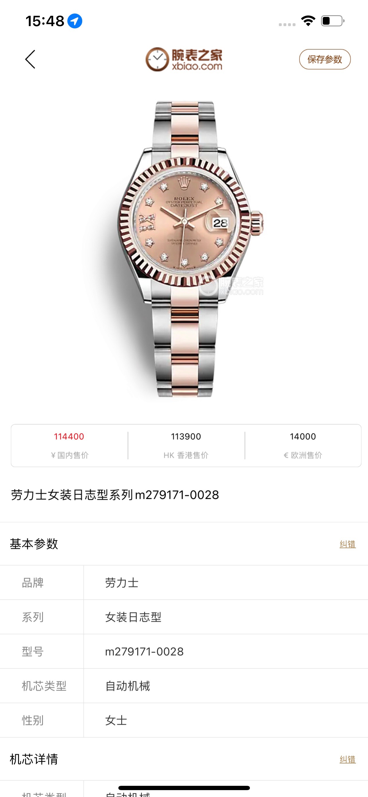 Rolex劳力士 日志型 m279171-0028 粉盘星星钻 ,自动机械表 18k玫瑰金间金材质 28毫米表径 ,