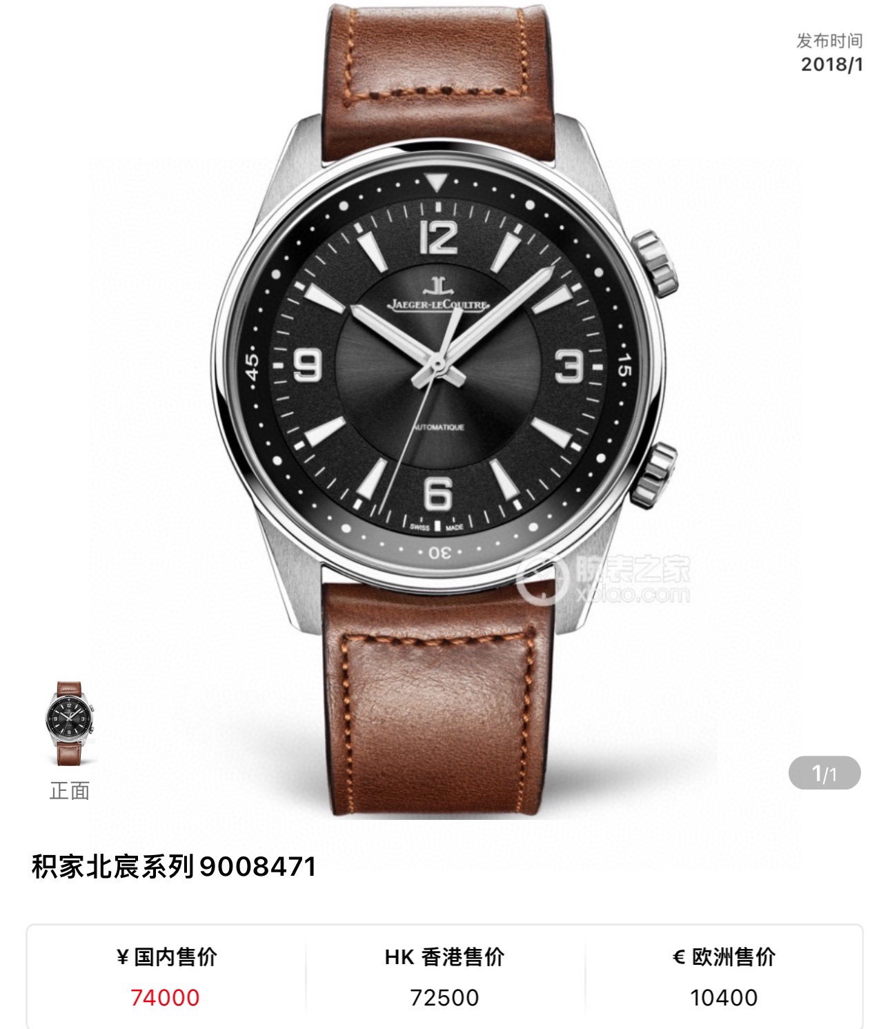 积家北宸系列9008471男士自动机械腕 热门款北辰 表径41mm 动力储备70个小时 黑色表盘 搭配折叠扣 背透机芯 采用精钢材质打造 专柜价74000