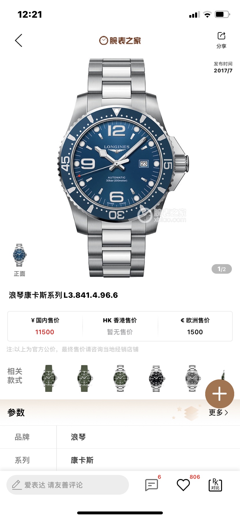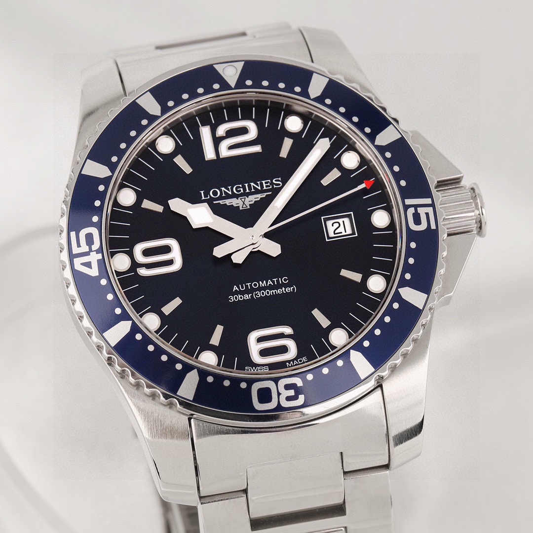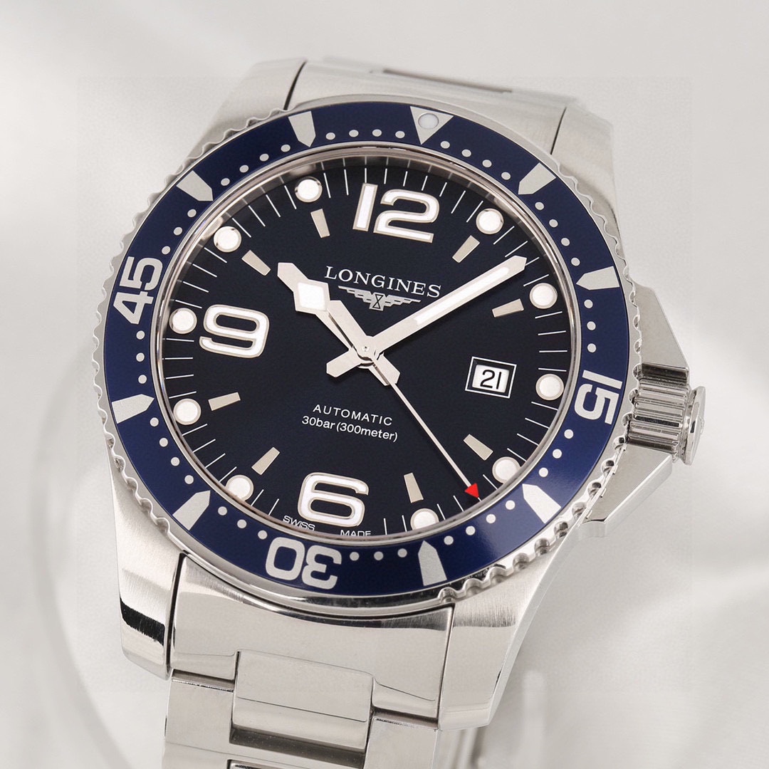 浪琴康卡斯系列L3.841.4.96.6自动机械男士腕表,精钢材质,44mm表径,可旋转外圈,日期显示功能,公价11500,现好价