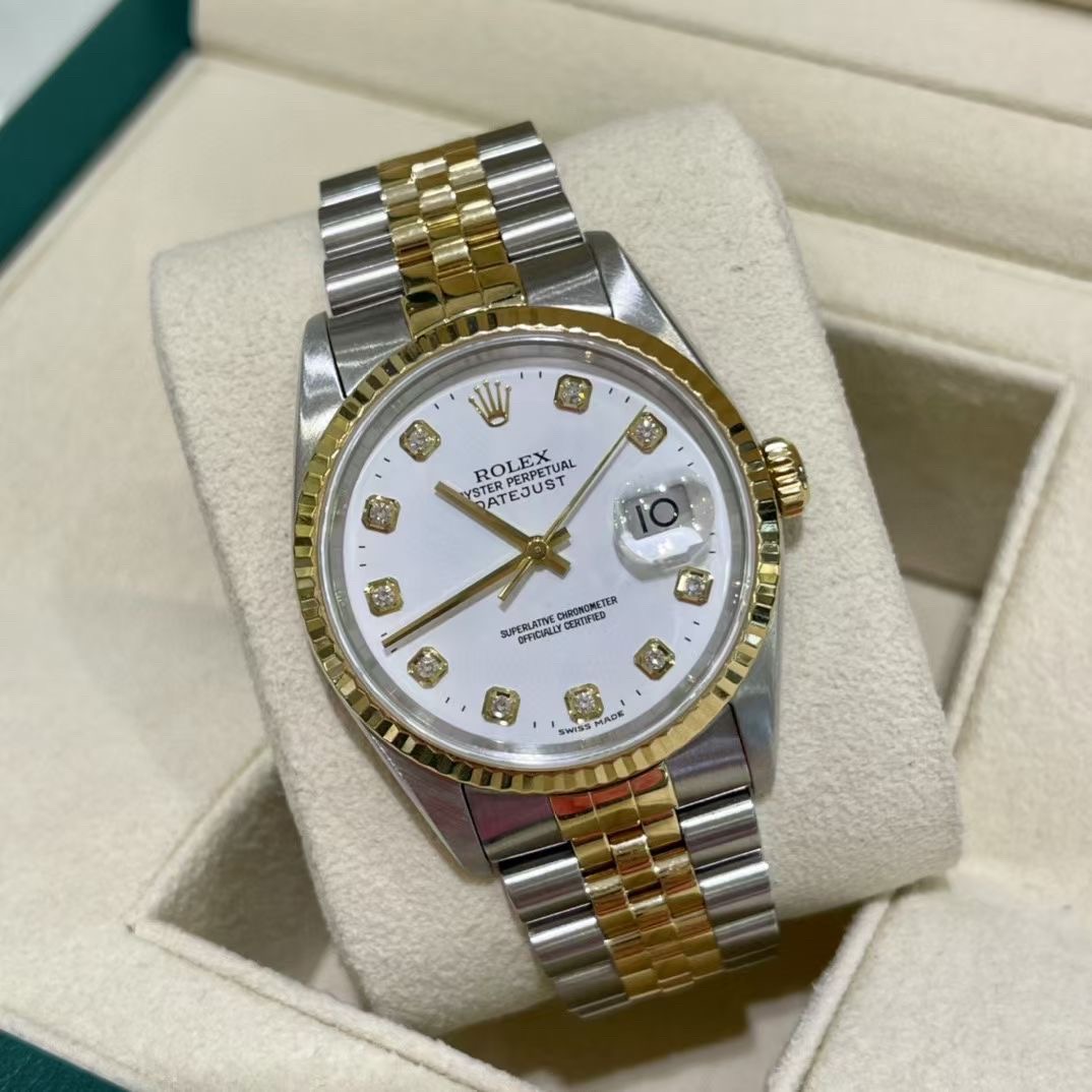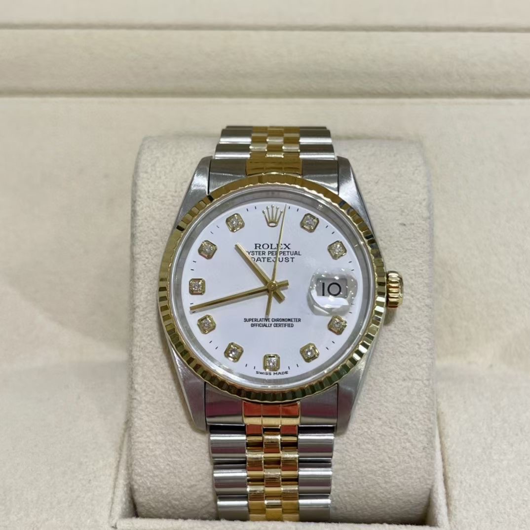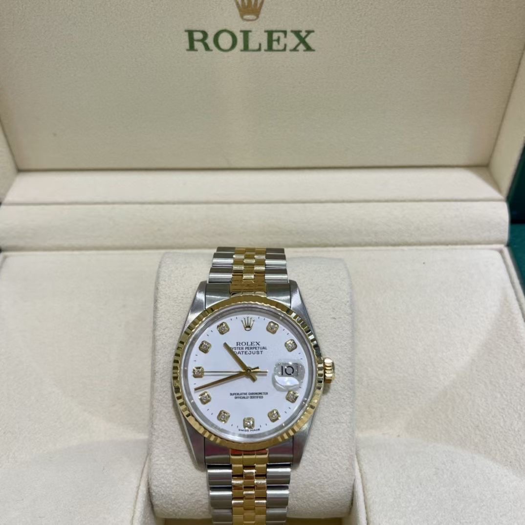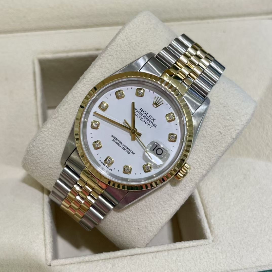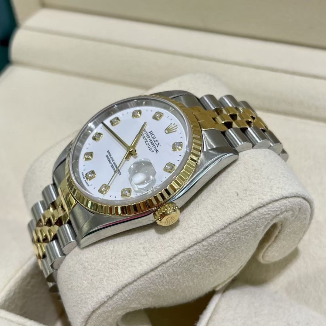 劳力士/Rolex 日志型 16233 雪山白 自动机械 不锈钢 36毫米表径 原盘原钻间金款 单表好价