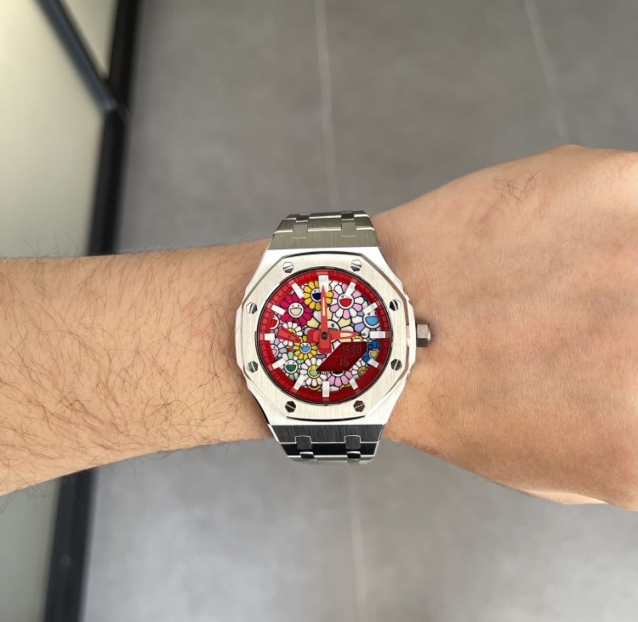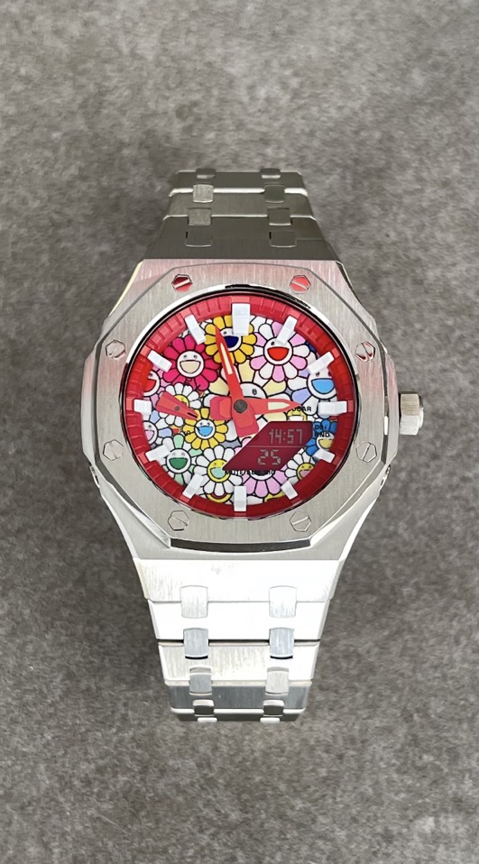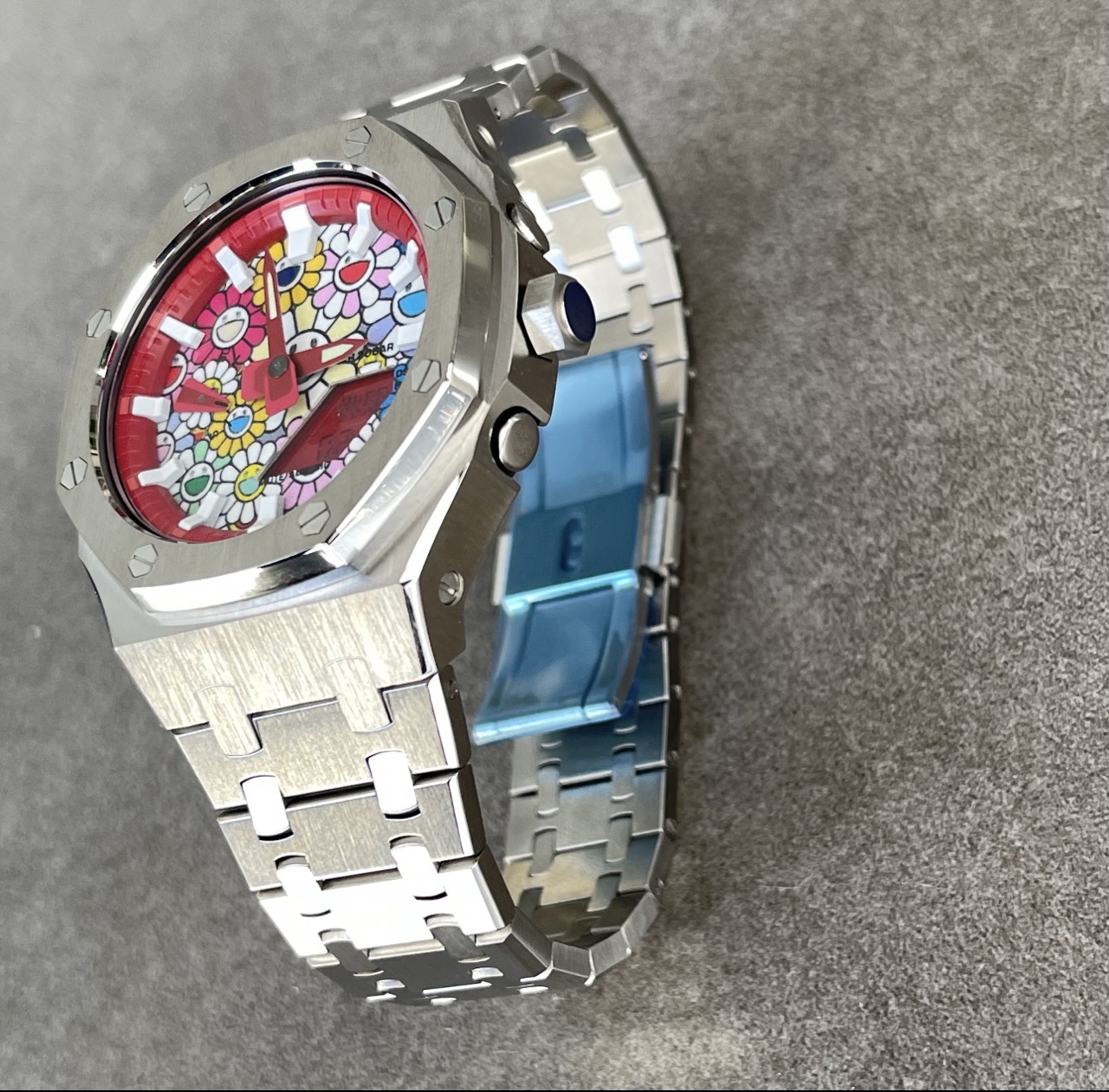定制手表 CASIO卡西欧 改装系列 石英机芯 GA2100精钢表带 日韩表 男女同款 彩色表盘 43表径 全新全套全国联保近期保卡