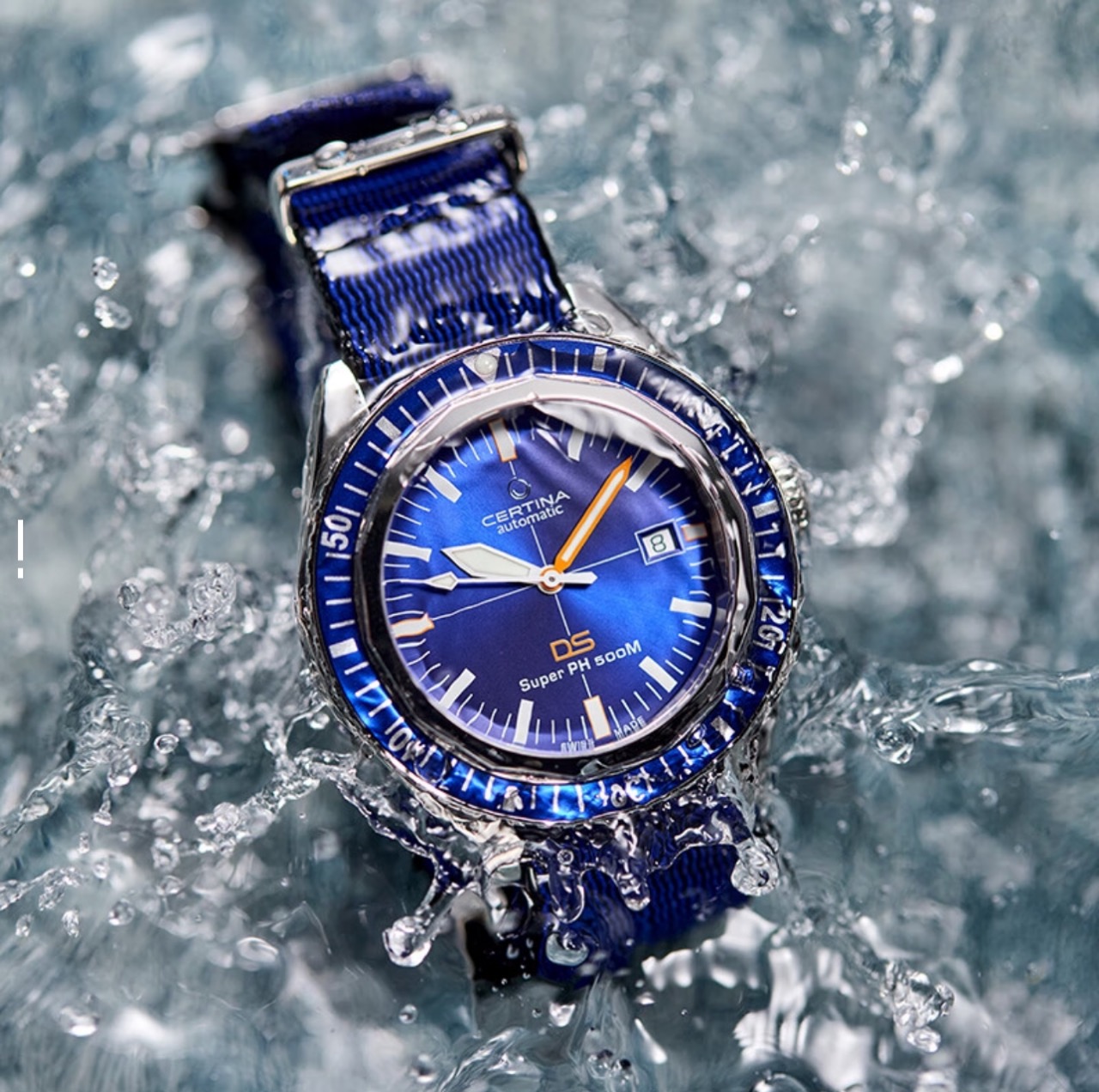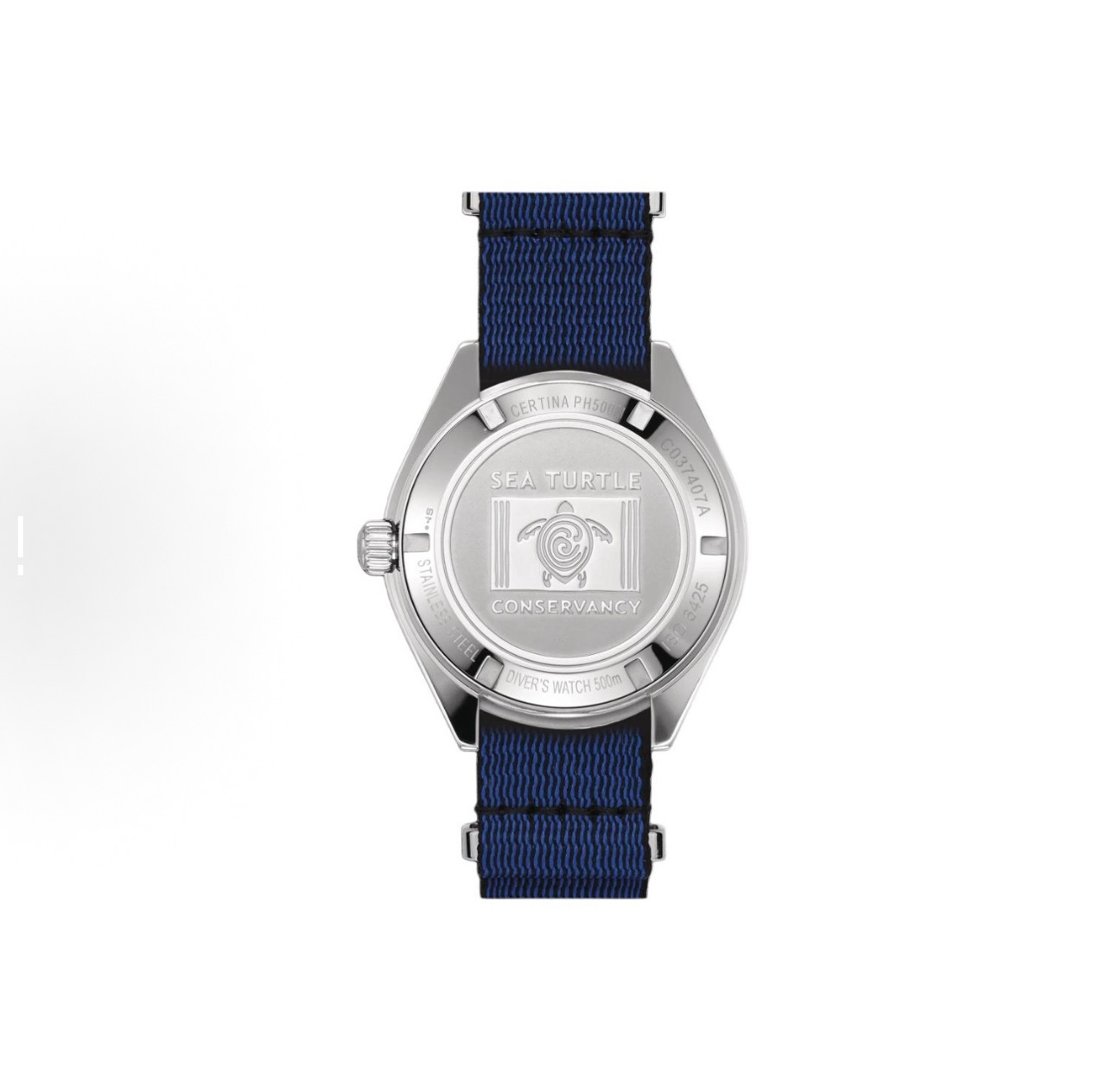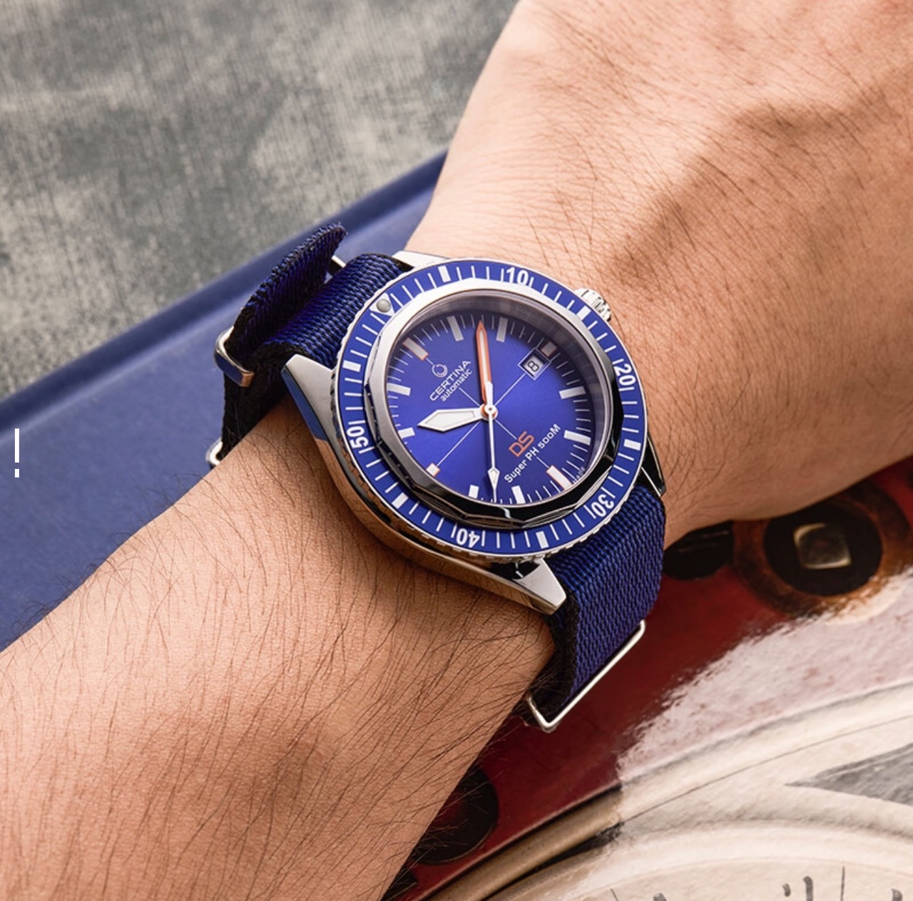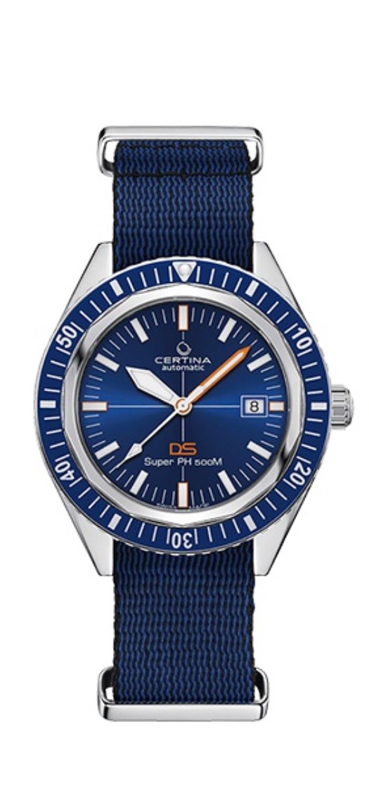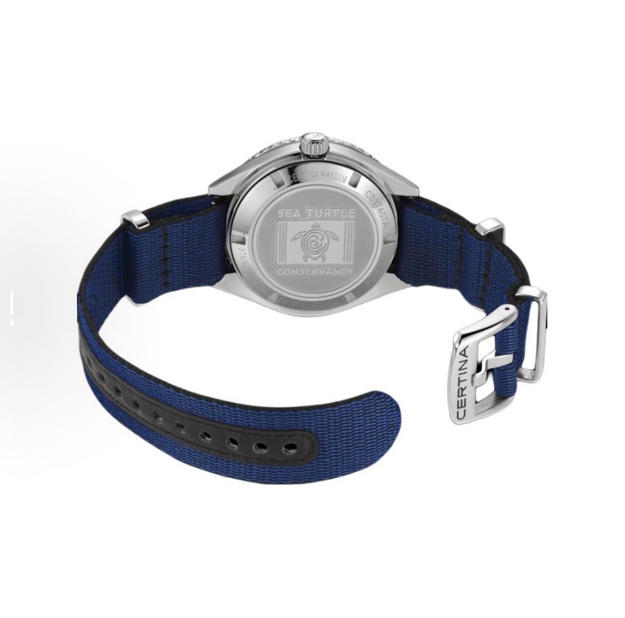 CERTINA雪铁纳 DS PH500M系列 C037.407.18.040.10自动机械机芯 500米防水 男女同款 瑞表 43mm 蓝色表盘 精钢表壳 帆布织物表带 专柜售价7250 全新全套全国联保近期保卡