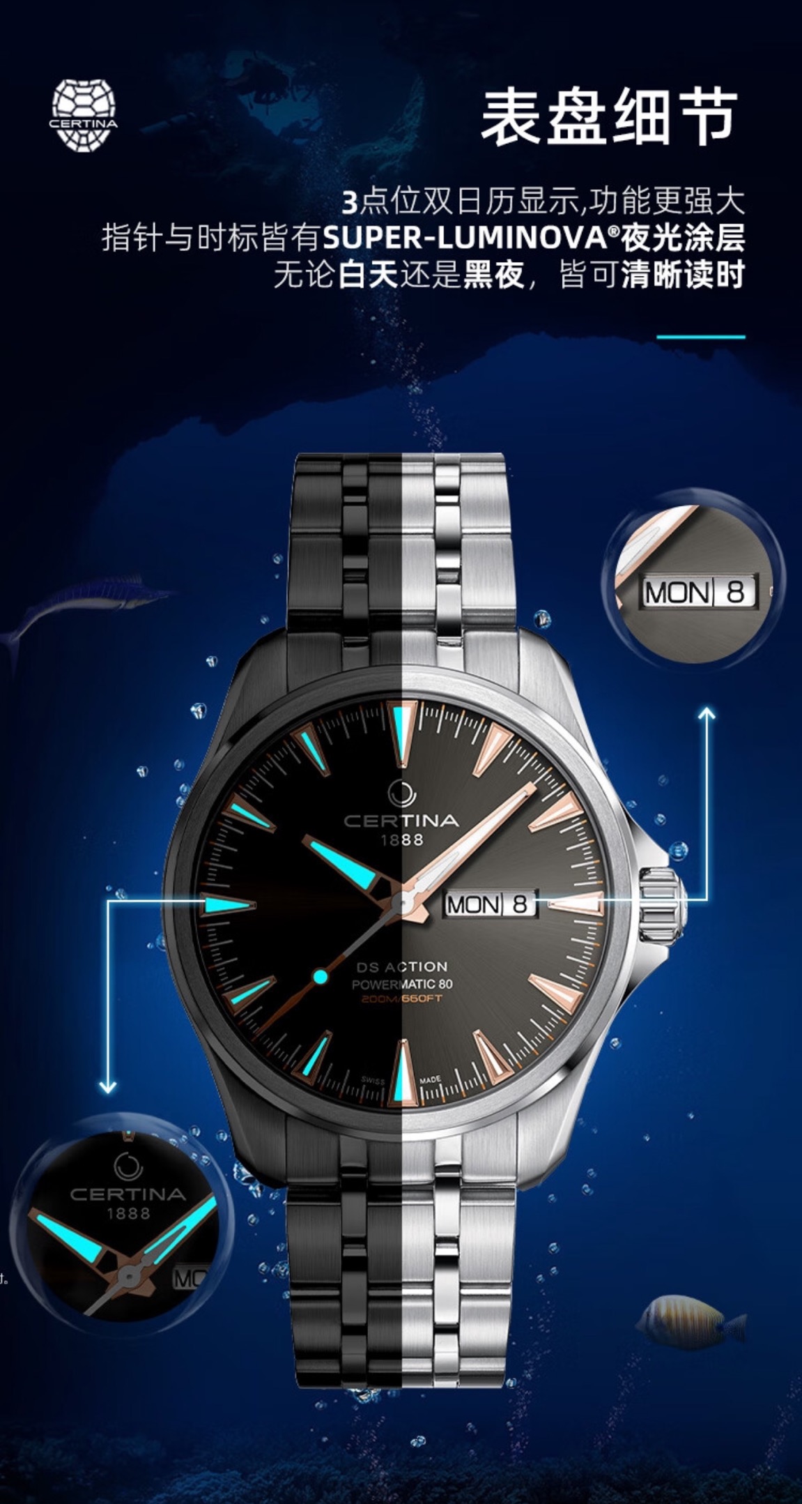 CERTINA雪铁纳瑞表 棕色表盘 动能系列机械手表 表径41毫米潮流双历商务男表 自动机械机芯 C032.430.11.081.01 专柜售价5900 全新全套全国联保近期保卡