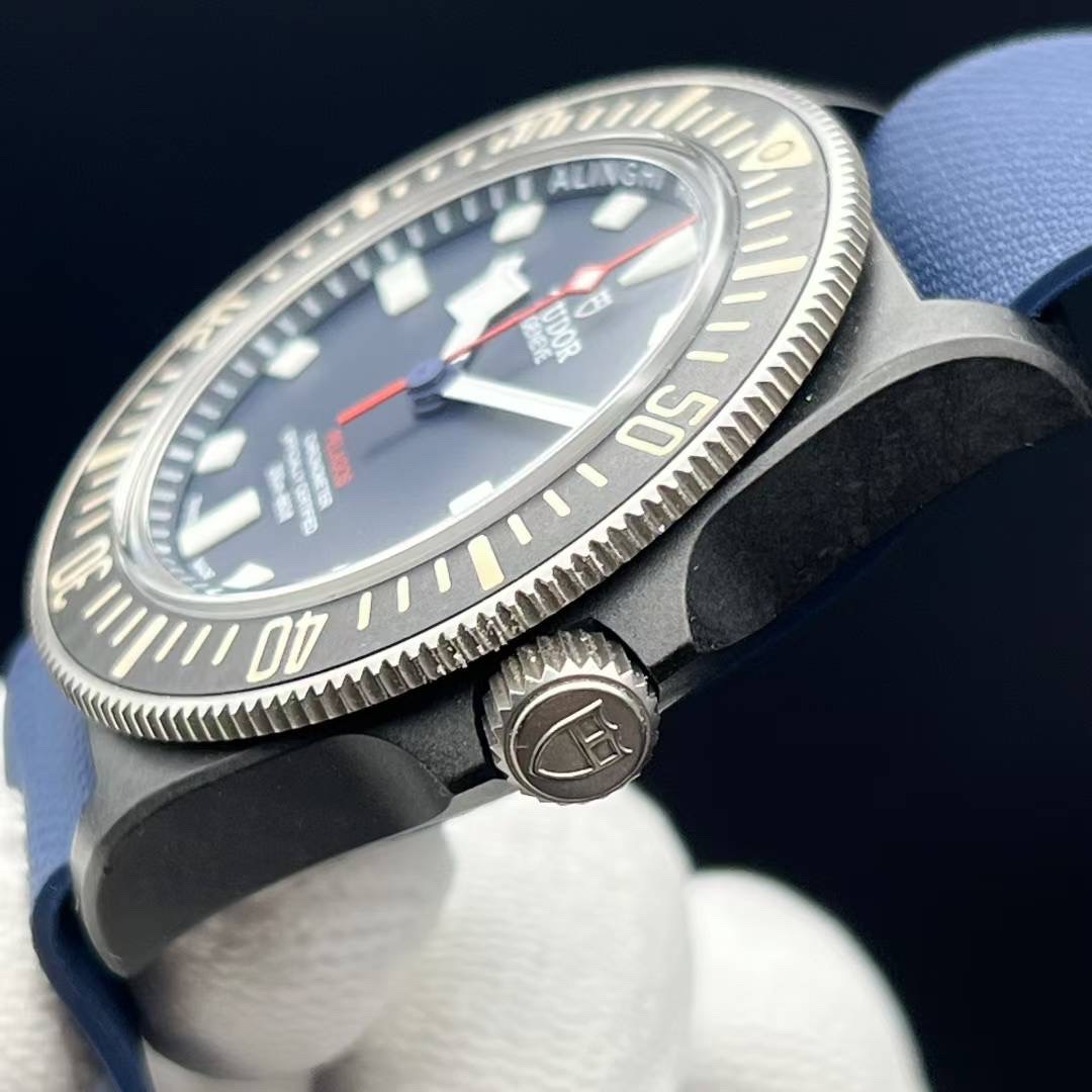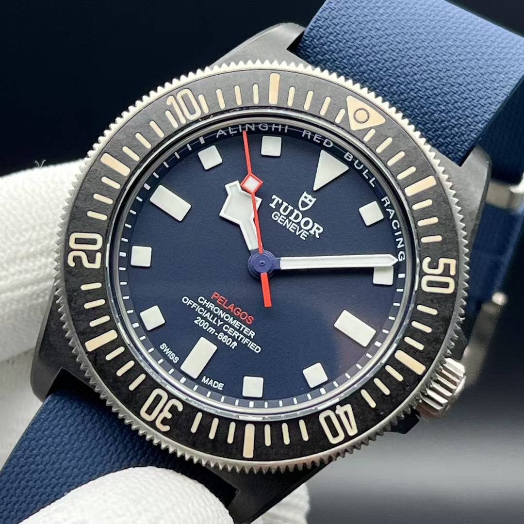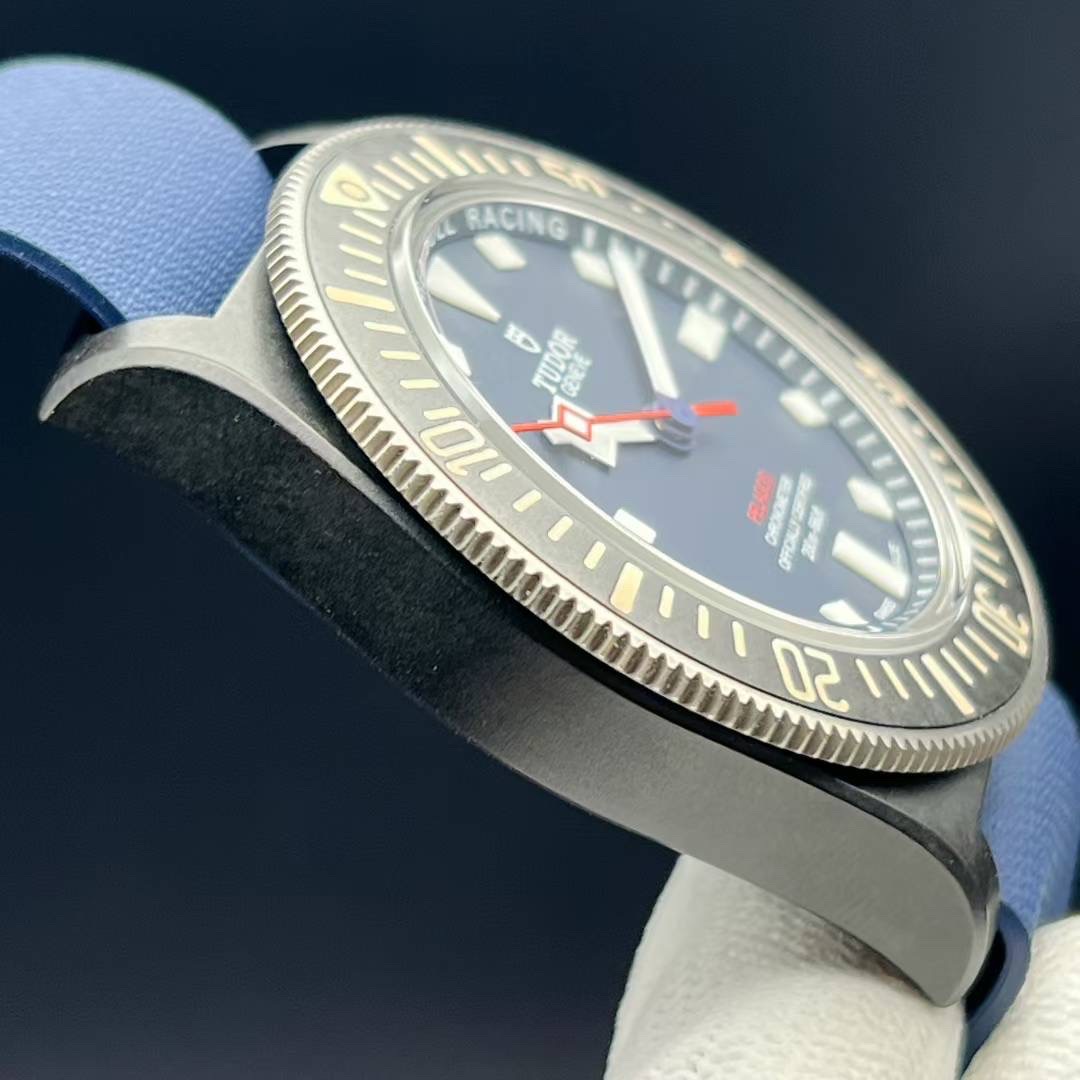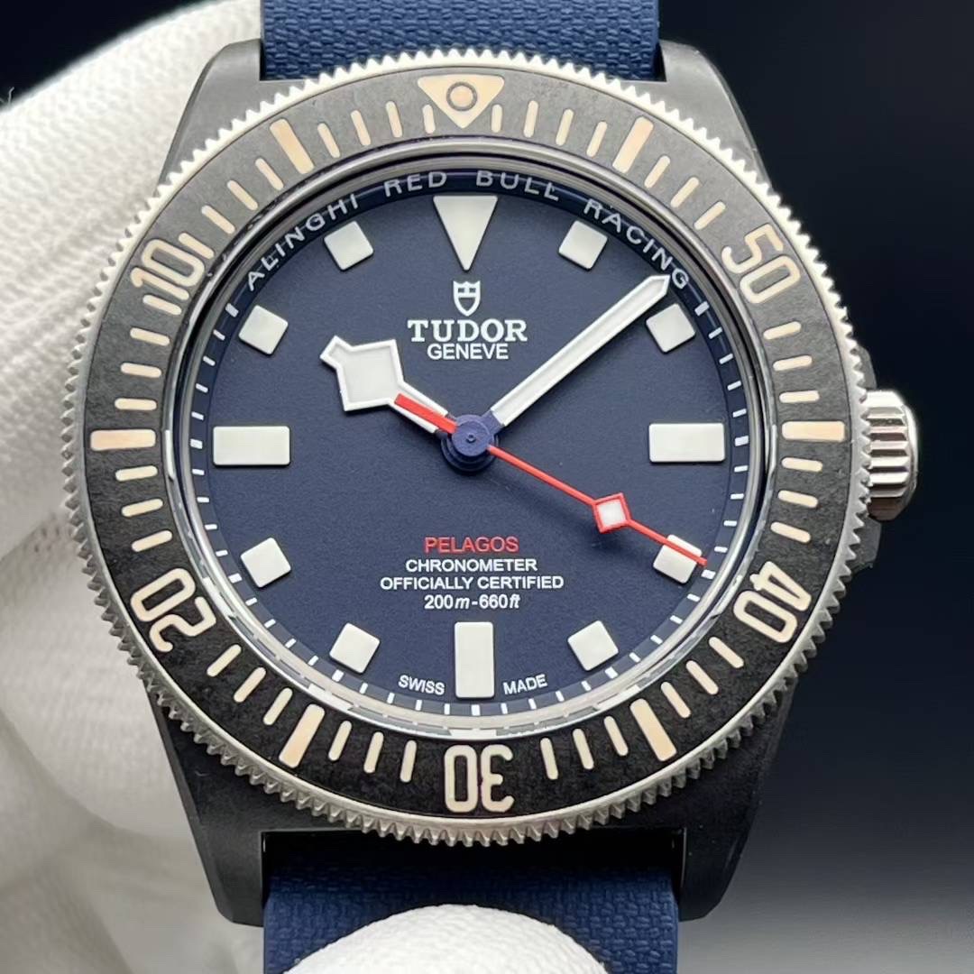 帝舵领潜系列M25707KN-0001红牛联名款,表径42mm,黑色碳复合材质,哑光蓝盘大三针设计,夜光超级犀利,公价31800元,现货23年底大全套,多条魔术贴表带,成色非常极品