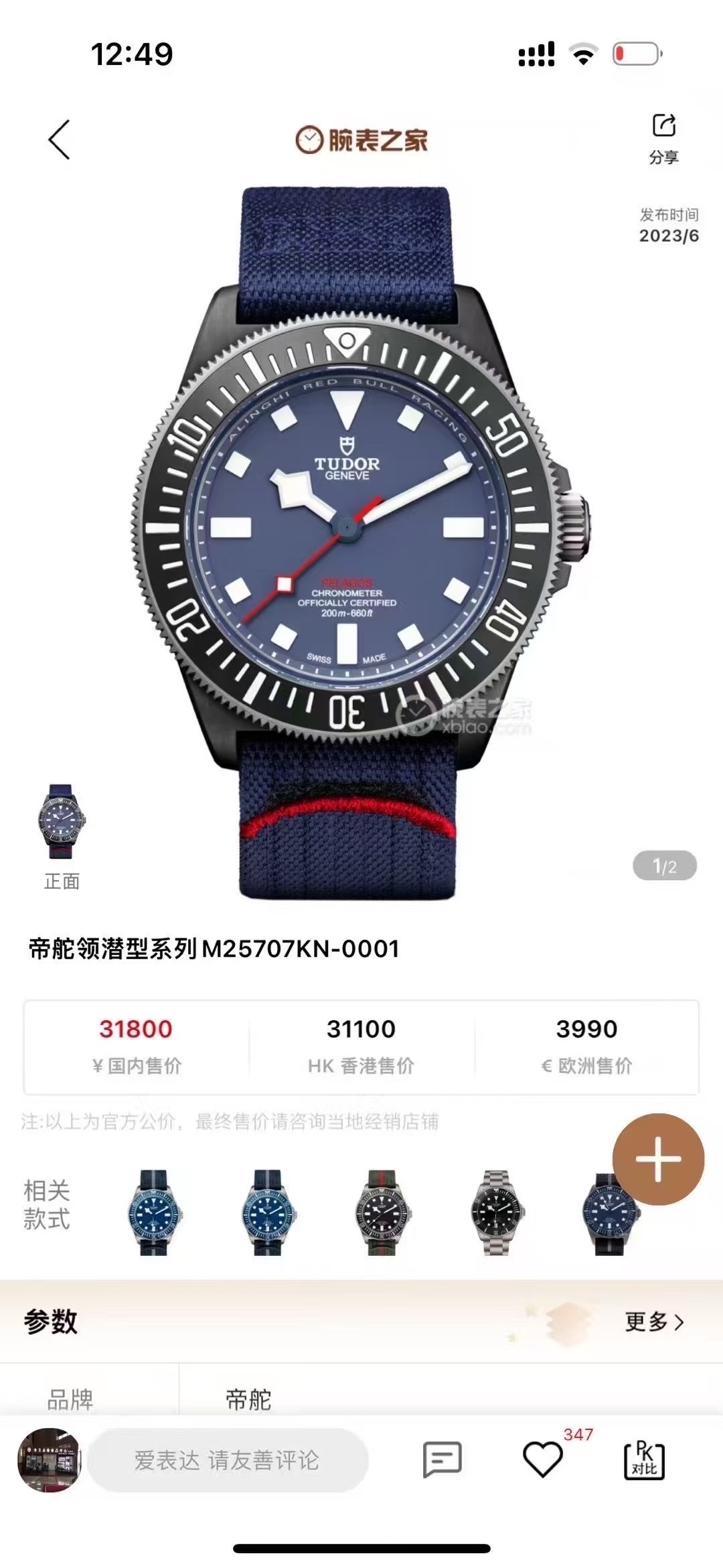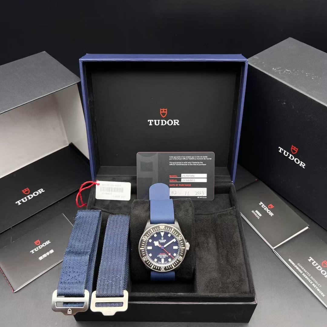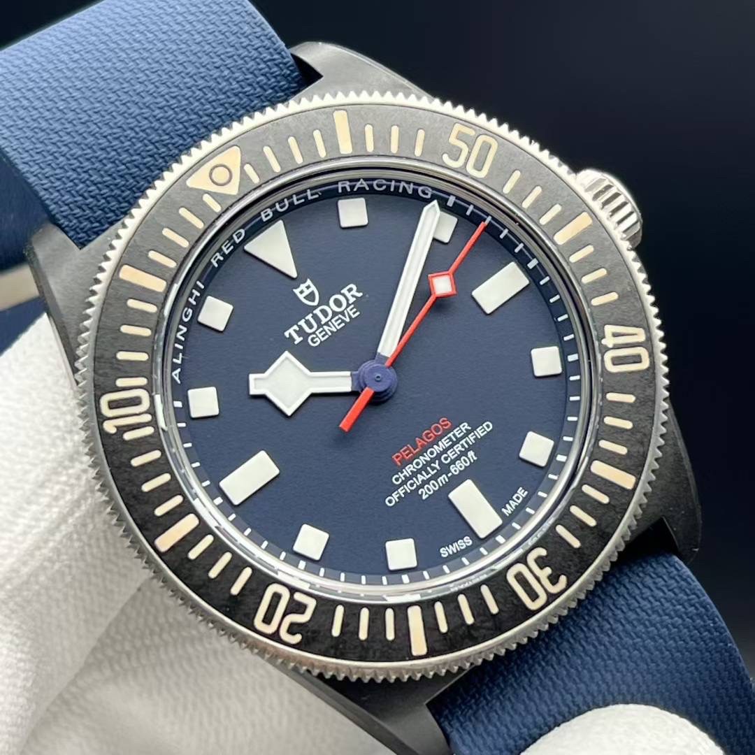 帝舵领潜系列M25707KN-0001红牛联名款,表径42mm,黑色碳复合材质,哑光蓝盘大三针设计,夜光超级犀利,公价31800元,现货23年底大全套,多条魔术贴表带,成色非常极品
