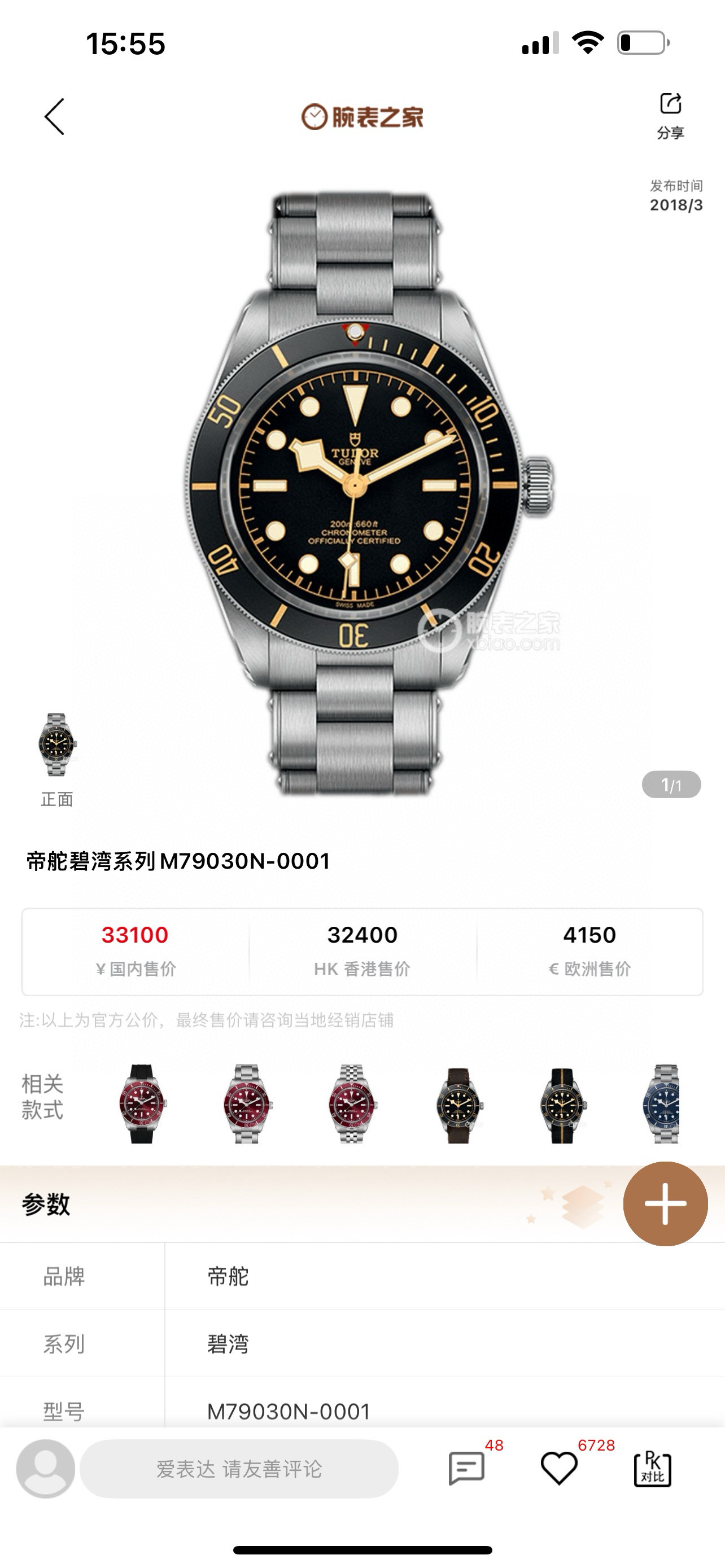 帝舵碧湾系列M79030N-0001自动机械腕表 1958黑金 表径39毫米 防水深度200米,2022年全套