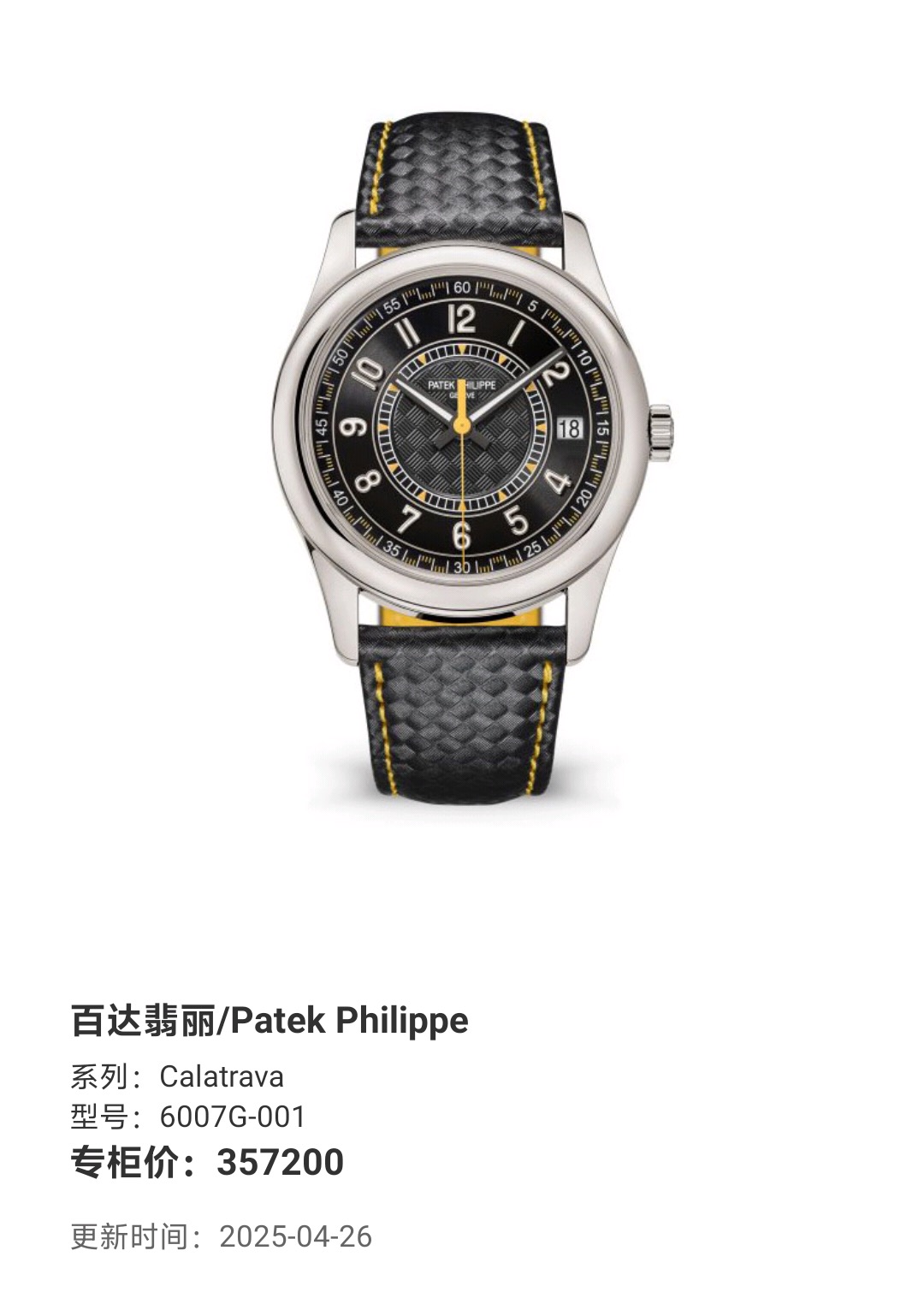 百达翡丽/Patek Philippe Calatrava 6007G-001 专柜价357200