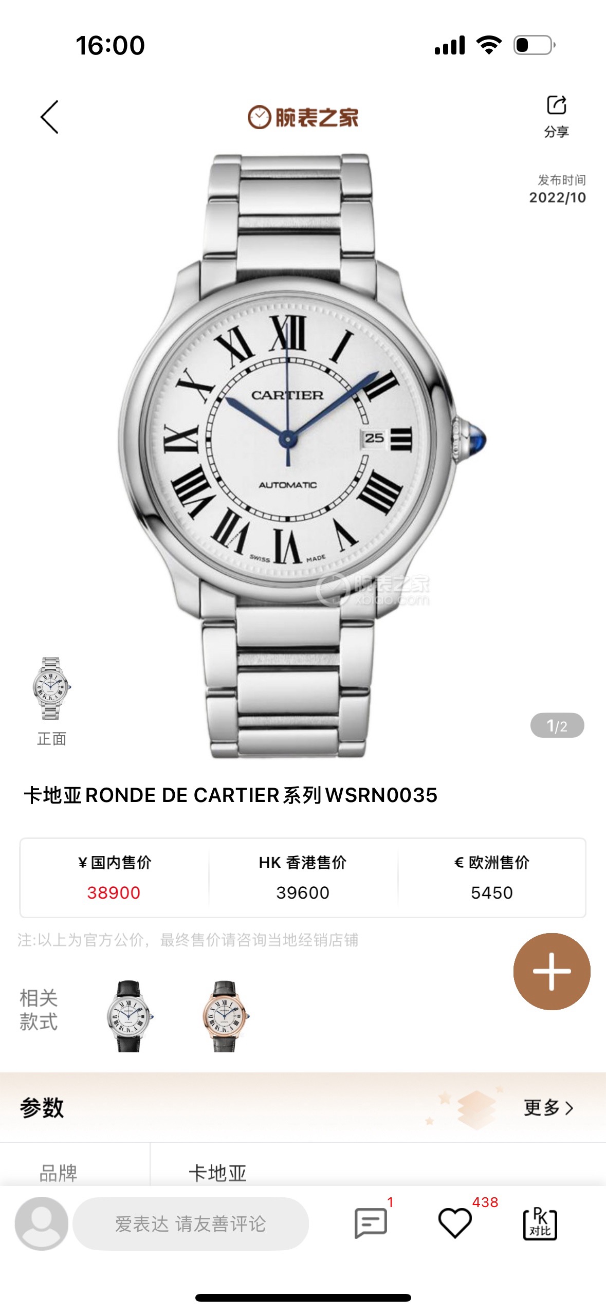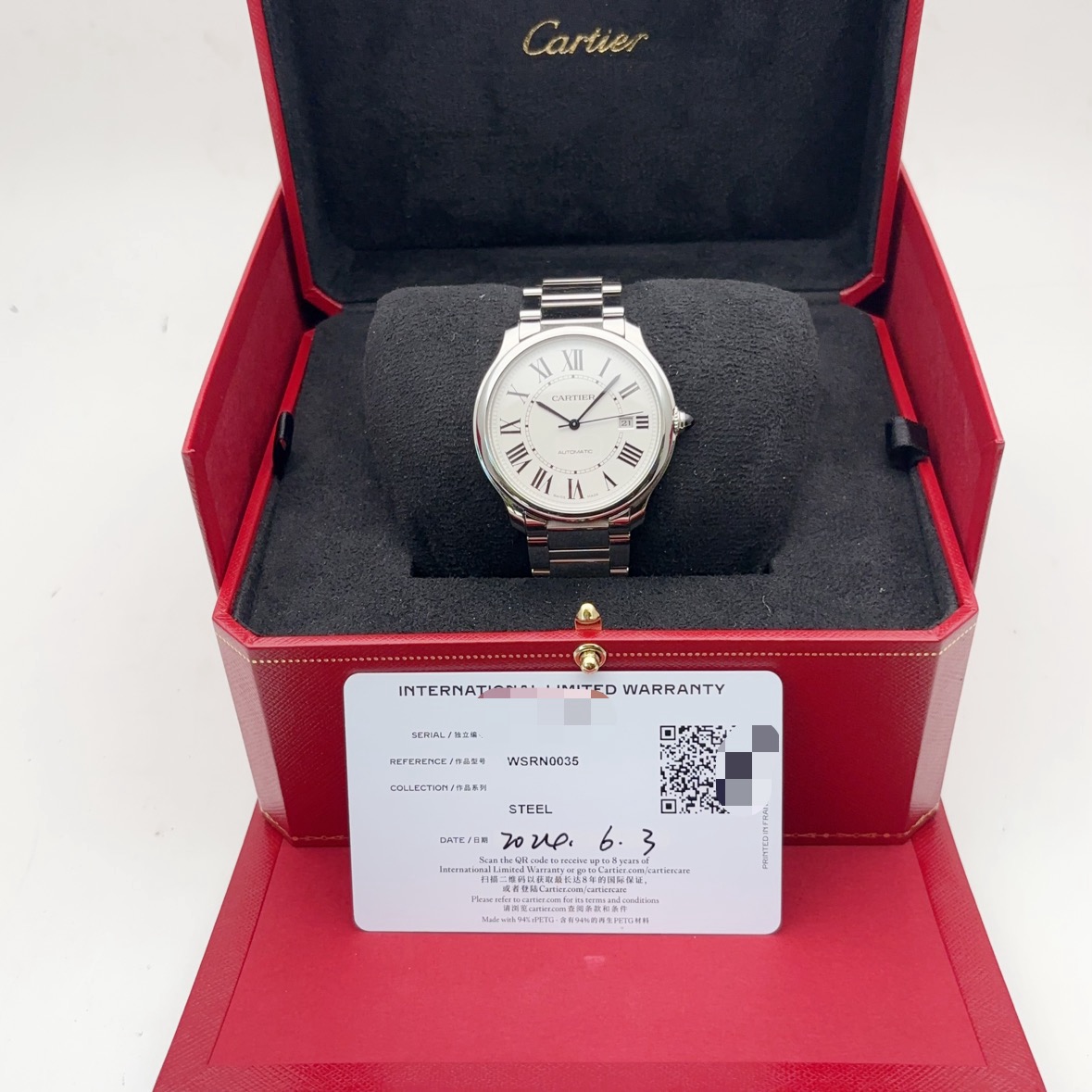 卡地亚RONDE DE CARTIER系列WSRN0035男士自动机械腕表,40mm表径,精钢材质,日期显示,24年6月购入,公价38900,好价