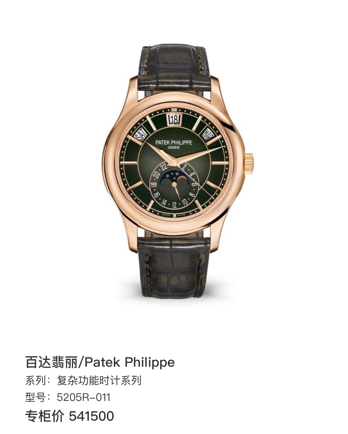 百达翡丽/Patek Philippe 复杂功能时计系列 5205R-011绿,专柜价541500,