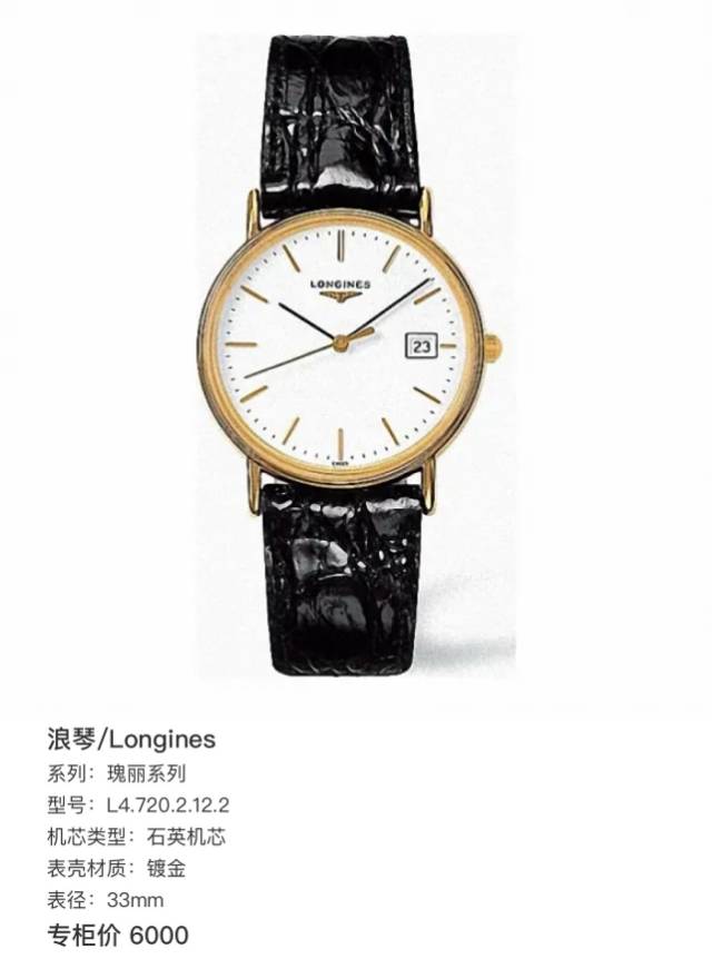 浪琴 瑰丽系列 L4.720.2.12.2 石英机芯 镀金 33mm表径 专柜价6000 单表好价