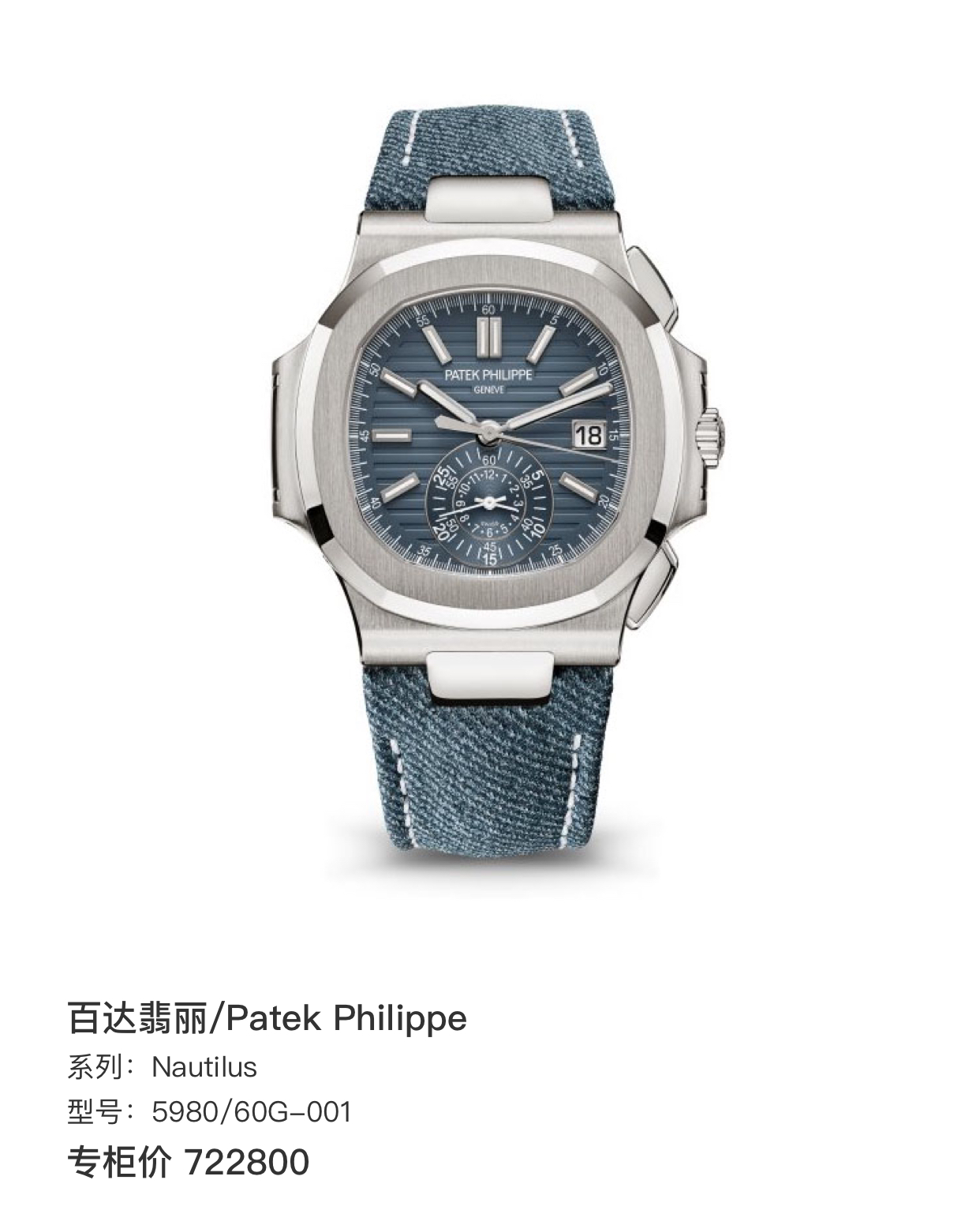 百达翡丽/Patek Philippe Nautilus 5980/60G-001 专柜价722800 2024年全套~