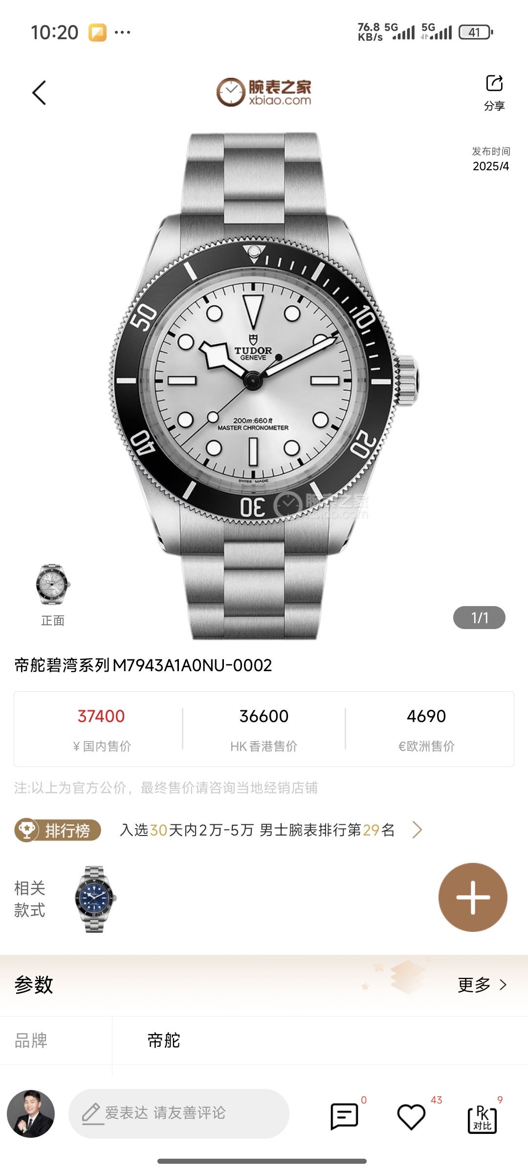 帝舵碧湾M7943A1A0NU-0002机械男性