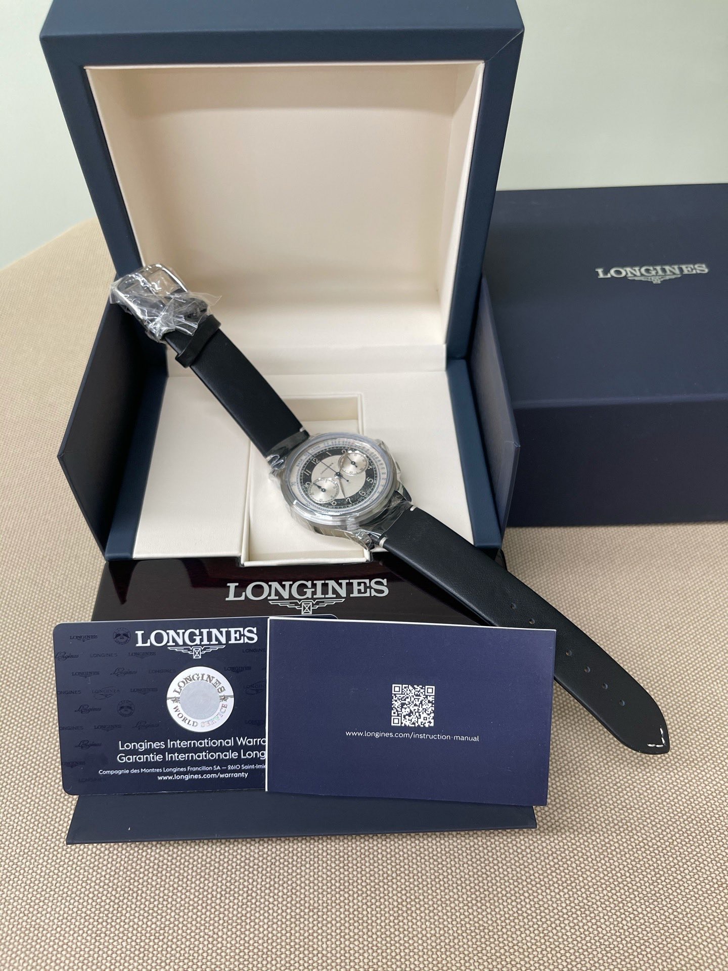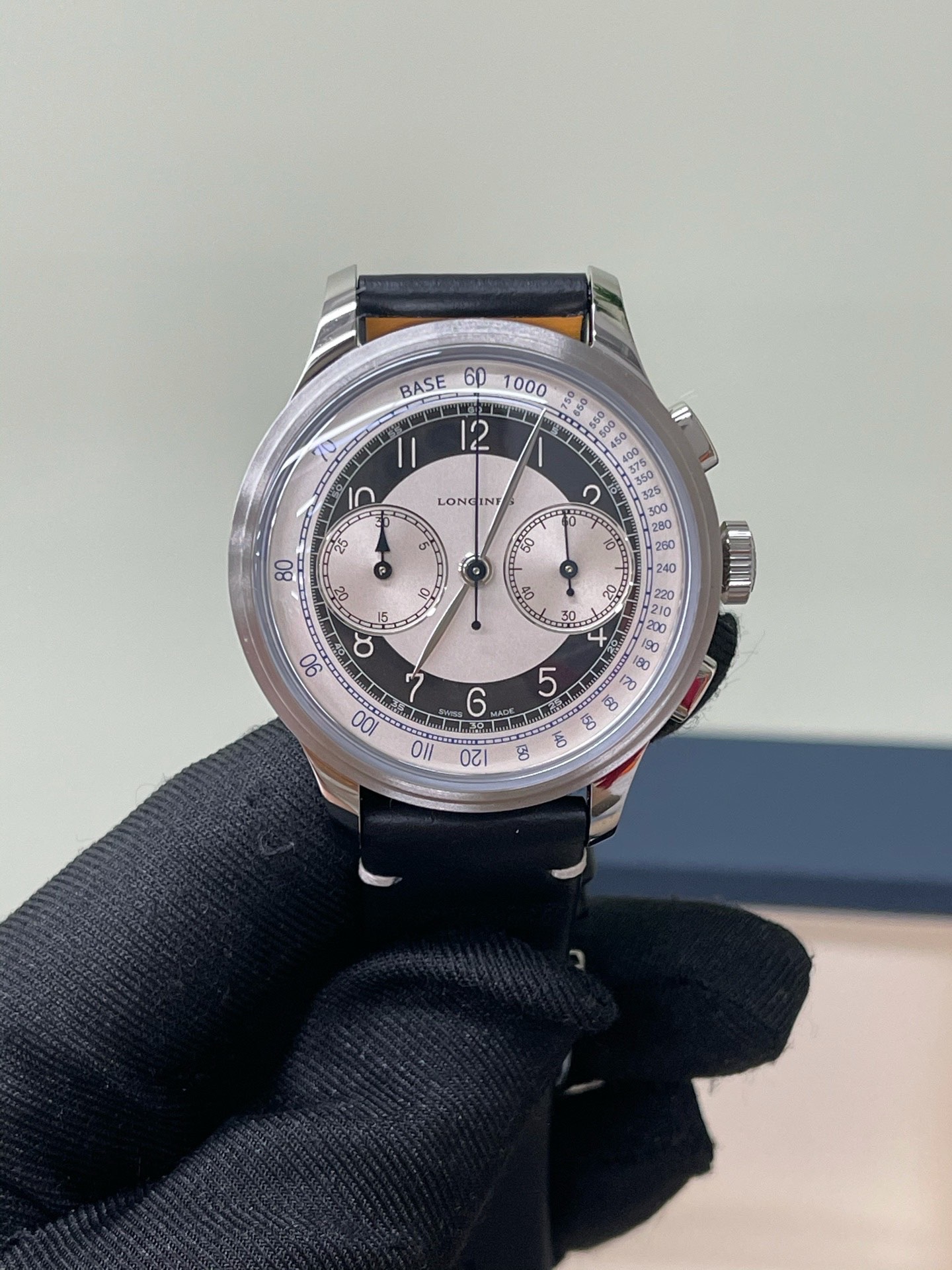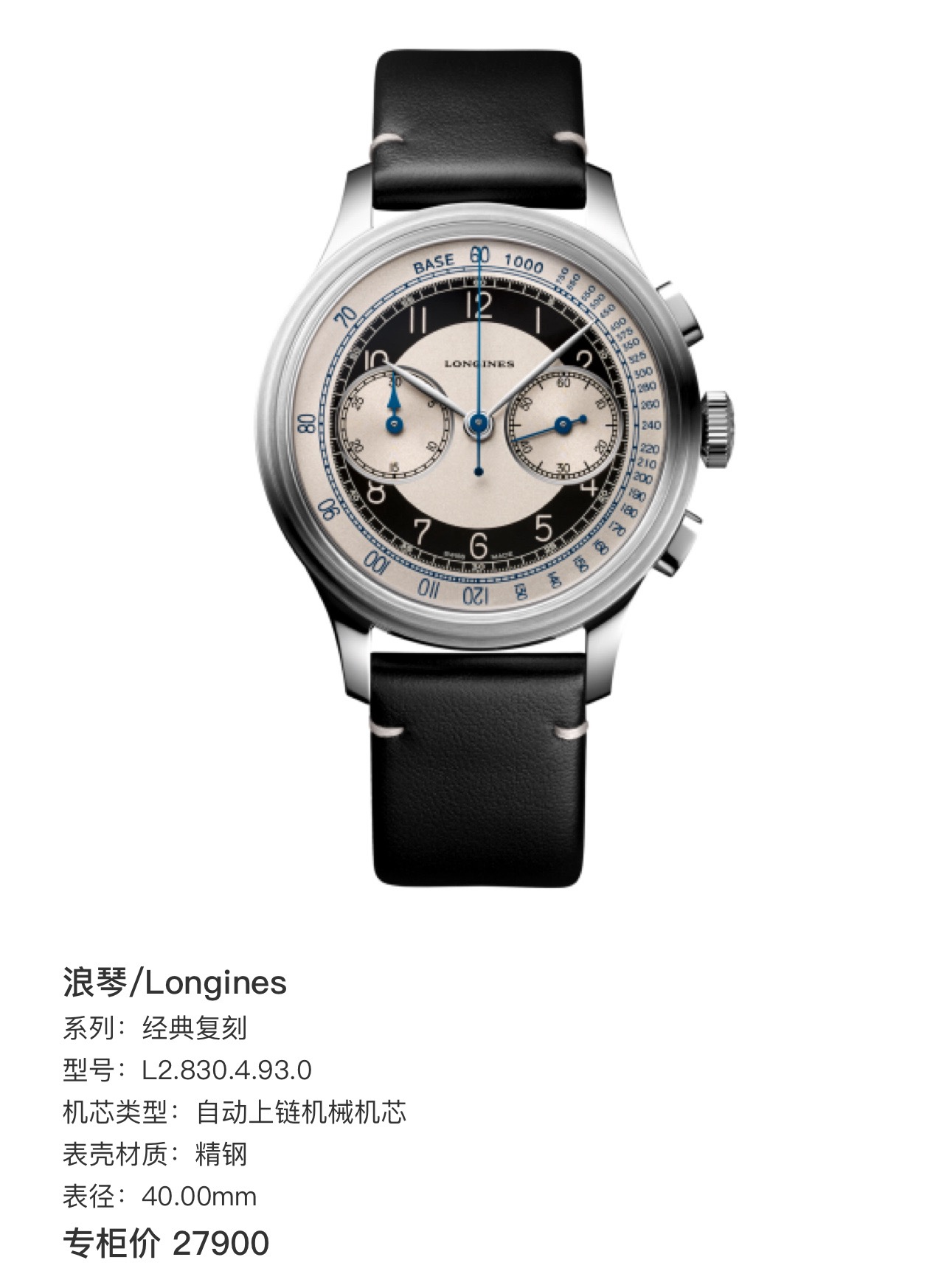 全新浪琴/Longines 经典复刻 L2.830.4.93.0 自动上链机械机芯 精钢 40.00mm 专柜价27900LONGINES浪琴L2.830.4.93.0经典复刻系列自动机械机芯 银色漆绘表盘 双眼计时 男表 瑞表 40mm 银色表盘 精钢表壳 真皮表带~