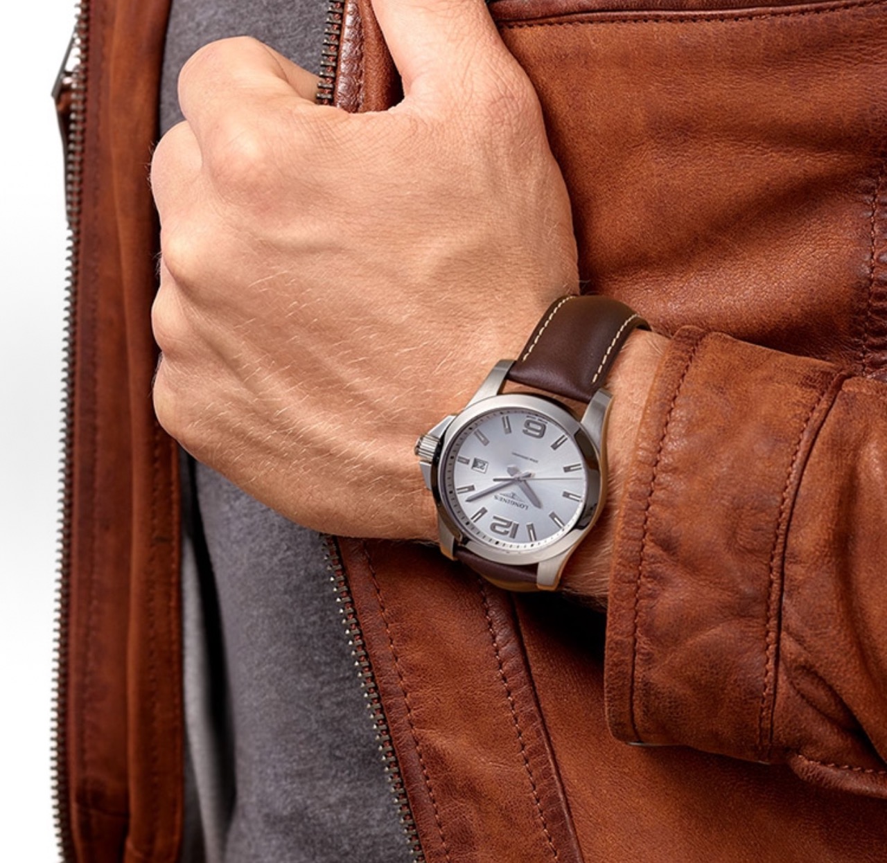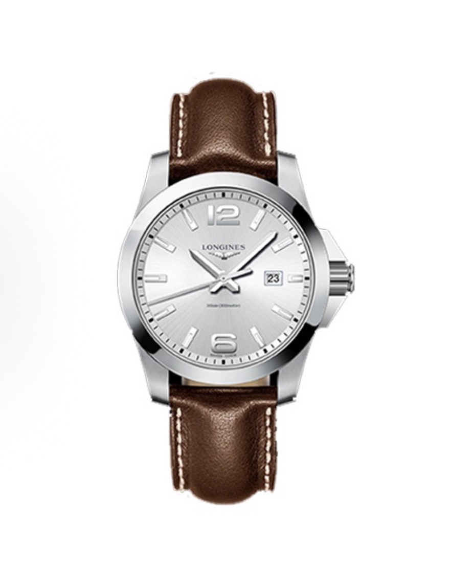 LONGINES浪琴 康卡斯系列石英机芯 300米防水棕色皮质表带 男表 瑞表 43*22mm 银色表盘 精钢表壳 皮革表带 L3.760.4.76.5 专柜售价6200 全新全套品牌联保近期保卡,预订