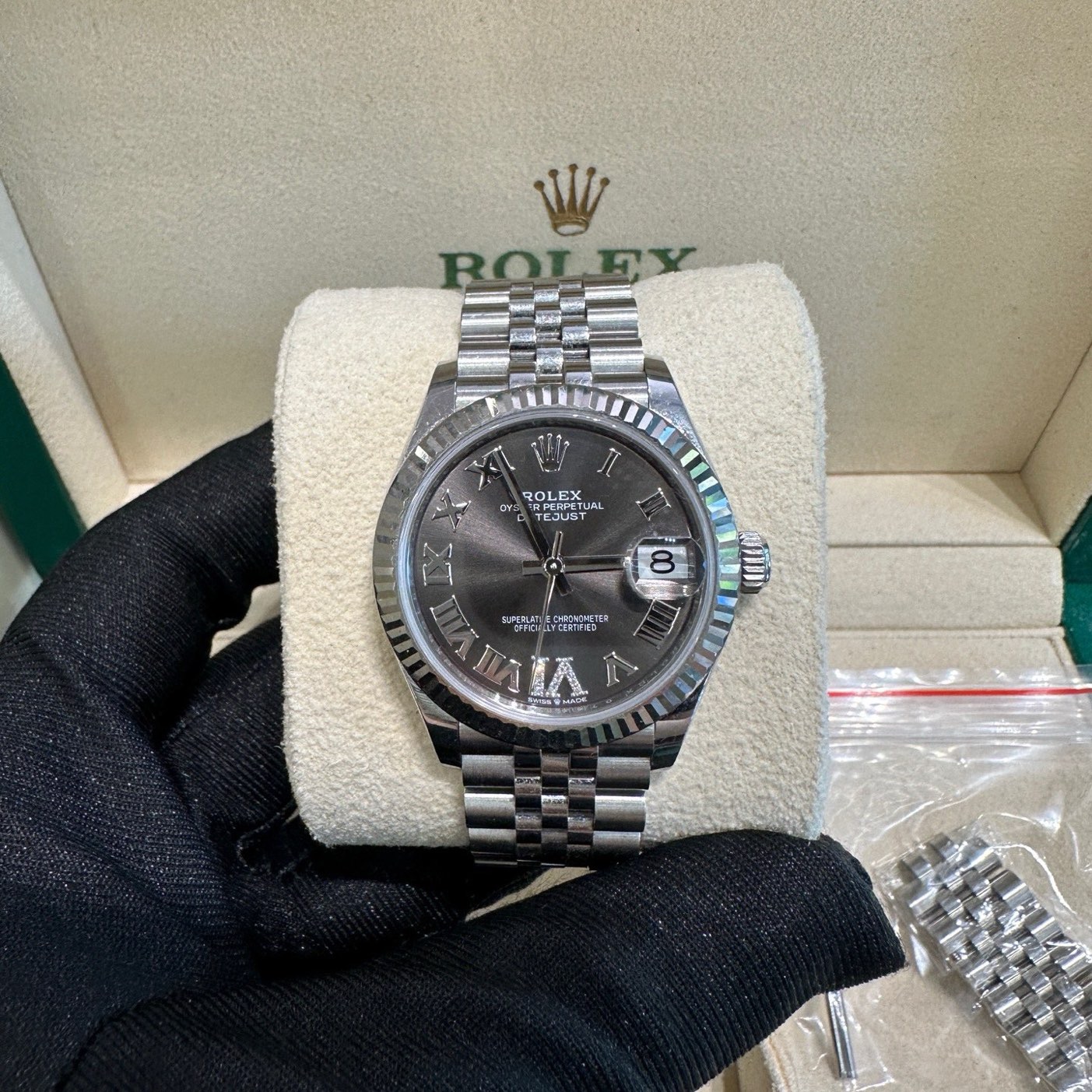 劳力士日志型系列m278274-0028灰罗马日志,女款钢带,自动机械,表径是31毫米,特大罗马刻度数字。VI镶钻,高级感满满!~